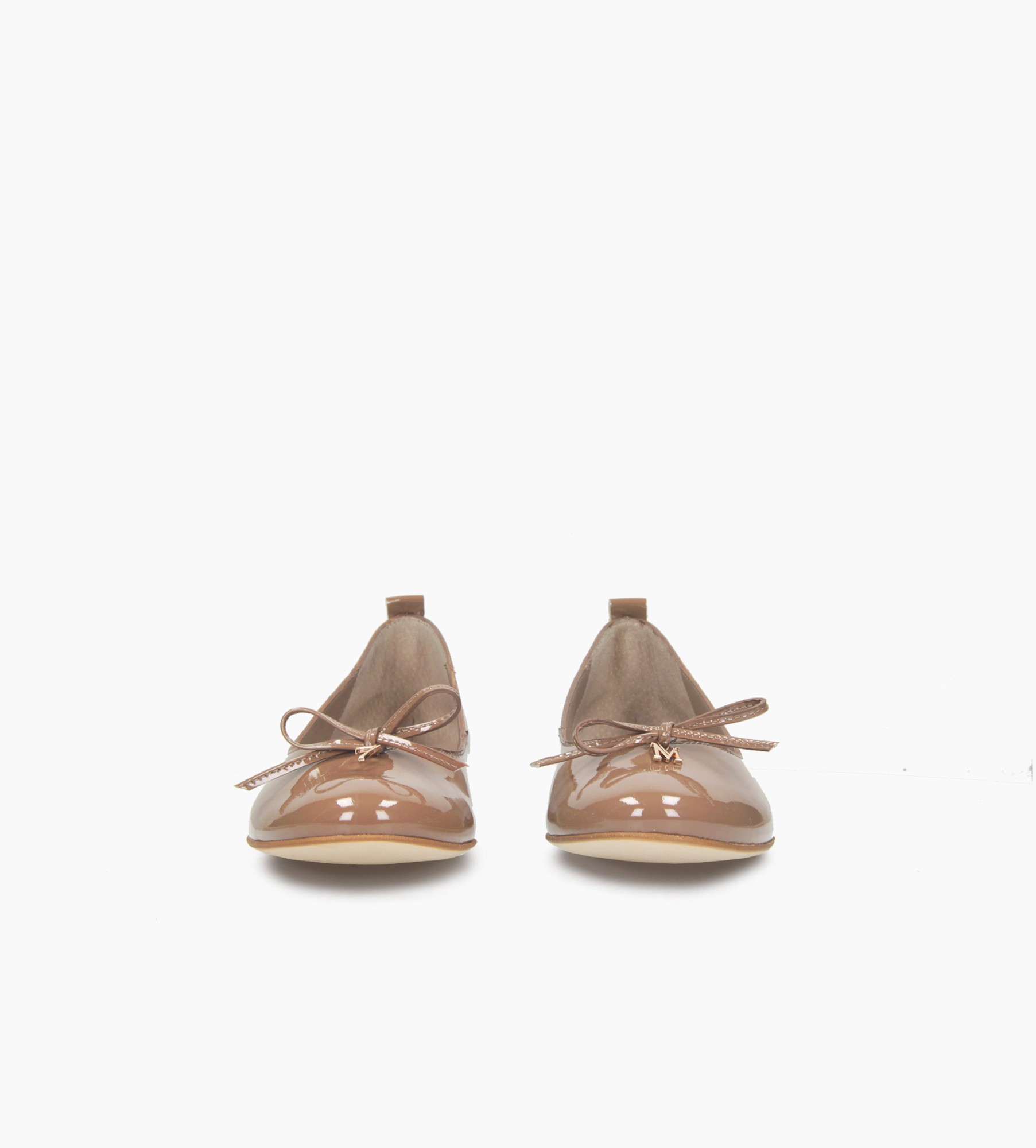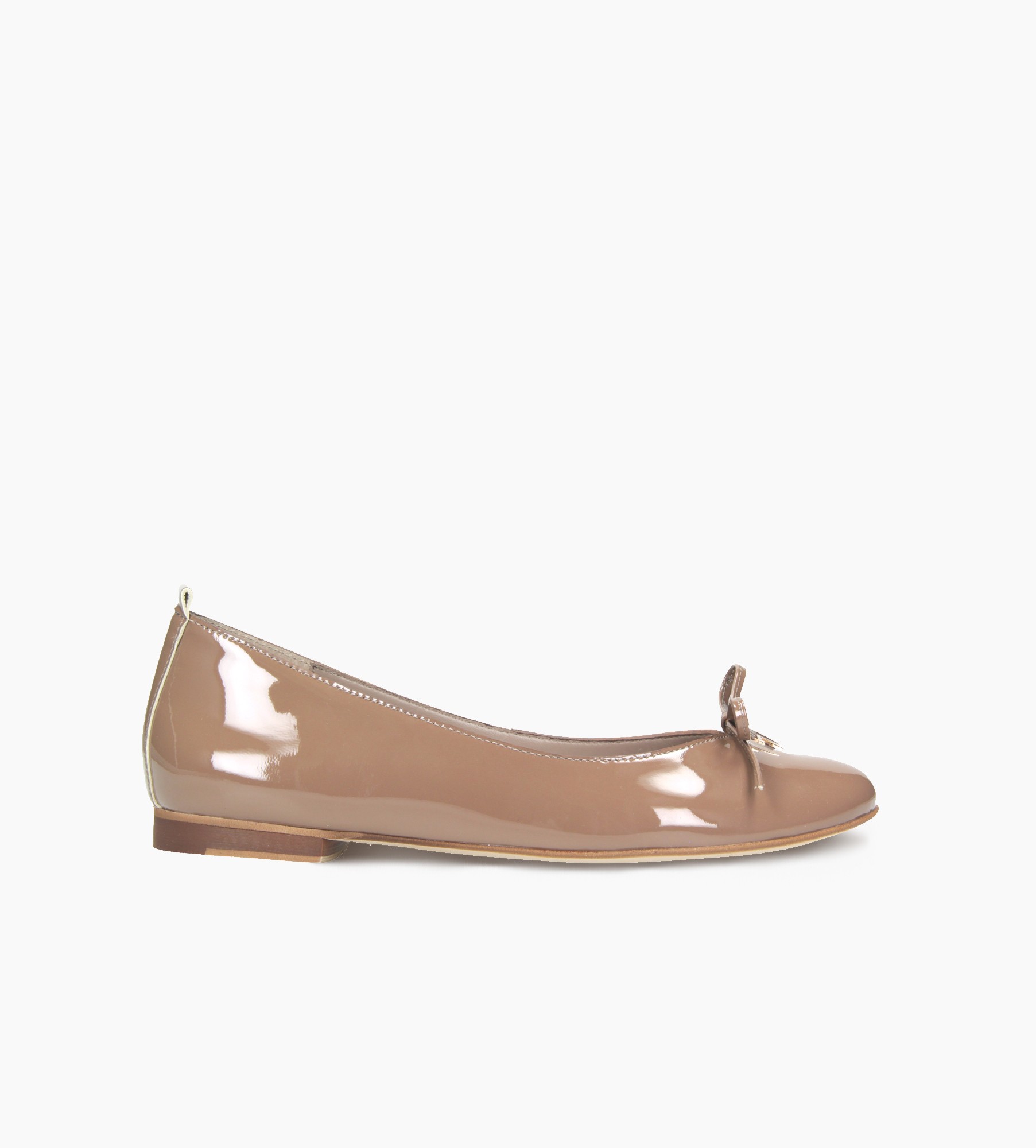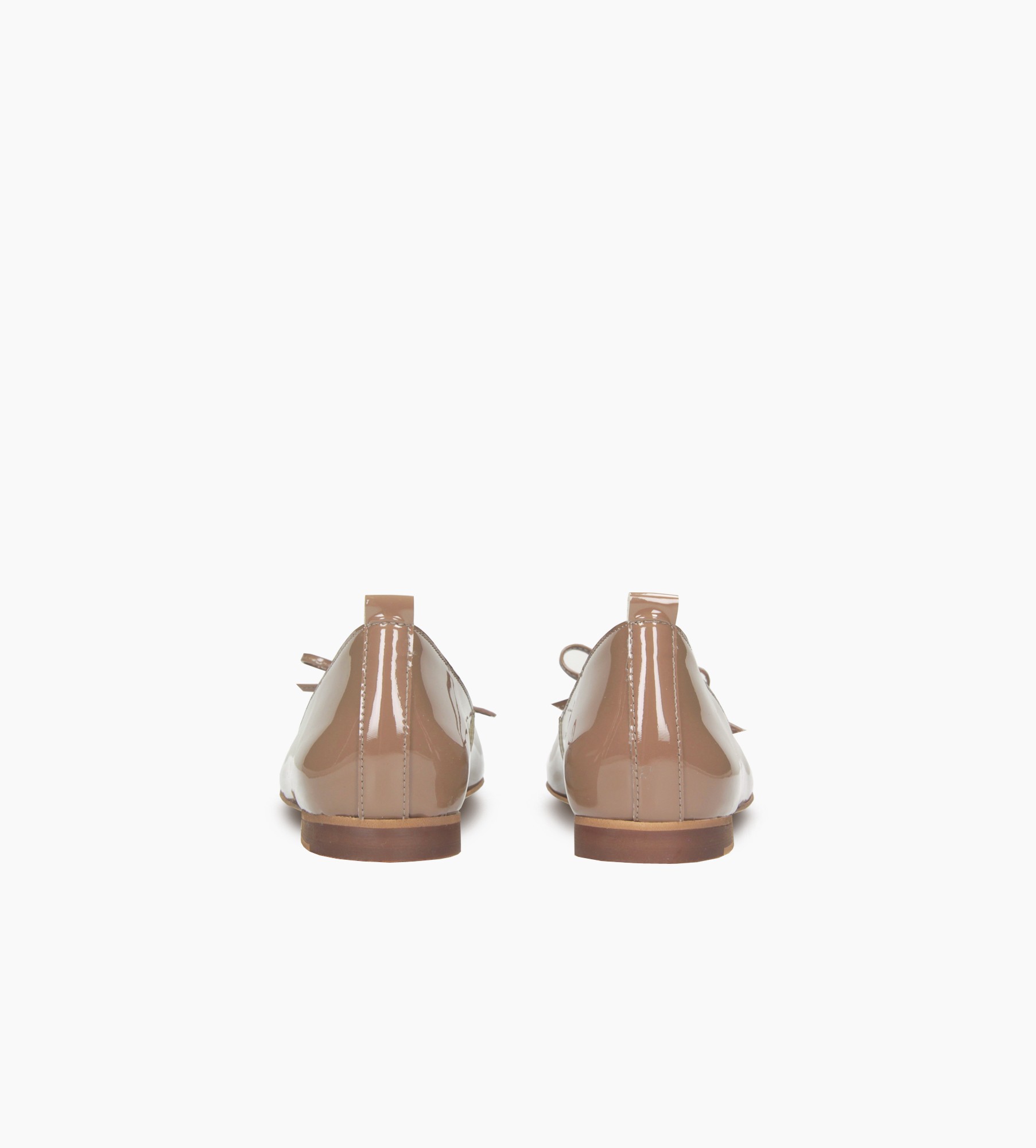 Beżowe baleriny wykonane z wysokiej jakości skóry lakierowanej wyróżniają się spośród innych butów eleganckim, połyskującym kolorem. Gustowny model z delikatną kokardką i monogramem firmy 7Mil podkreśli każdą stylizację, dodając jej szyku i klasy. Ozdoba dodaje balerinom nutki romantyzmu i kobiecości, sprawiając, że są one idealnym wyborem zarówno do codziennych stylizacji, jak i na specjalne okazje. Wygodny płaski obcas oraz doskonałej jakości skóra naturalna jagnięca we wnętrzu zapewniają wysoki komfort użytkowania.