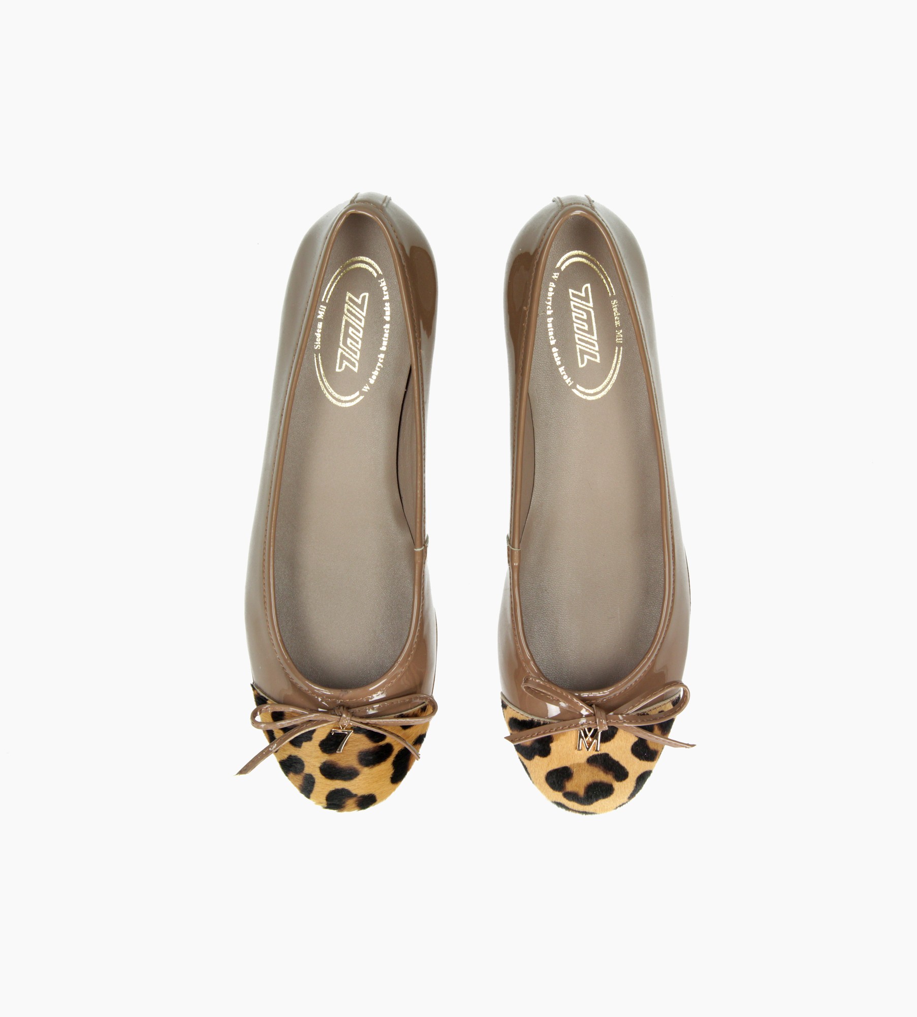 Beżowe baleriny damskie z noskiem w zwierzęcy wzór to połączenie subtelnej elegancji z odrobiną drapieżności. Wykonane z najwyższej jakości materiałów, baleriny te wyróżniają się delikatnym motywem zwierzęcym w odcieniach ciepłego brązu, który dodaje im wyrazistości i unikalnego charakteru. Beżowy kolor bazowy sprawia, że są one niezwykle wszechstronne i łatwo dopasowują się do różnych stylizacji. Miękka podeszwa zapewnia komfort noszenia przez cały dzień, czyniąc je idealnym wyborem na każdą okazję.