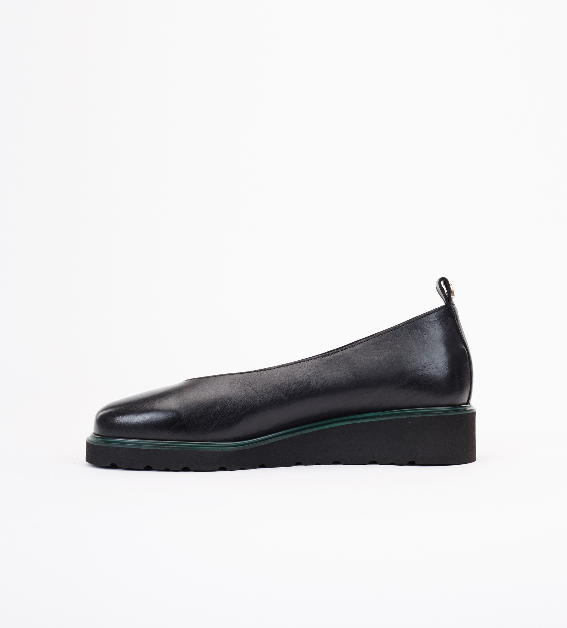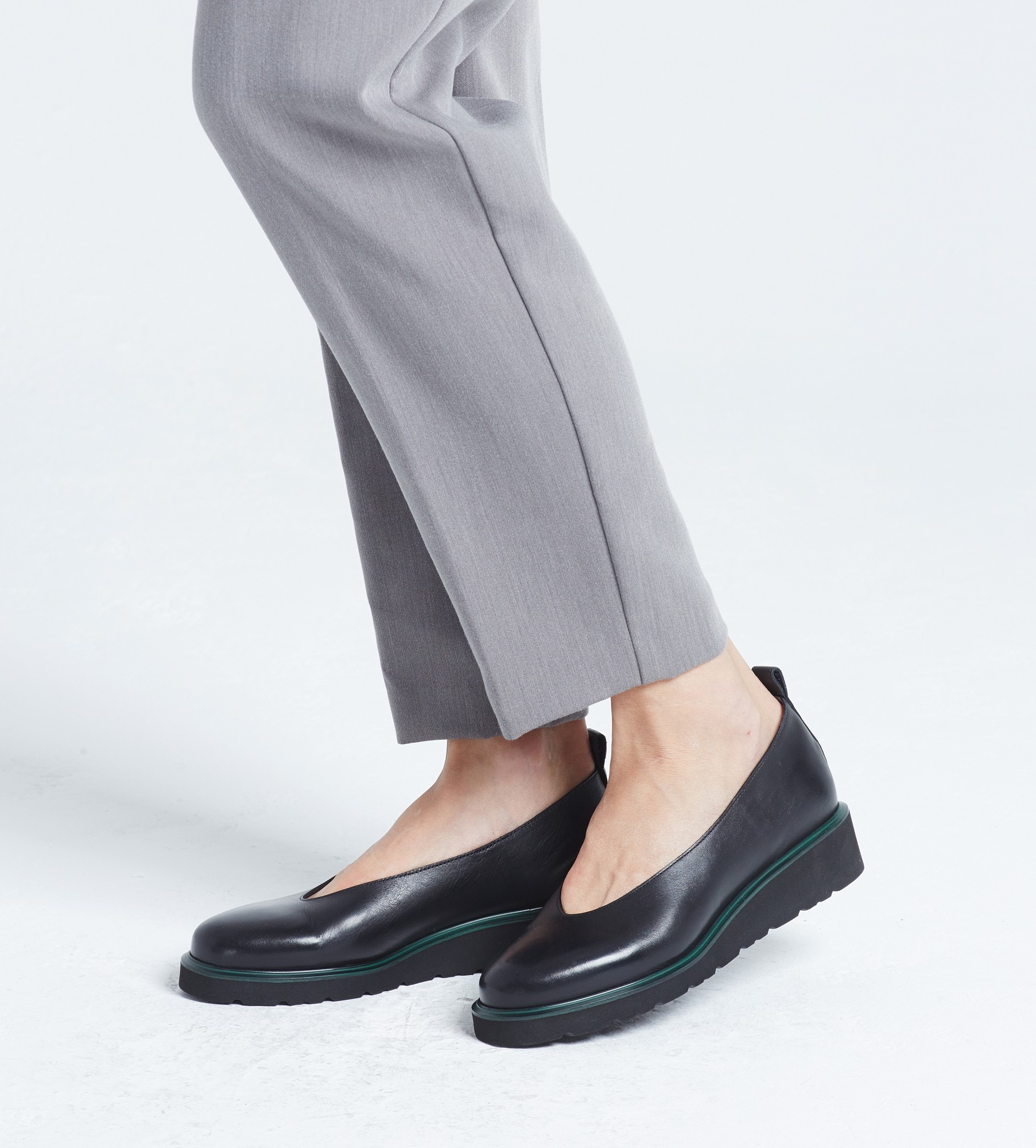 Czarne baleriny wykonane z wysokiej jakości naturalnej skóry cielęcej to połączenie klasycznego stylu i nowoczesnych rozwiązań, które z pewnością przypadnie do gustu kobietom ceniącym zarówno styl, jak i wygodę. Czarny kolor nadaje im ponadczasowy charakter, który doskonale komponuje się z różnorodnymi stylizacjami. Efektowne wycięcie na przodzie buta nadaje im subtelności i kobiecości, zielony otok zaś charakteru. Baleriny posiadają bardzo wygodną podeszwę 3,5 cm, która zapewnia stabilność i wygodę podczas chodzenia. Dzięki temu są idealnym wyborem zarówno na co dzień, jak i na specjalne okazje.