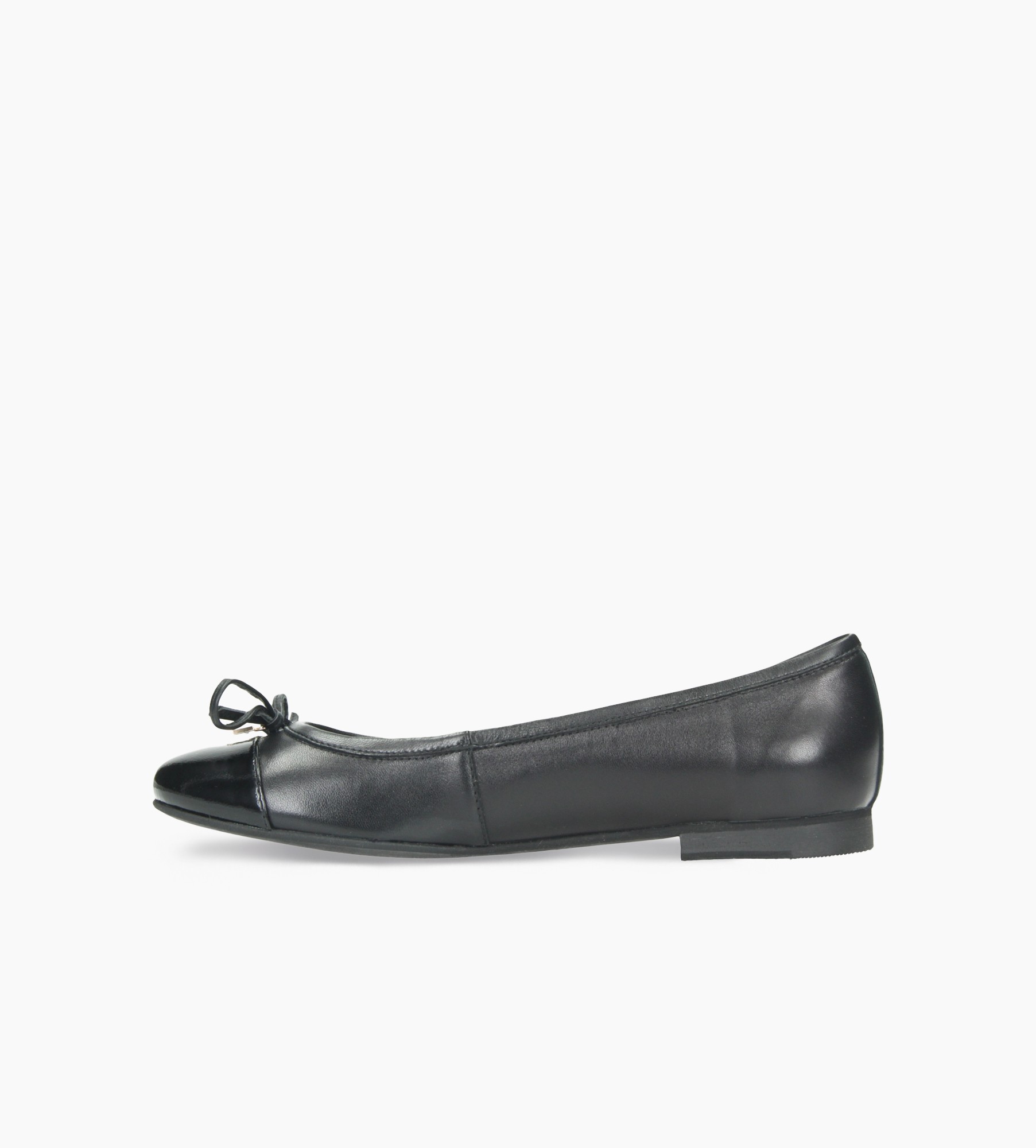 Baleriny damskie to eleganckie i wszechstronne obuwie, które łączy w sobie klasykę z nowoczesnym akcentem. Wykonane z wysokiej jakości naturalnej skóry licowej, te baleriny wyróżniają się subtelnym kontrastem między matową skórą a lakierowanym noskiem, co dodaje im wyjątkowego charakteru. Głęboki, czarny kolor oraz połyskujący nosek nadają butom klasycznego charakteru, idealnego na różne okazje. Baleriny łączą elegancję z wygodą, dzięki czemu są doskonałym wyborem na co dzień oraz na bardziej formalne okazje. Miękka wkładka i lekka konstrukcja zapewniają komfort noszenia przez cały dzień, a klasyczny fason sprawia, że łatwo dopasują się do różnych stylizacji.