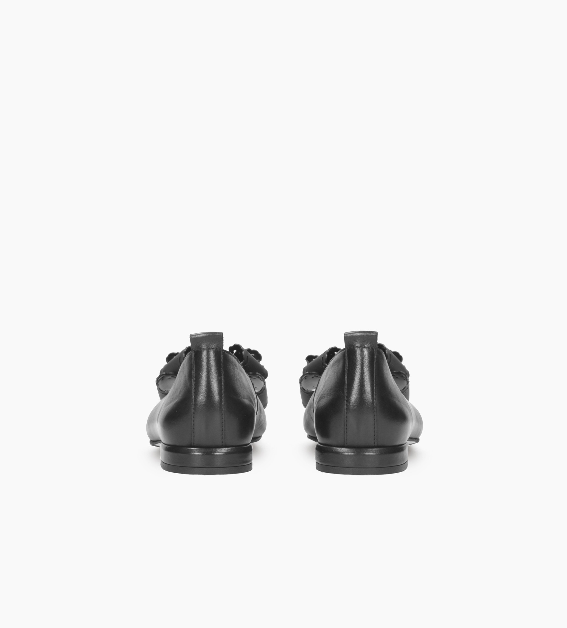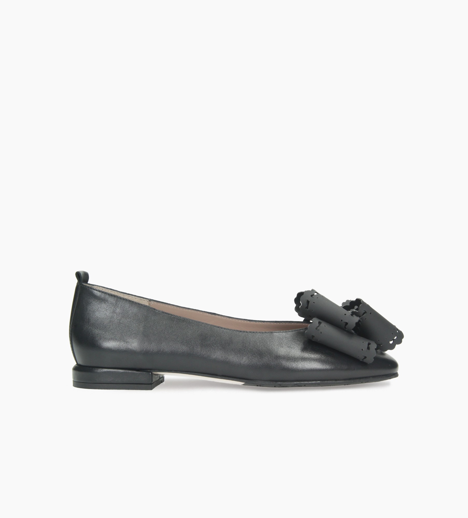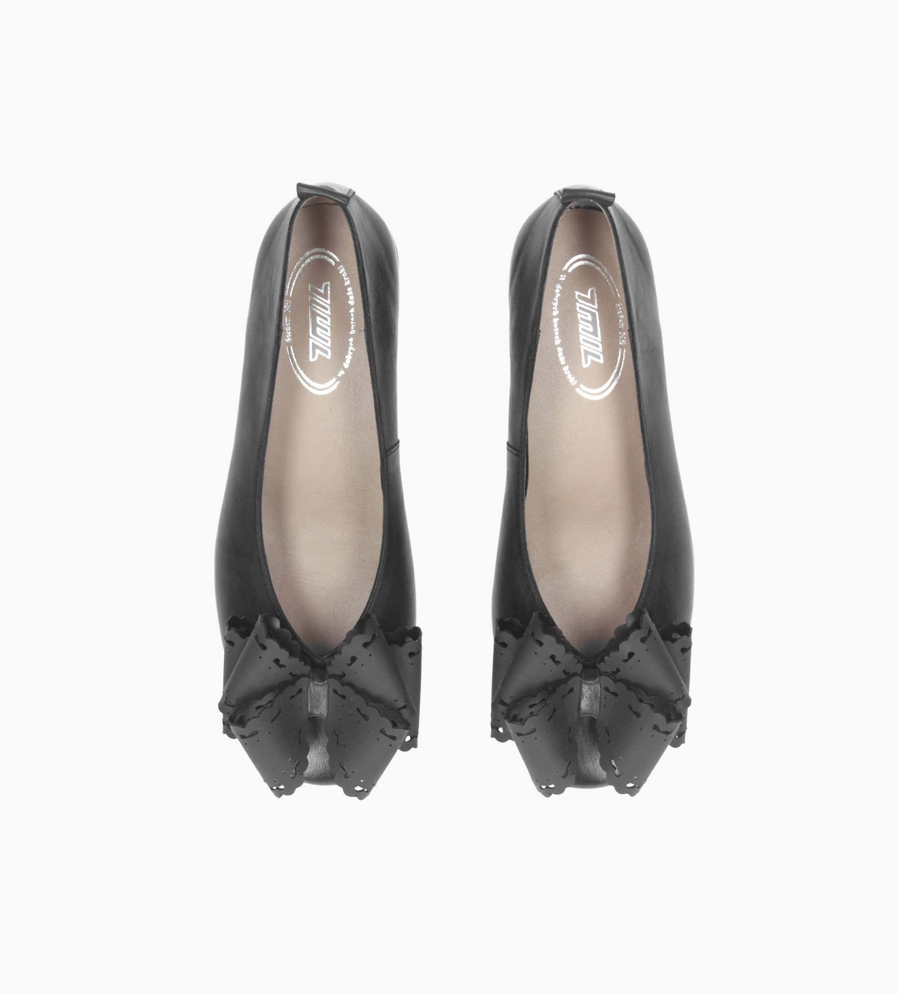 Czarne baleriny damskie z naturalnej skóry cielęcej to eleganckie i stylowe obuwie, które łączy klasyczną formę z nowoczesnym detalem. Ich minimalistyczny fason jest idealnym tłem dla wyjątkowego elementu, jakim jest piękna ozdoba w kształcie kokardy na nosku. Centralnym punktem tego modelu jest kokarda, subtelnie perforowana, co dodaje jej lekkości i finezji. Kokarda nie tylko przyciąga wzrok, ale również podkreśla kobiecy charakter balerin, wprowadzając do nich nutę delikatności i elegancji. Dzięki temu te baleriny stają się idealnym dodatkiem do różnorodnych stylizacji, od casualowych po bardziej formalne.