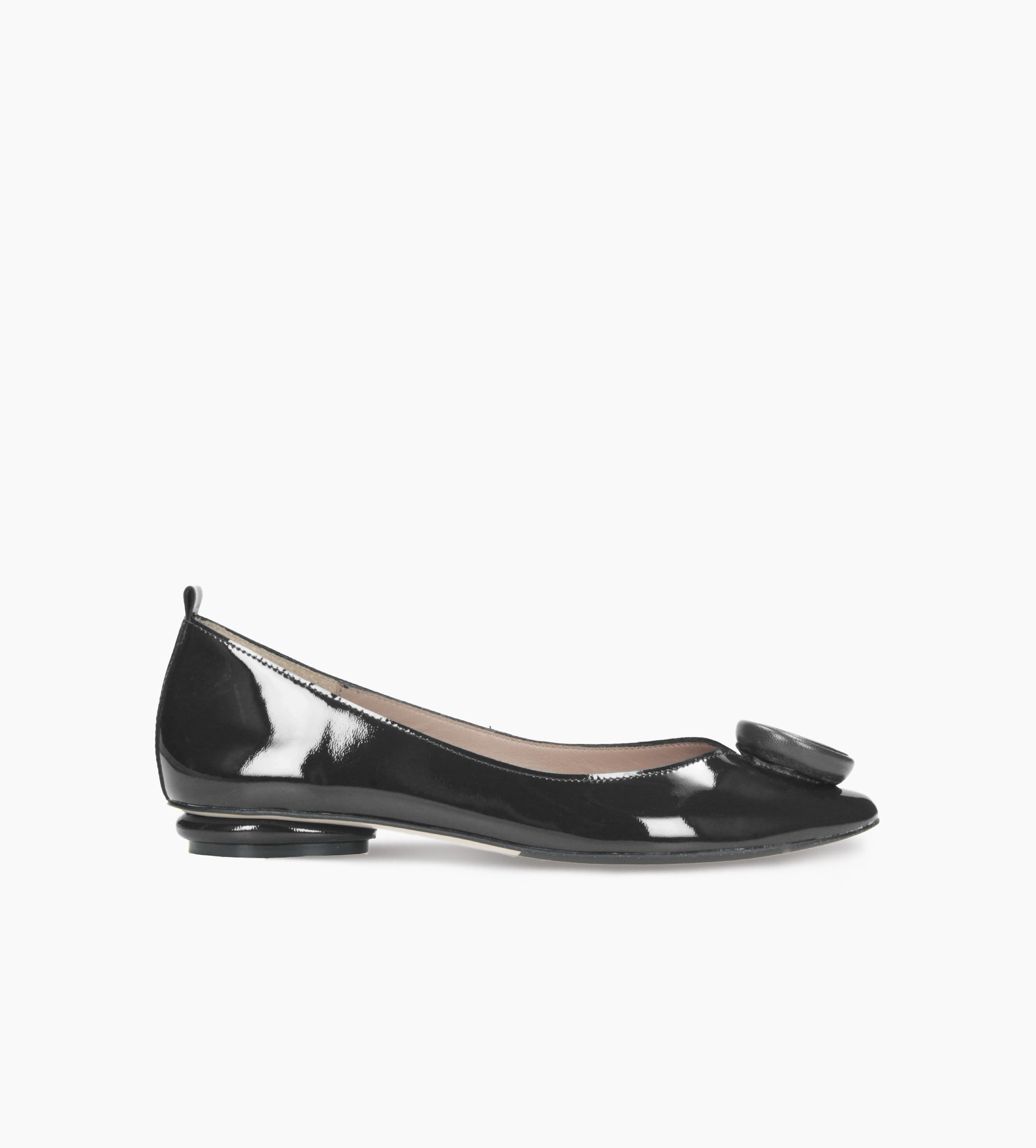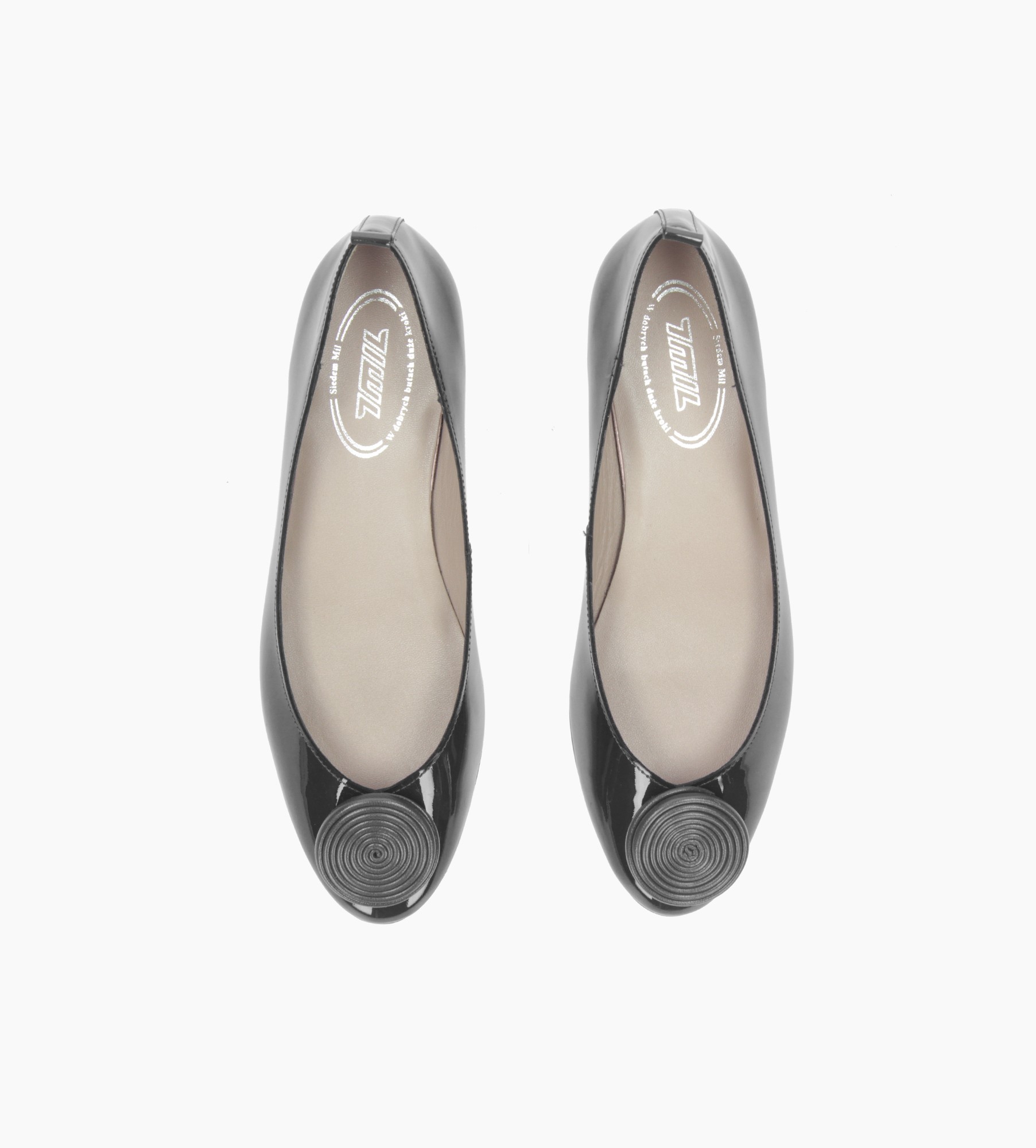 Czarne baleriny z naturalnej skóry lakierowanej to esencja klasyki i elegancji, idealna dla kobiet, które cenią sobie styl i wygodę na co dzień. Wykonane z wysokiej jakości lakierowanej skóry, te baleriny wyróżniają się głębokim, czarnym połyskiem, który nadaje im luksusowego charakteru i nowoczesnego wyglądu. Ich błyszcząca powierzchnia i skórzana ozdoba na nosku przyciąga uwagę i dodaje każdej stylizacji blasku. Miękka wkładka wewnętrzna ze skóry jagnięcej i elastyczna podeszwa gwarantują wygodę noszenia przez cały dzień, co czyni je idealnym wyborem zarówno do pracy, jak i na codzienne spacery po mieście.