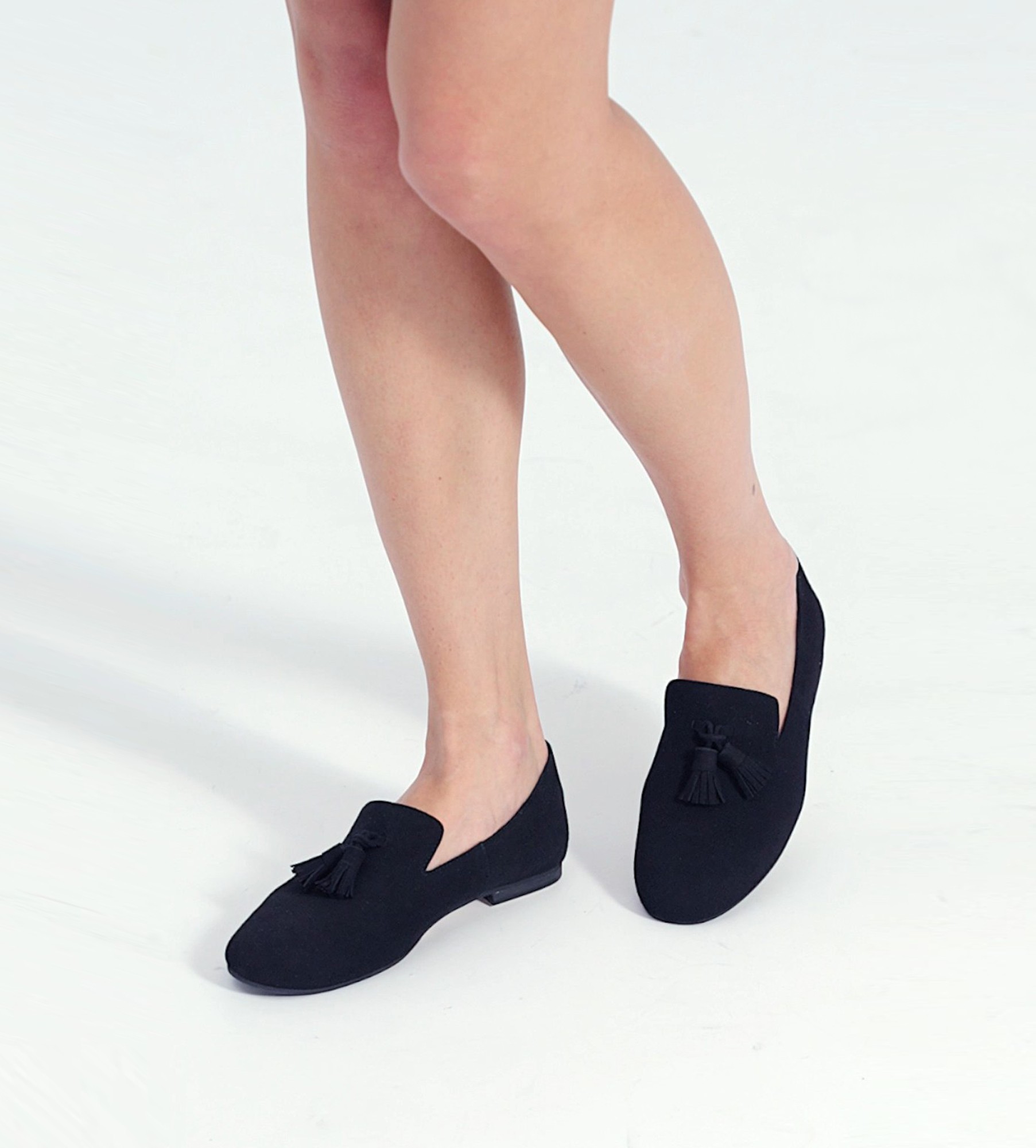Czarne zamszowe baleriny z chwostami świetnie sprawdzą się w stylizacji z beżowymi cygaretkami i białą koszulą oversize. Na chłodniejsze dni idealnym wyborem będzie lekki trencz w odcieniu piaskowym. Dopełnieniem zestawu będzie skórzana torebka w kolorze camel oraz delikatna złota biżuteria, nadająca stylizacji wyrafinowania.