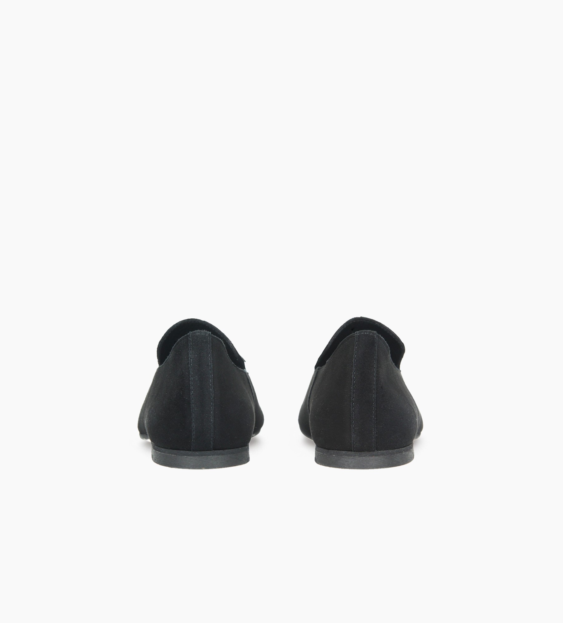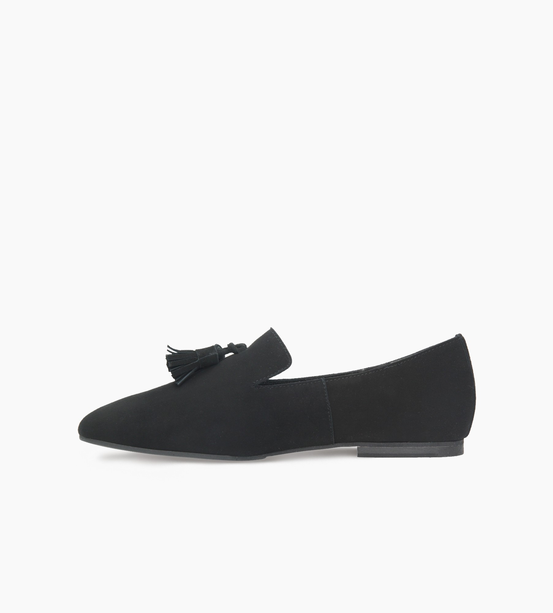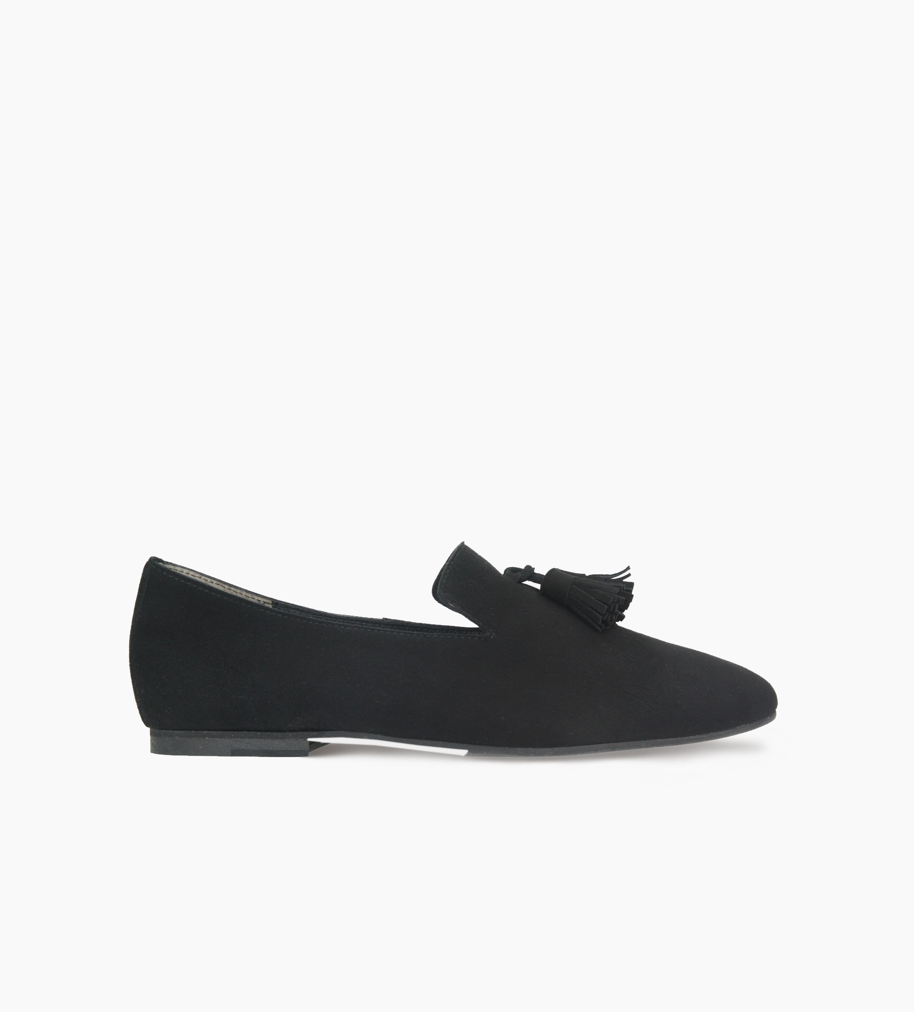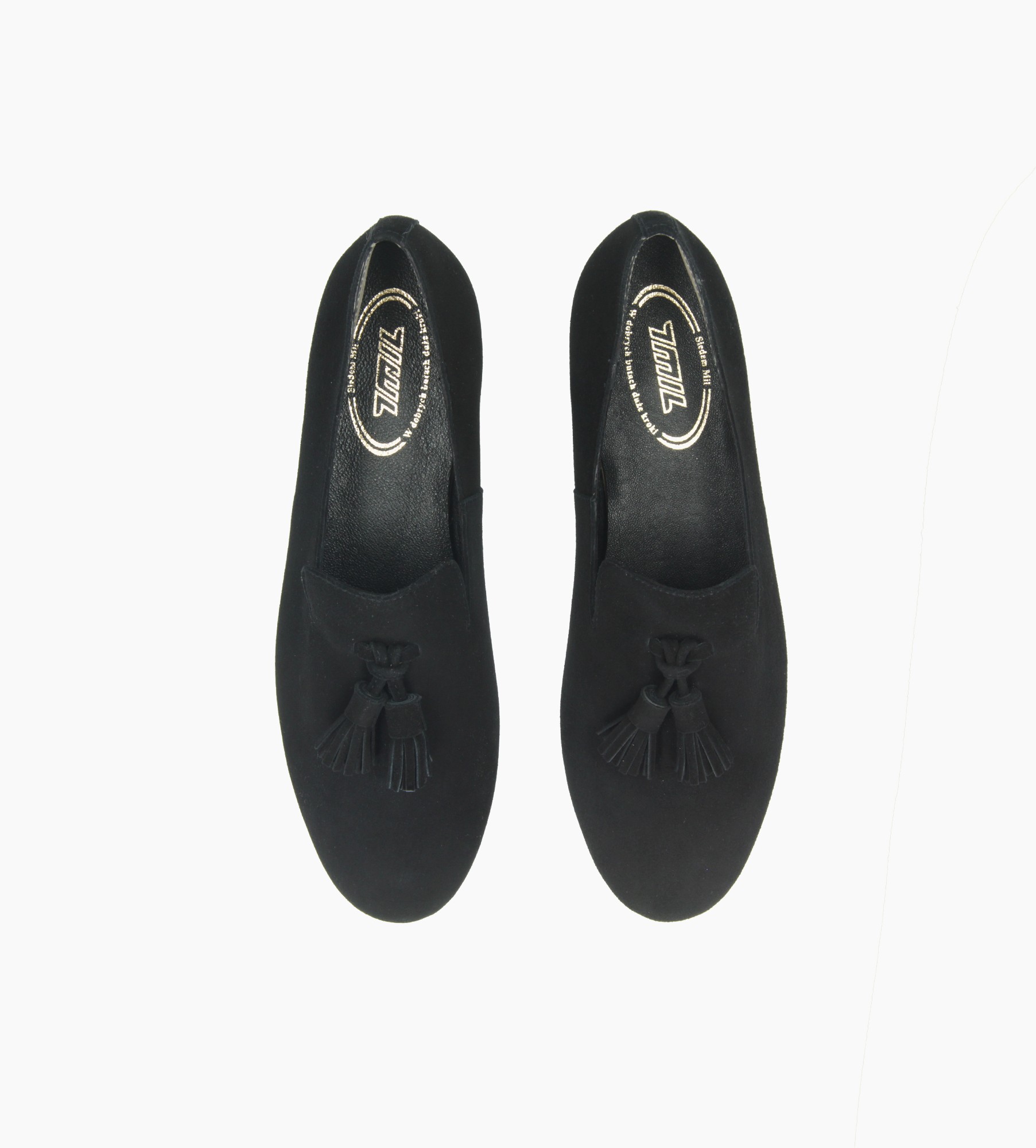Czarne zamszowe baleriny to elegancki model wykonany z wysokiej jakości skóry, łączący klasykę z subtelnym detalem. Ich wnętrze zostało wyściełane miękką skórą jagnięcą, co zapewnia komfort i idealne dopasowanie do stopy. Charakterystycznym elementem designu są ozdobne skórzane chwosty umieszczone na cholewce, które nadają butom stylowego i ponadczasowego charakteru. Dzięki smukłej linii i minimalistycznemu fasonowi, baleriny te doskonale sprawdzą się zarówno w codziennych stylizacjach, jak i bardziej eleganckich zestawach.