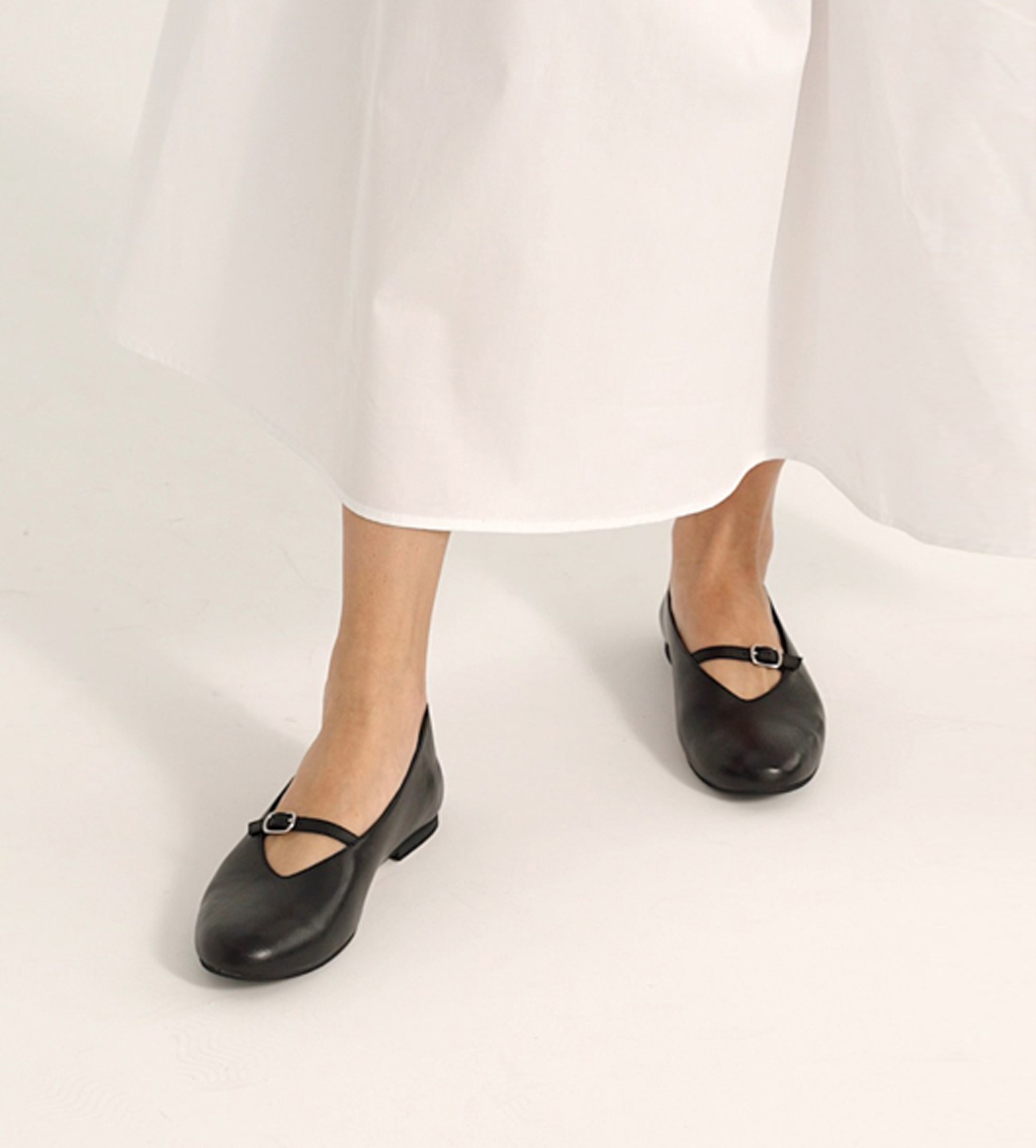 Czarne baleriny z delikatnym paskiem doskonale komponują się z lekką, pastelową sukienką o długości midi. Dodaj do tego jasny trencz przewiązany w talii oraz subtelną biżuterię. Taka stylizacja jest idealna na wiosenne spacery czy spotkania w kawiarni.