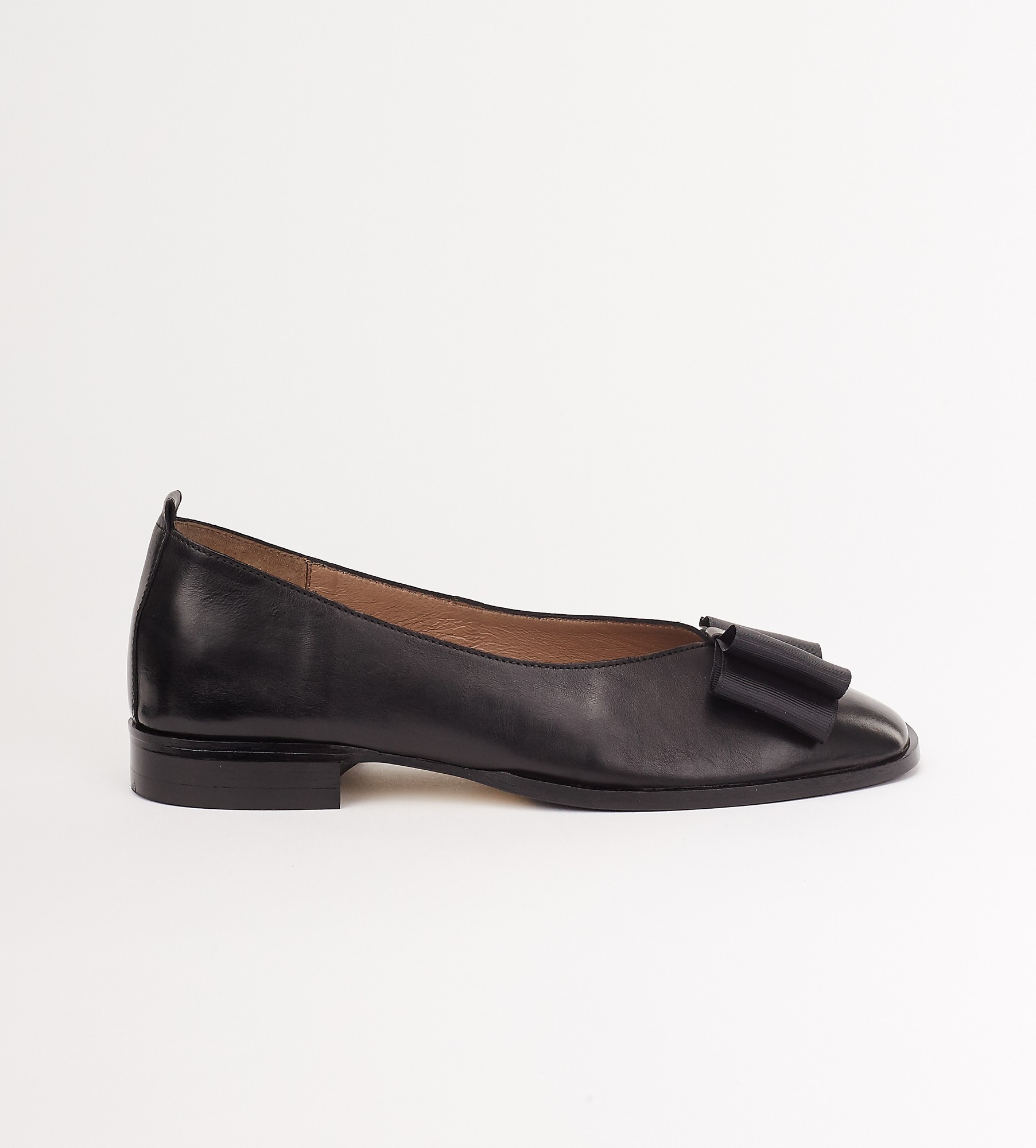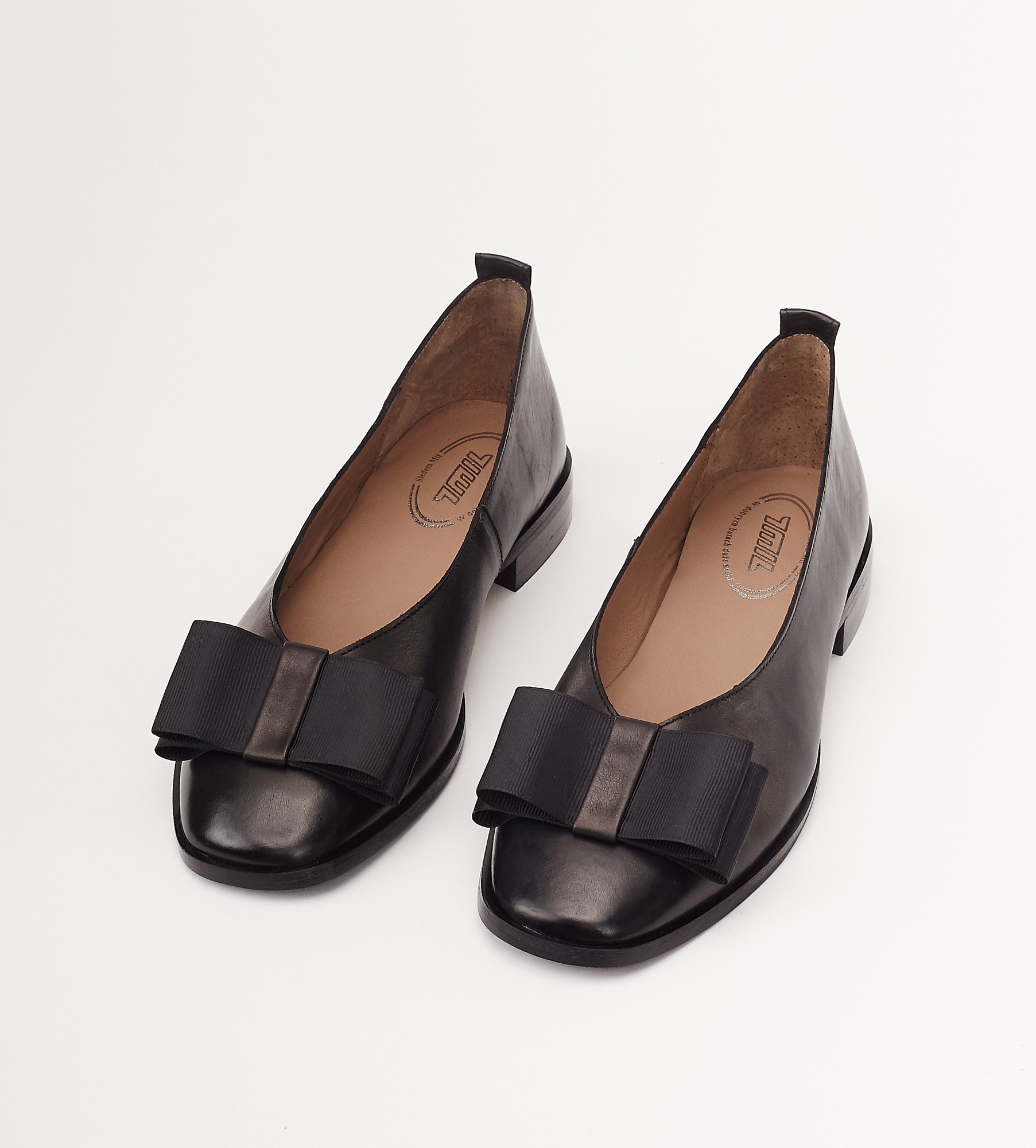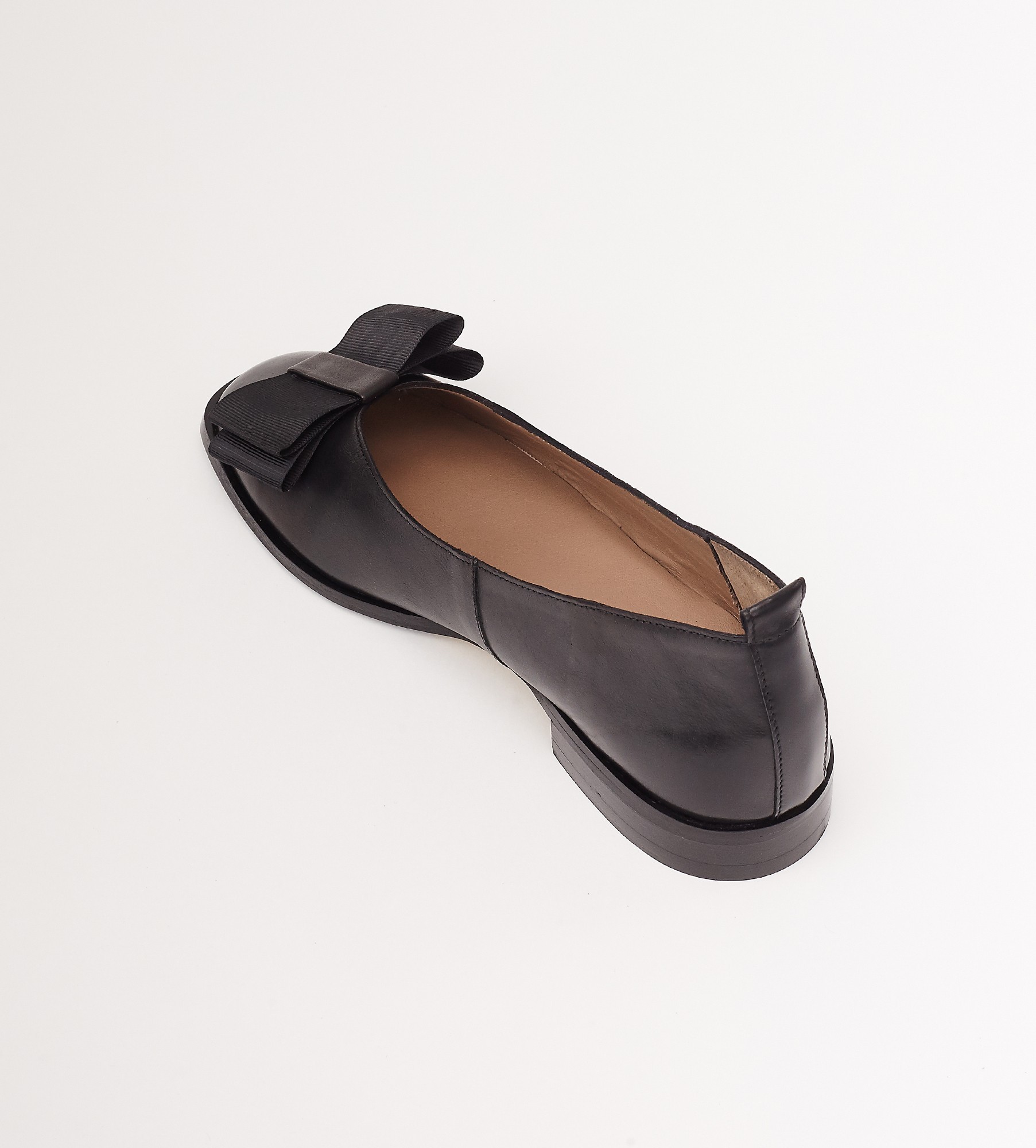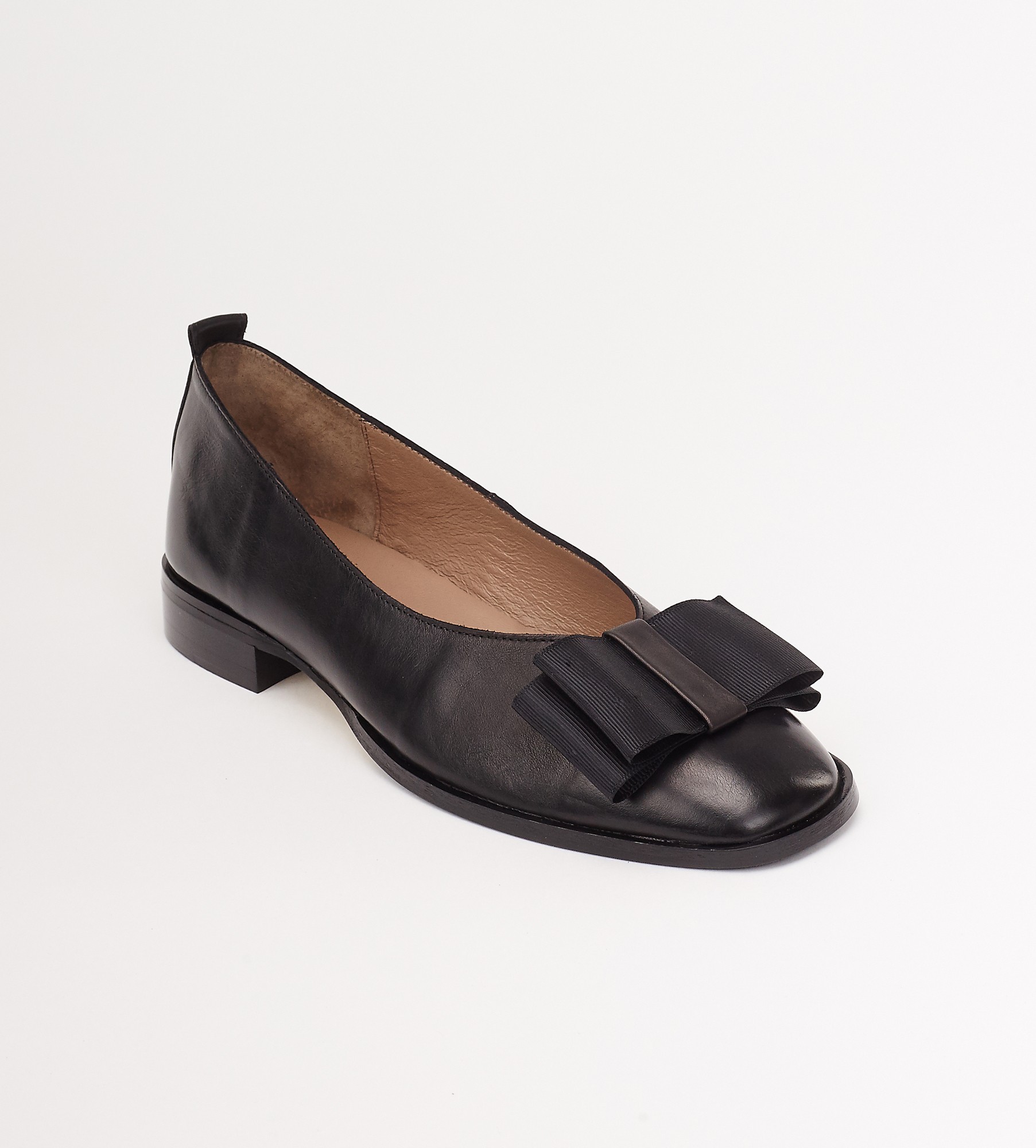 Czarne baleriny z naturalnej skóry cielęcej to kwintesencja klasyki i komfortu. Miękka, skórzana wkładka z naturalnej skóry jagnięcej dodatkowo podnosi komfort noszenia. Buty zdobi subtelna rypsowa kokarda na nosku buta. Niska podeszwa o wysokości 2 cm czynią te baleriny niezwykle wygodnymi i praktycznymi na co dzień. Bardzo wygodne, bardziej zapudowane baleriny.