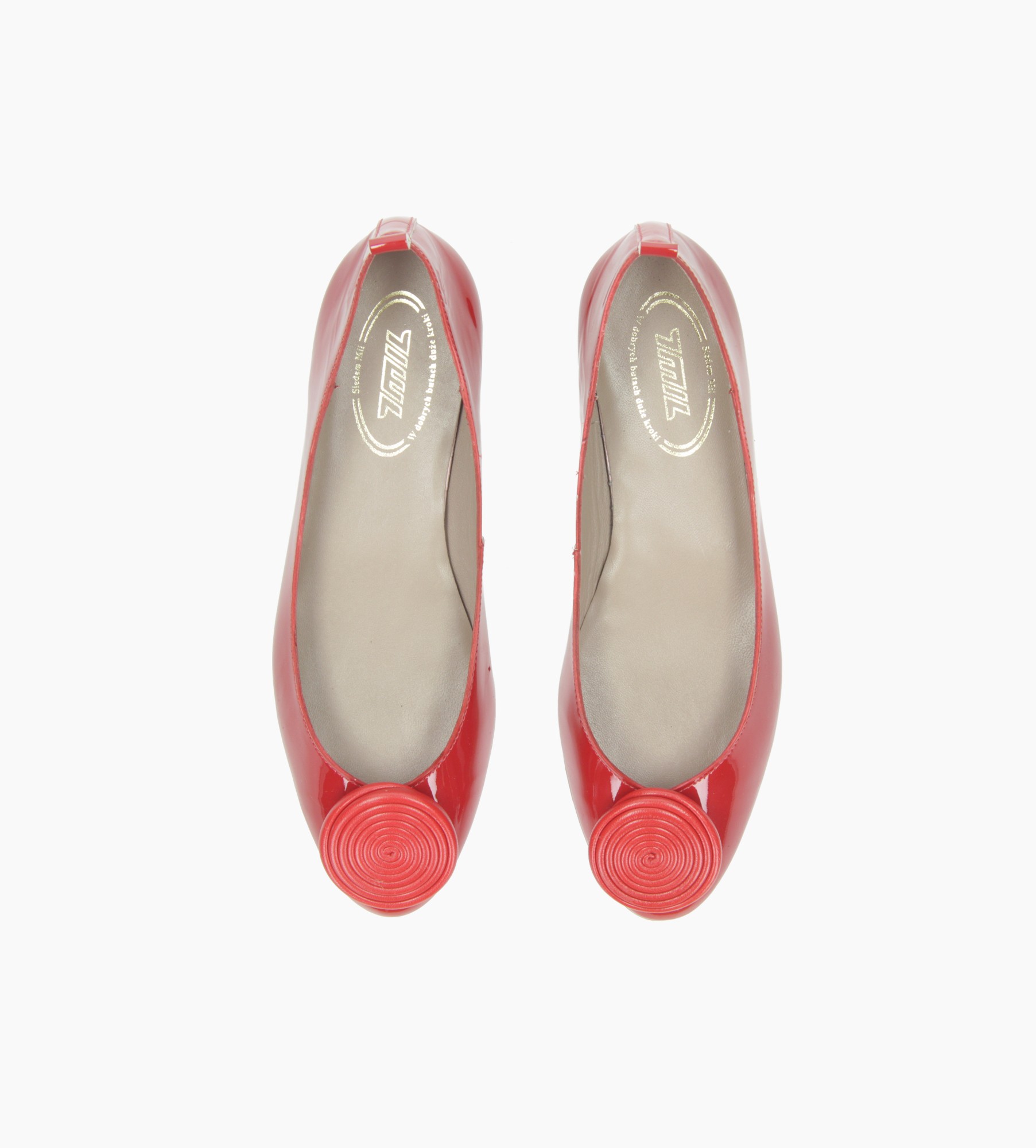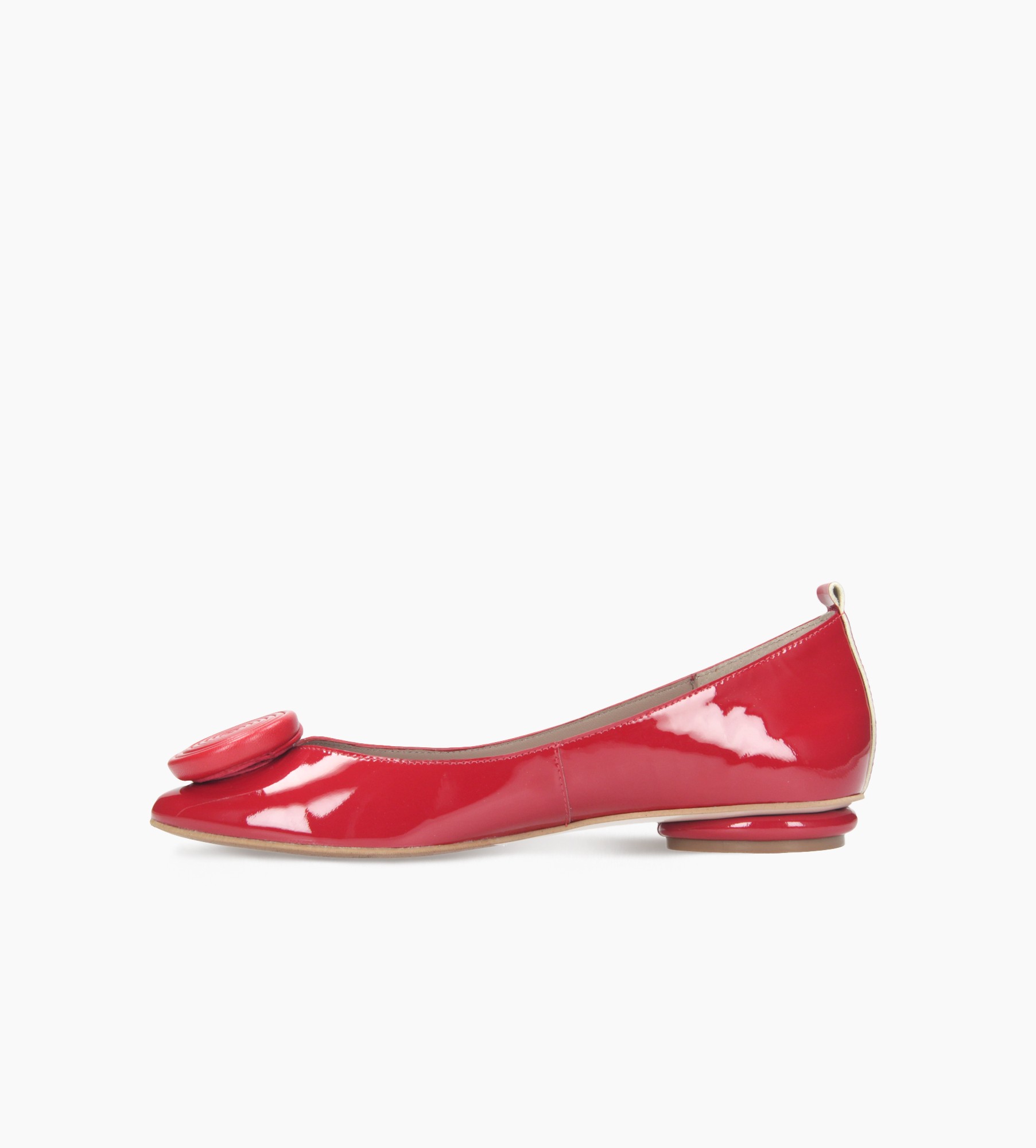 Czerwone baleriny wykonane z wysokiej jakości naturalnej skóry lakierowanej to połączenie klasycznego stylu i nowoczesnych rozwiązań, które z pewnością przypadnie do gustu kobietom ceniącym zarówno styl, jak i wygodę. Czerwony kolor nadaje im charakteru, który doskonale komponuje się z różnorodnymi stylizacjami. Efektowna skórzana ozdoba w formie koła umieszczona na przodzie buta nadaje im subtelności i kobiecości. Baleriny posiadają płaską podeszwę, która zapewnia stabilność i wygodę podczas chodzenia. Dzięki temu są idealnym wyborem zarówno na co dzień, jak i na specjalne okazje.