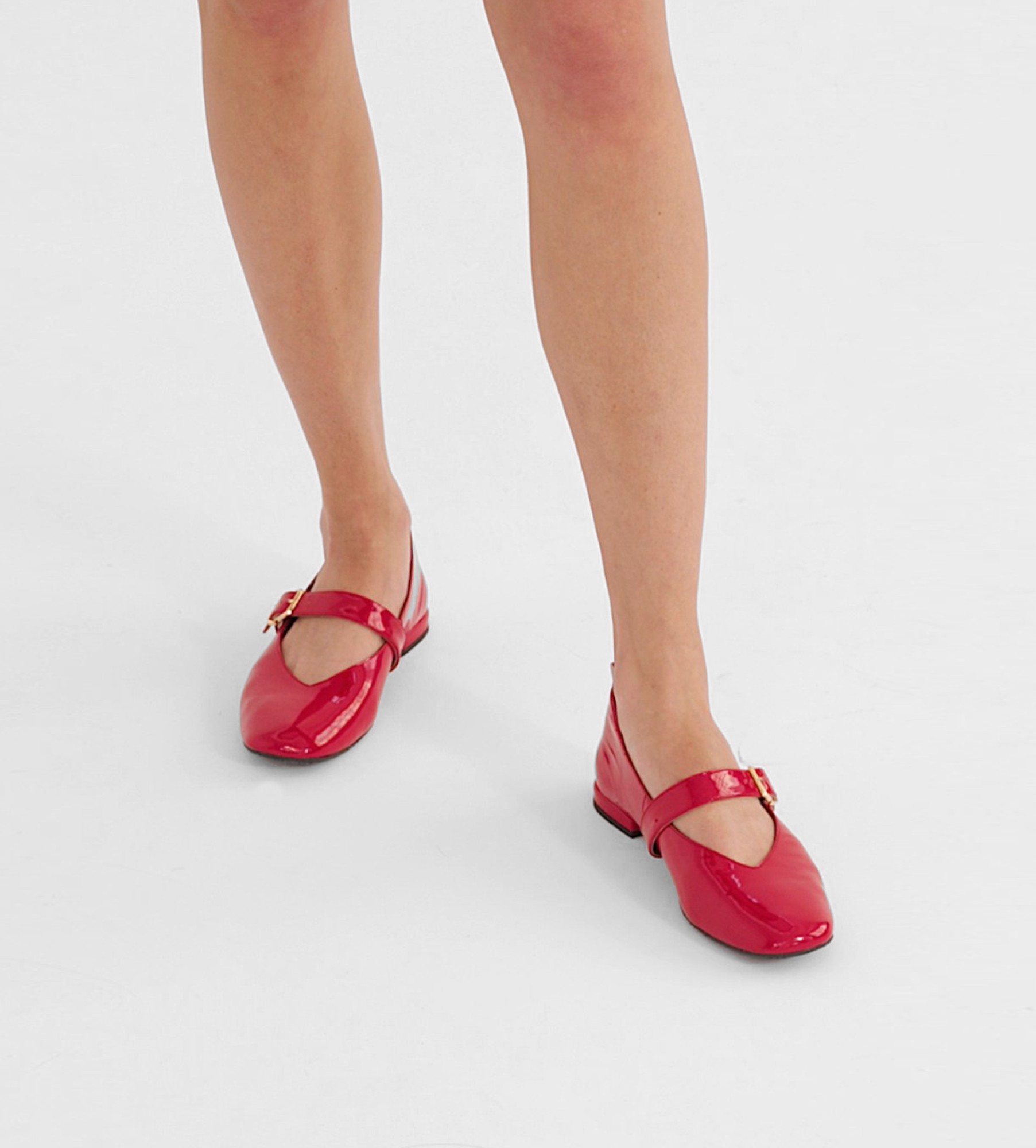 Czerwone lakierowane baleriny damskie to kwintesencja kobiecości i elegancji, idealne dla pań, które pragną dodać swojej stylizacji odrobinę wyrazistości. Wykonane z połyskującej, lakierowanej skóry, przyciągają wzrok i nadają całości szyku. Charakterystyczne, kobiece wycięcie w górnej części buta subtelnie podkreśla linię stopy, dodając lekkości i finezji. Pasek zapinany na złotą klamrę nie tylko stanowi ozdobny akcent, ale również zapewnia doskonałe dopasowanie i komfort podczas noszenia. Te baleriny to idealne połączenie stylu i wygody, świetnie sprawdzające się zarówno na co dzień, jak i na bardziej formalne okazje, nadając każdej stylizacji odrobinę klasycznej elegancji.
