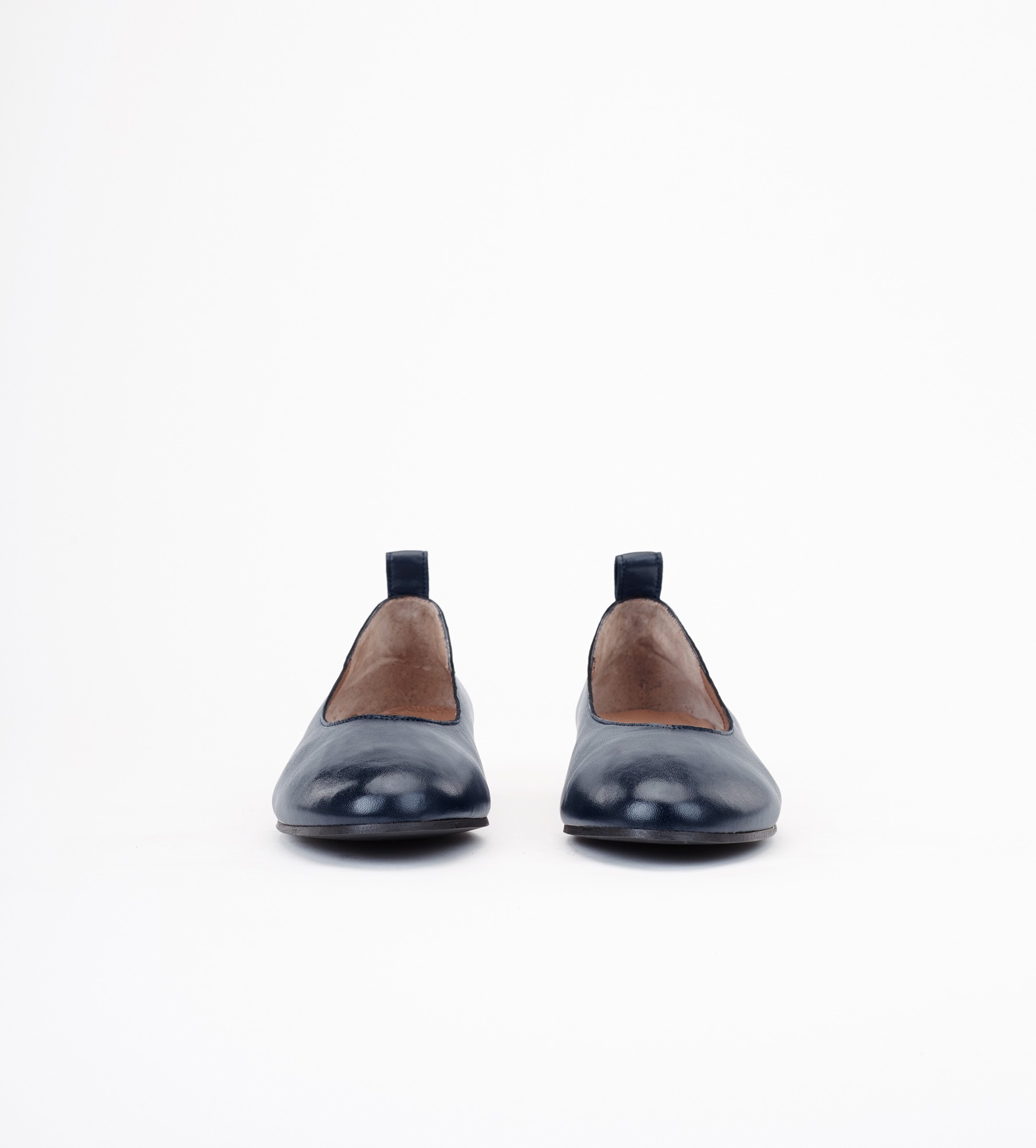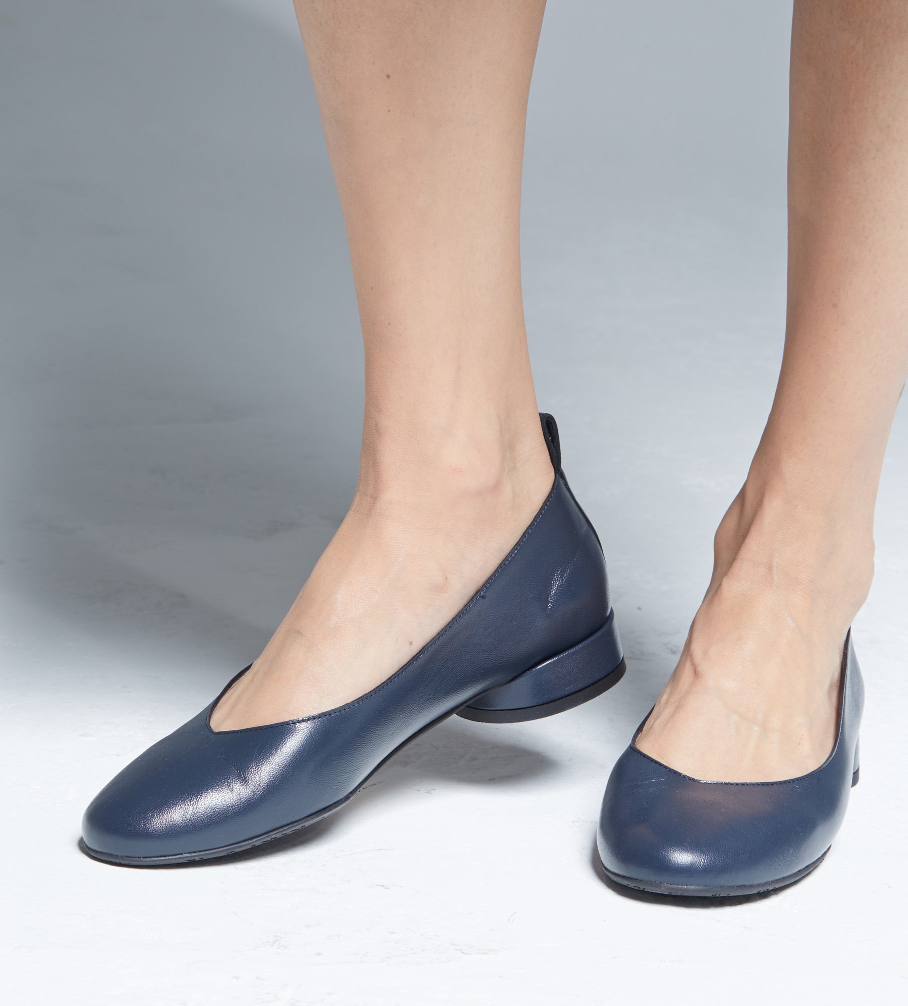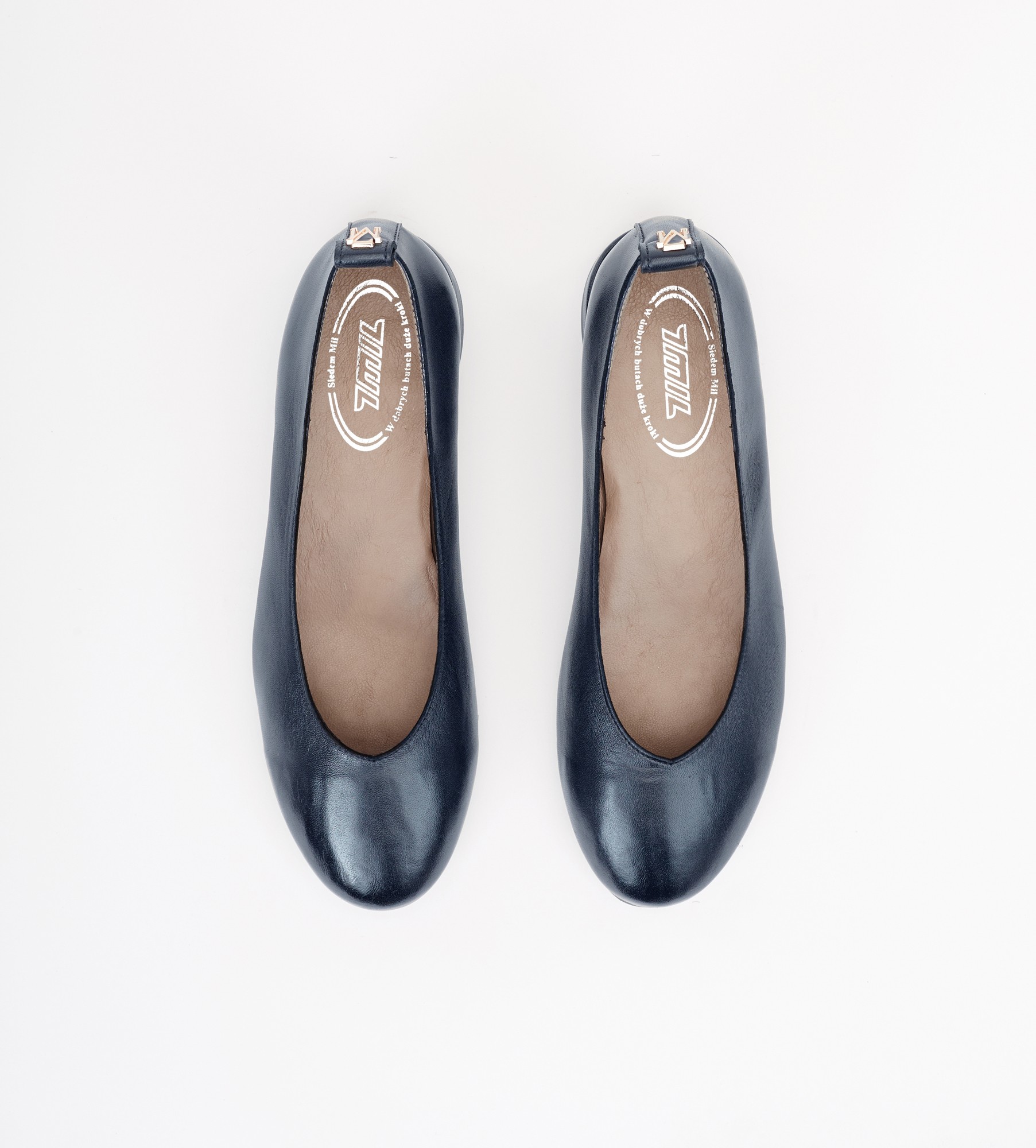 Granatowe klasyczne baleriny damskie wykonane z wysokiej jakości naturalnej skóry licowej. Subtelne wycięcie z przodu dodaje gustu i klasy każdej stylizacji. Komfort użytkowania zapewniają wygodny 2,5 centymetrowy obcas oraz wnętrze wyściełane wysokiej jakości naturalną skórą jagnięcą.