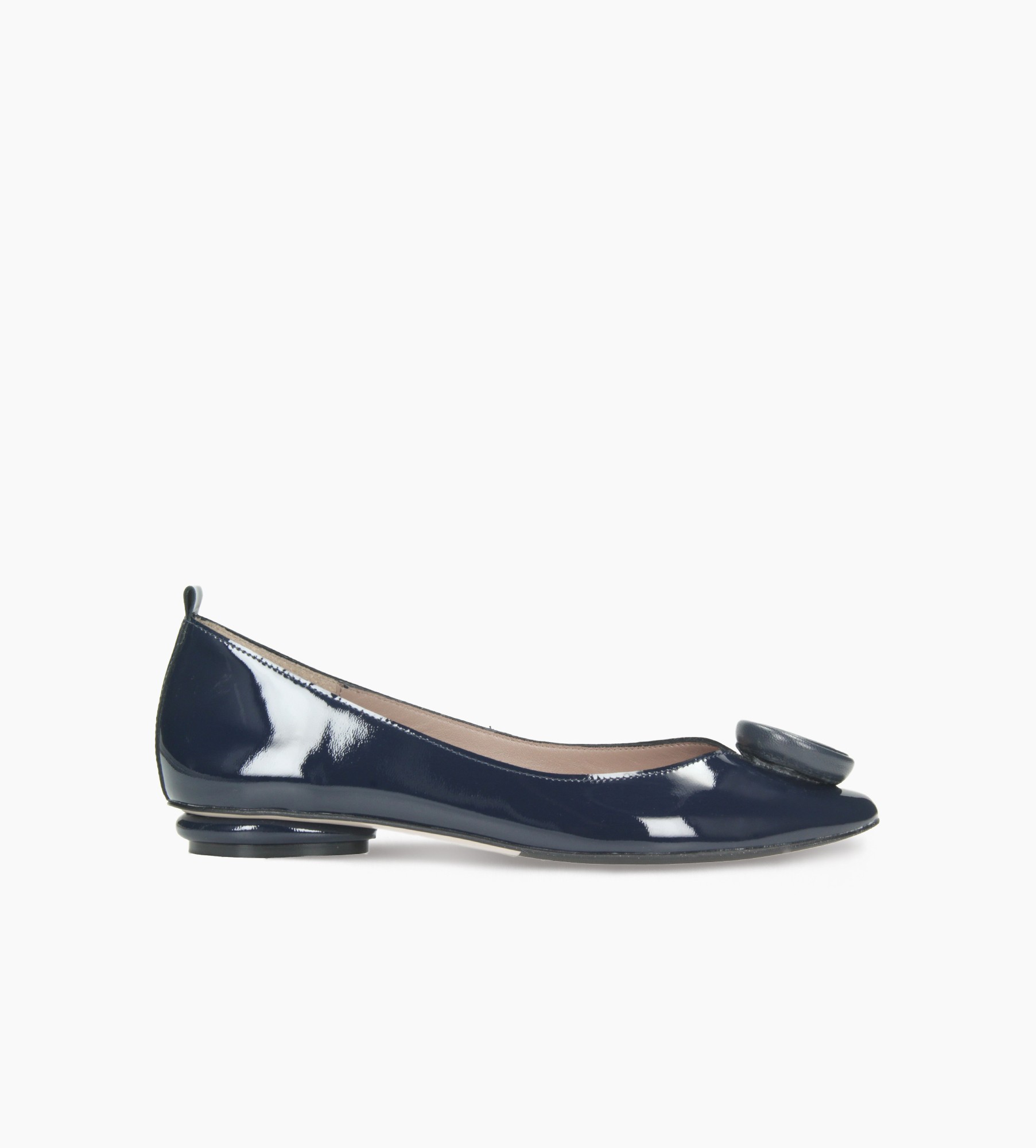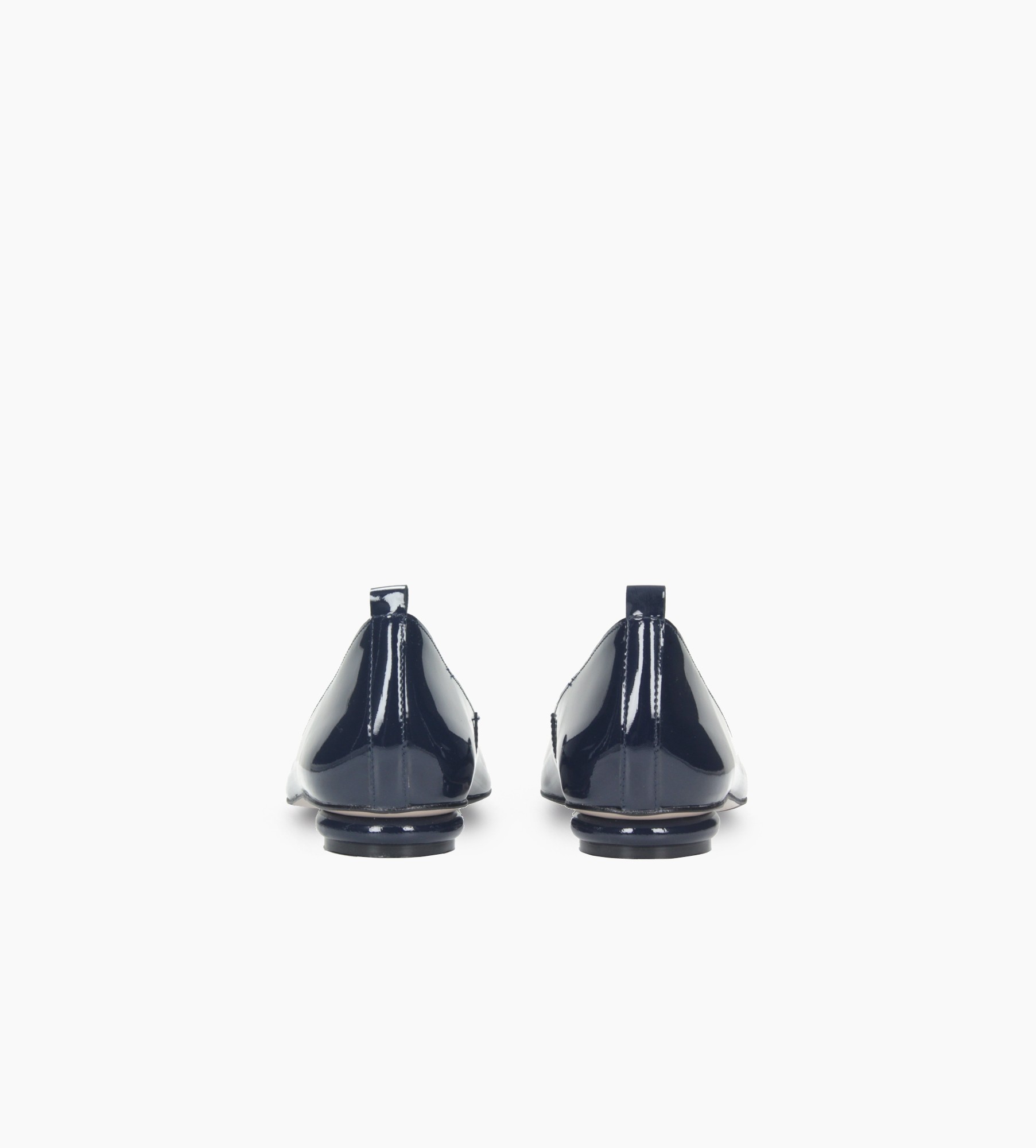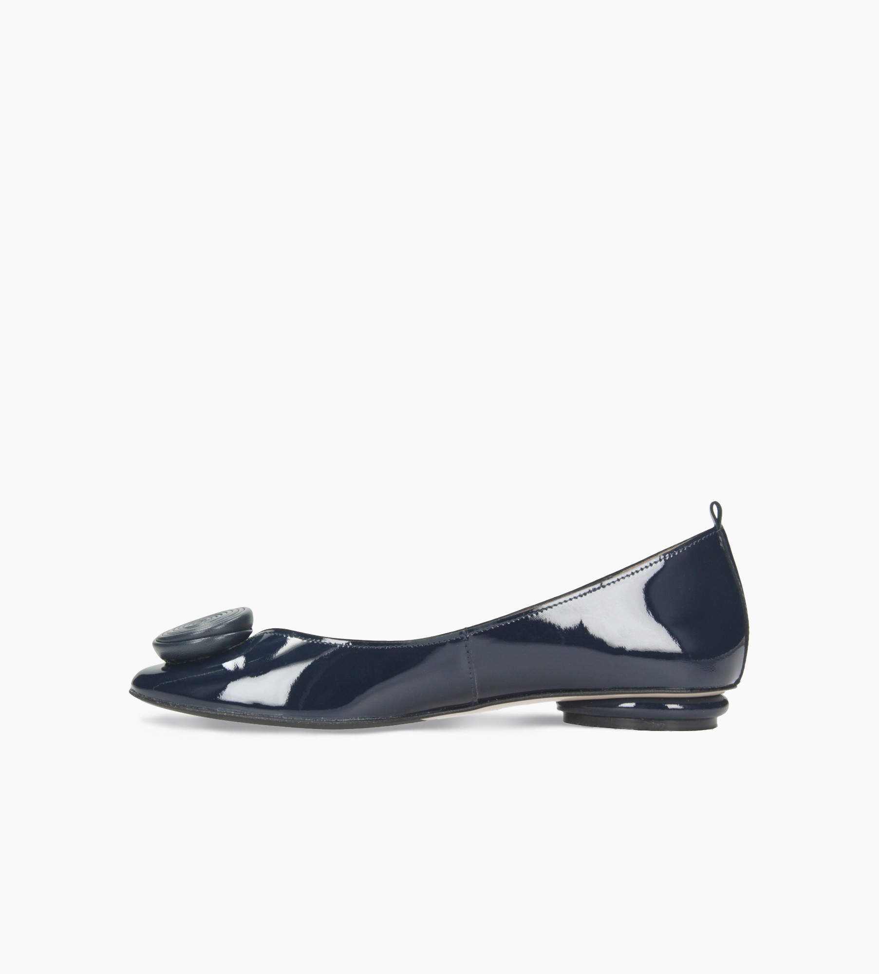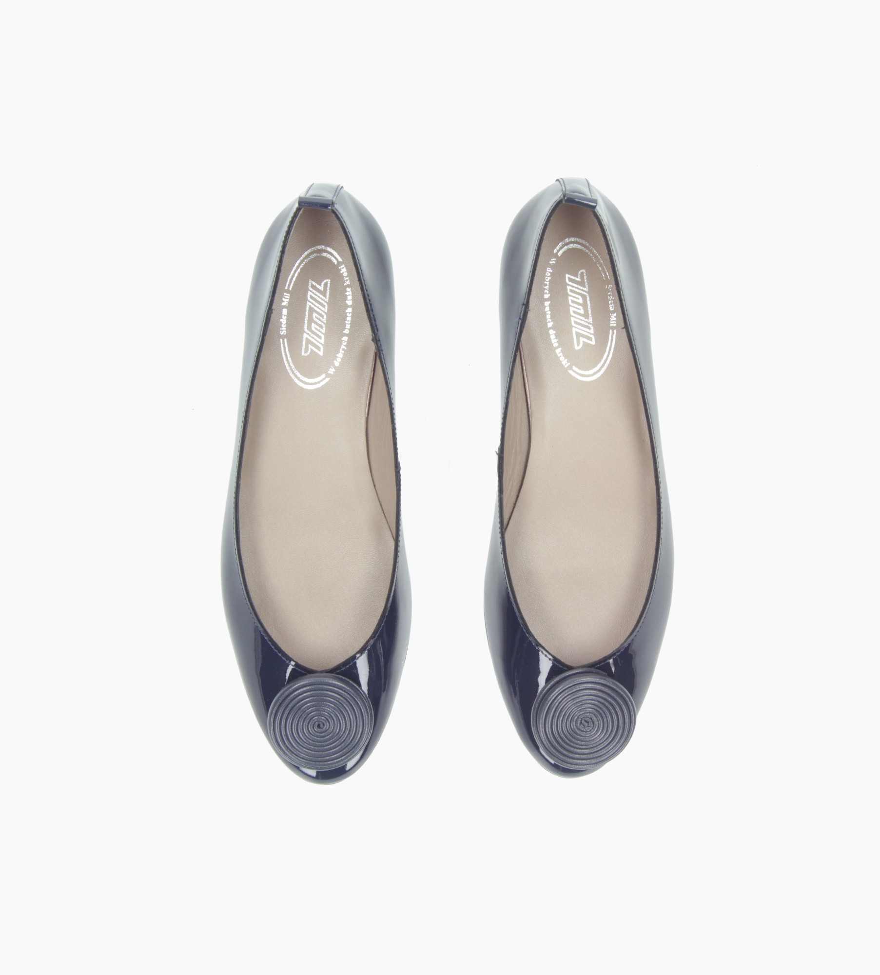 Granatowe baleriny wykonane z wysokiej jakości naturalnej skóry lakierowanej to połączenie klasycznego stylu i nowoczesnych rozwiązań, które z pewnością przypadnie do gustu kobietom ceniącym zarówno styl, jak i wygodę. Granatowy kolor nadaje im ponadczasowy charakter, który doskonale komponuje się z różnorodnymi stylizacjami. Efektowna skórzana ozdoba w formie koła umieszczona na przodzie buta nadaje im subtelności i kobiecości. Baleriny posiadają płaską podeszwę, która zapewnia stabilność i wygodę podczas chodzenia. Dzięki temu są idealnym wyborem zarówno na co dzień, jak i na specjalne okazje.
