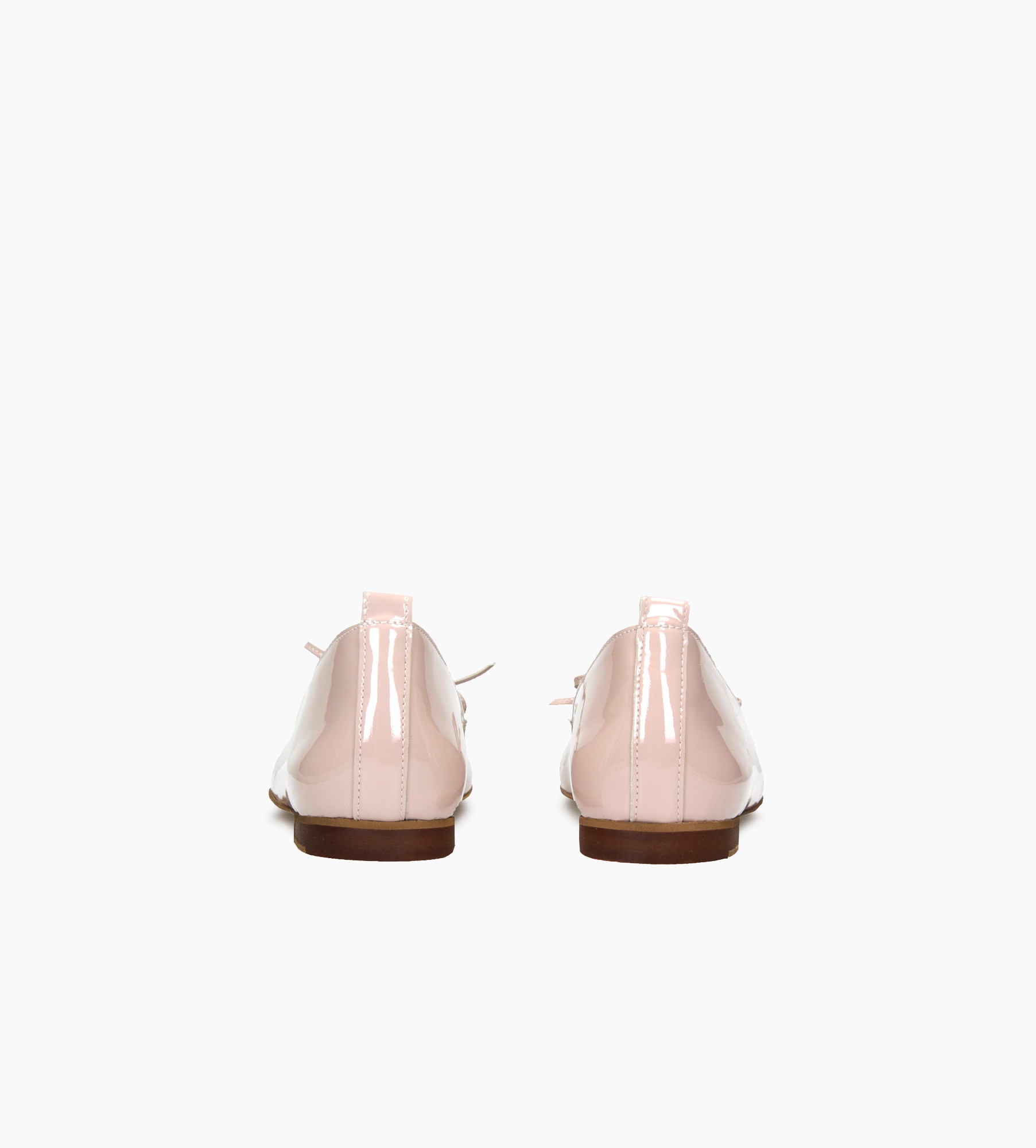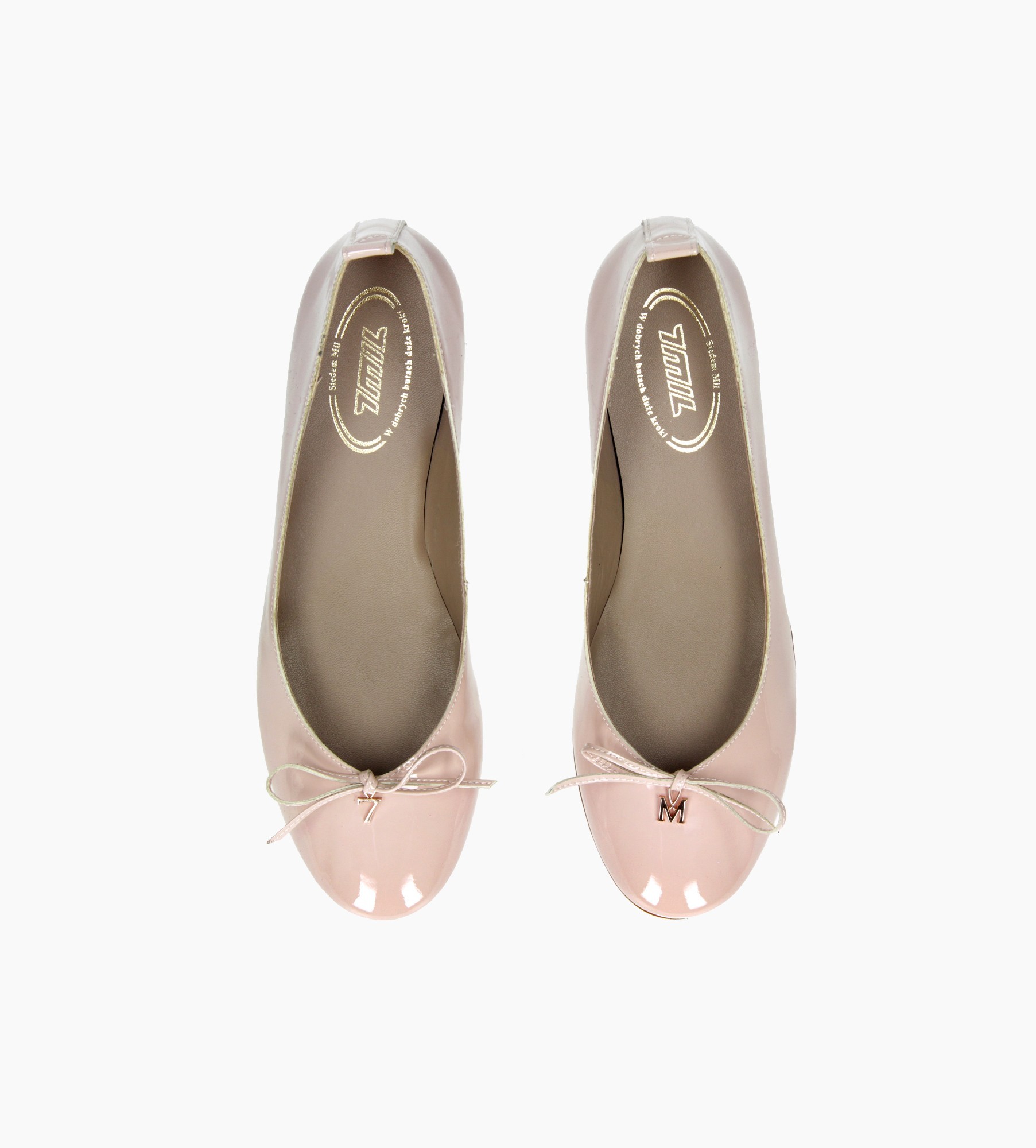 Wyjątkowo subtelne baleriny wykonane zostały z lakierowanej skóry naturalnej w odcieniu pudrowego różu, który nadaje im niezwykle kobiecego i romantycznego charakteru. Wnętrze wyścielone miękką skórą jagnięcą zapewnia maksymalny komfort noszenia nawet przez cały dzień. Uwagę przyciąga delikatna kokardka umieszczona na nosku, ozdobiona dyskretną biżuteryjną literką „M” i cyfrą „7” – stylowy ukłon w stronę marki 7mil. Minimalistyczna forma, klasyczny krój i pastelowy kolor sprawiają, że baleriny są doskonałym wyborem zarówno do codziennych stylizacji, jak i bardziej eleganckich okazji. To kwintesencja dziewczęcej elegancji i ponadczasowego szyku.
