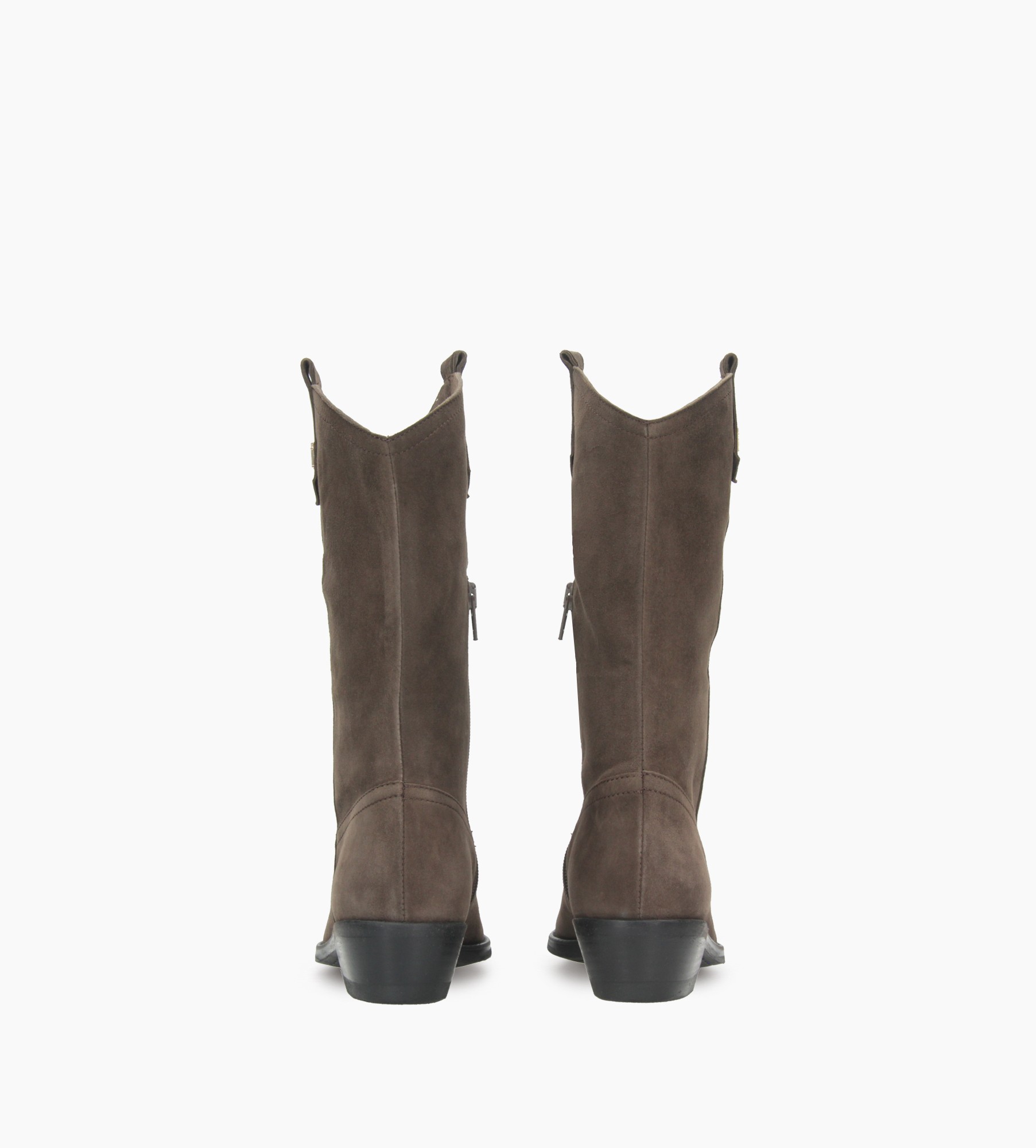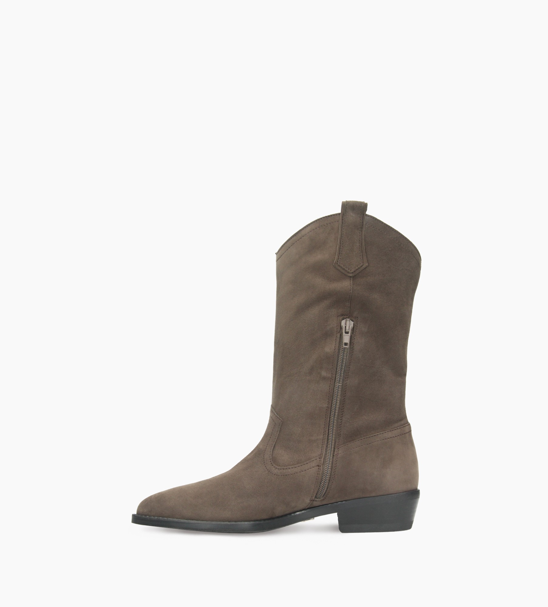 Brązowe botki damskie w stylu kowbojskim wykonane z naturalnej skóry zamszowej to połączenie stylu i wygody, idealne na sezon jesienno-zimowy. Ich wnętrze jest ocieplone przyjemnym materiałem przypominającym kocyk, co zapewnia komfort termiczny w chłodniejsze dni. Model wyposażony jest w praktyczny suwak, który ułatwia zakładanie i zdejmowanie butów, a klasyczny, inspirowany kowbojską stylistyką design dodaje charakteru każdej stylizacji. To botki, które doskonale komponują się z casualowymi, jak i bardziej wyrafinowanymi zestawami.