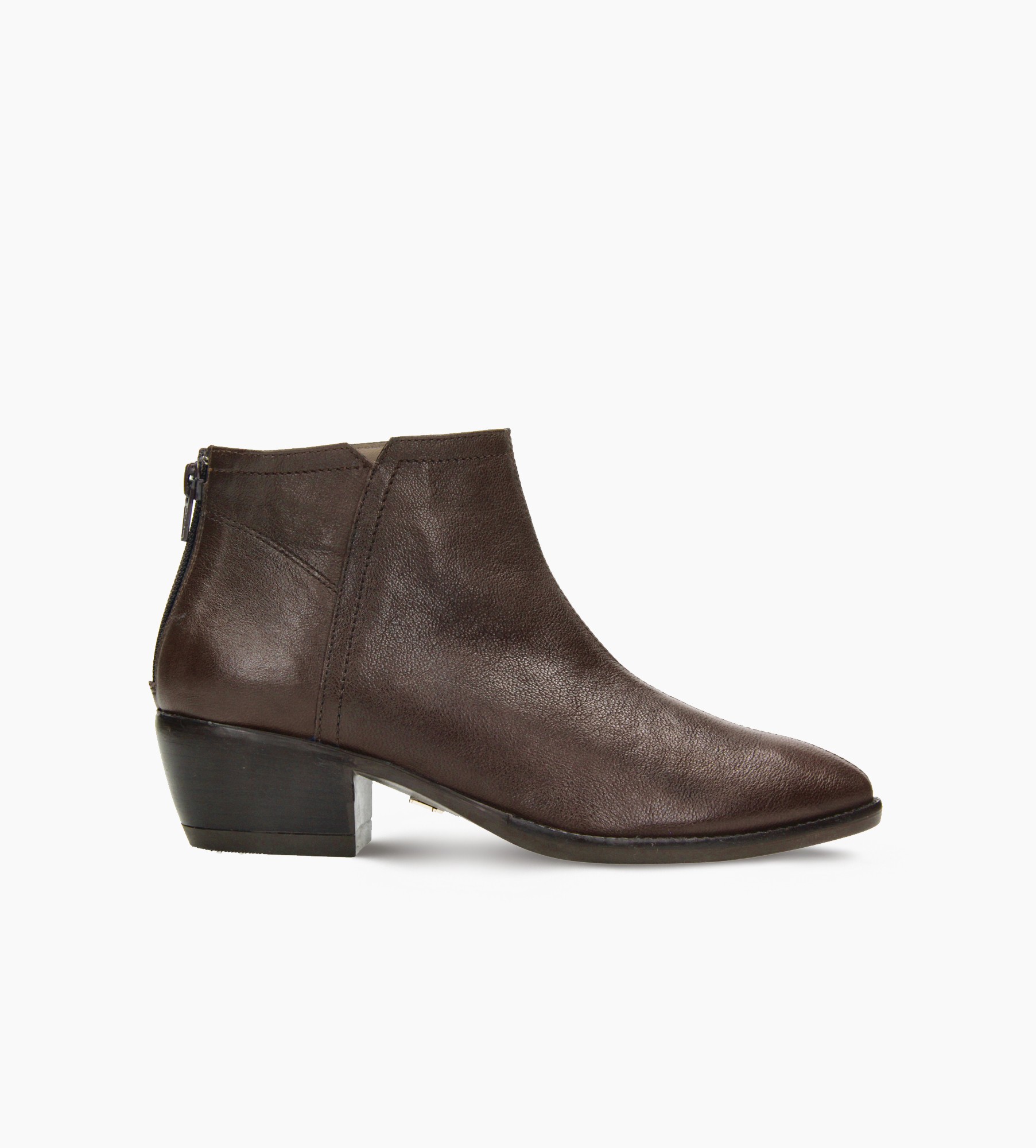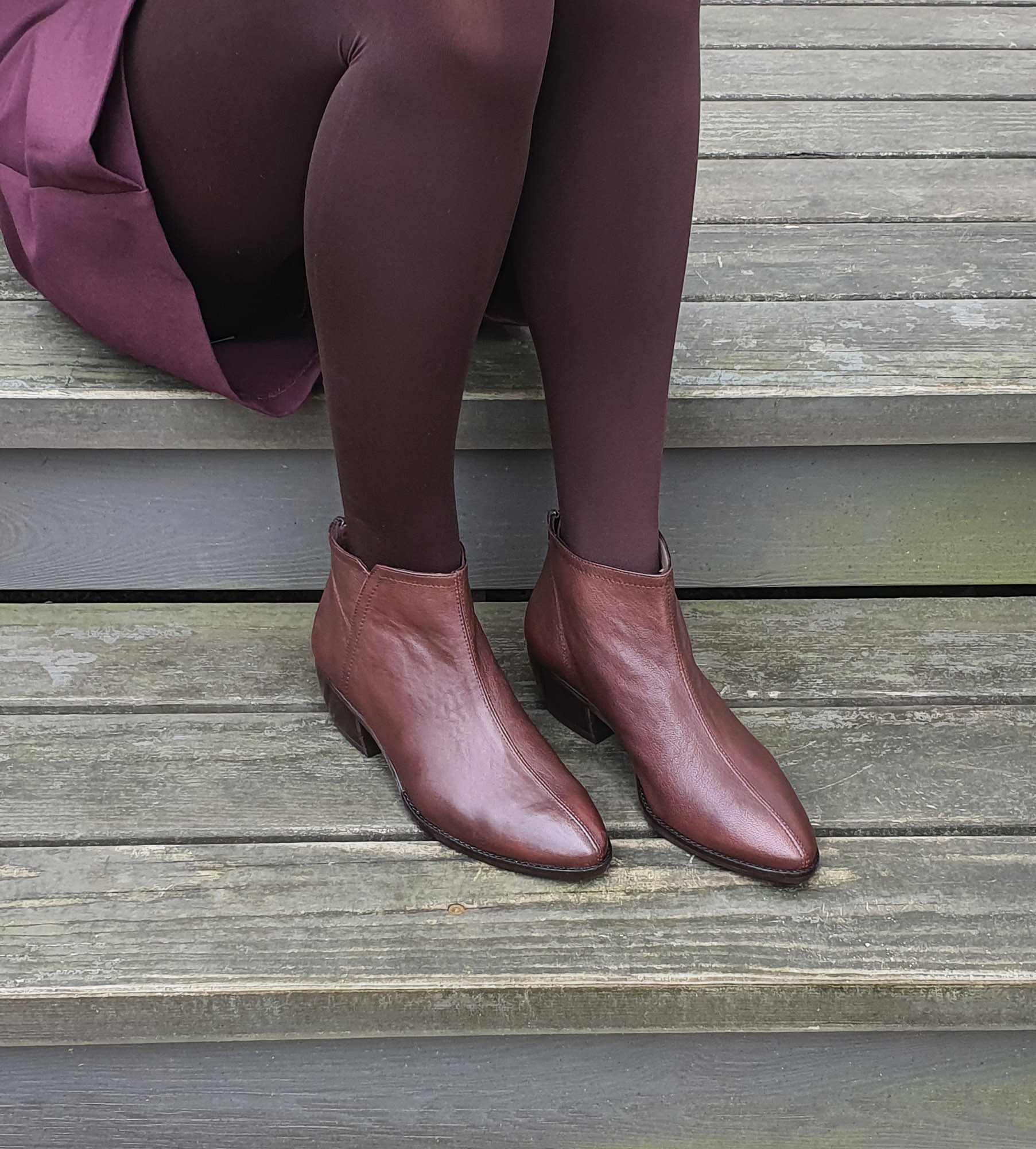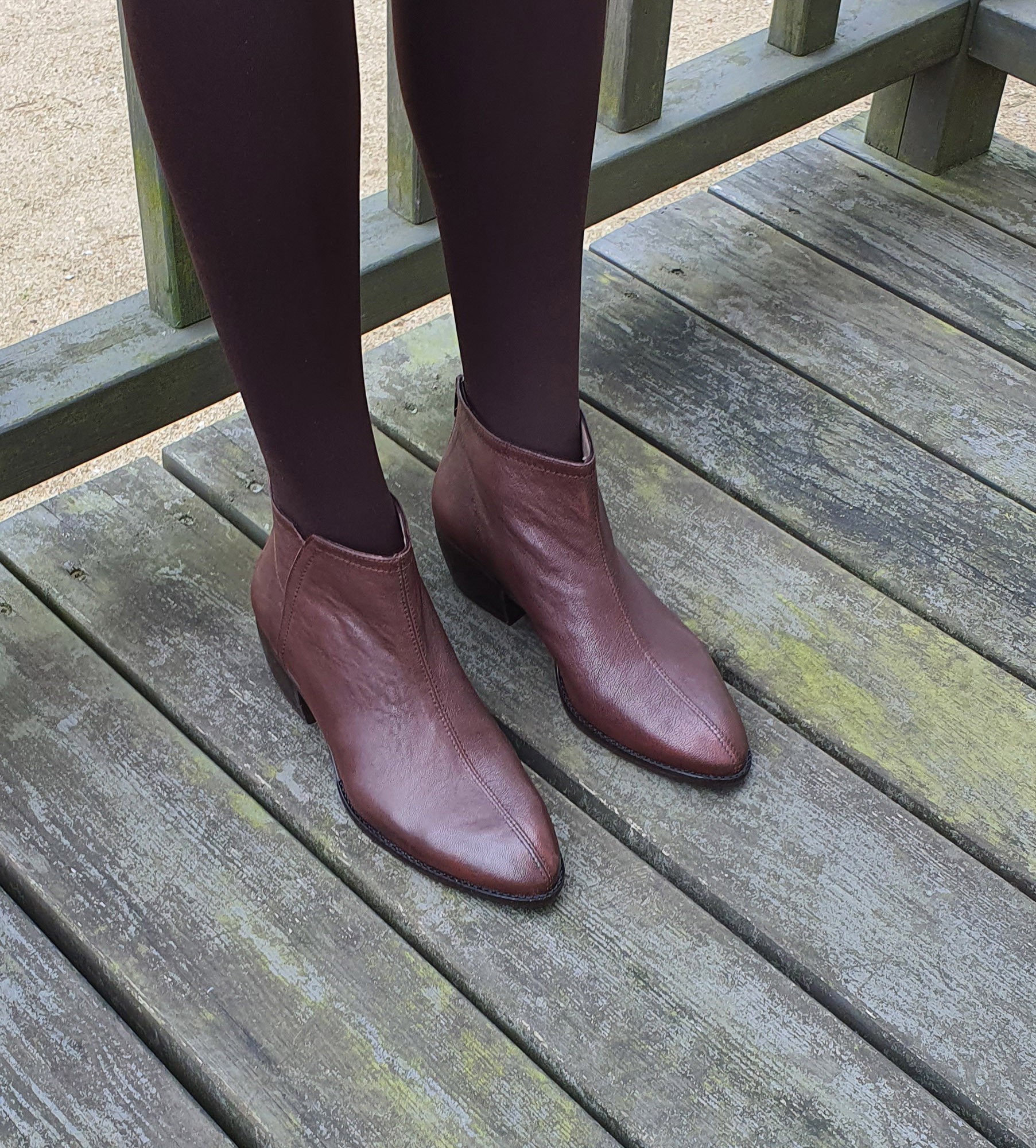 Stylowe i niezwykle wygodne botki damskie wykonane z miękkiej, naturalnej skóry w ciepłym odcieniu brązu. Wnętrze wykończone jest delikatną skórą jagnięcą, która otula stopę i zapewnia komfort noszenia nawet przez cały dzień. Model osadzony jest na wygodnym, stabilnym obcasie o idealnej wysokości, który optycznie wysmukla sylwetkę, a jednocześnie pozostaje bardzo komfortowy. Botki mają elastyczną podeszwę, która doskonale amortyzuje kroki i dostosowuje się do ruchów stopy. Zapinane z tyłu na praktyczny suwak, który ułatwia zakładanie i dodaje całości nowoczesnego charakteru.
