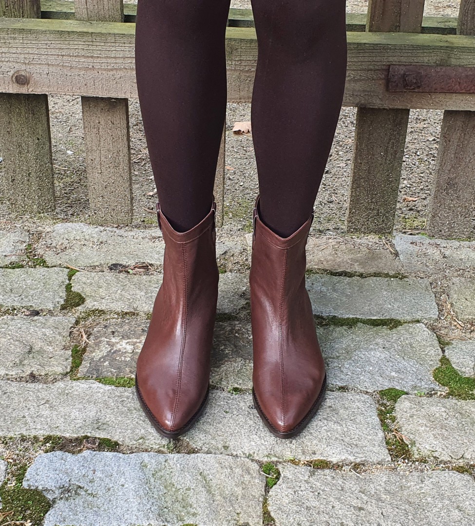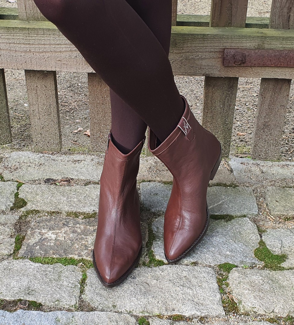 Wyjątkowo eleganckie i subtelne – te brązowe botki wykonane z naturalnej skóry to klasyka w kobiecym wydaniu. Ich smukła forma pięknie podkreśla linię nogi, a miękka skóra jagnięca wewnątrz zapewnia maksymalny komfort noszenia. Model zapinany z tyłu na dyskretny zamek, co pozwala na wygodne zakładanie, jednocześnie zachowując minimalistyczny wygląd. Całość osadzona jest na niskim, stabilnym obcasie, który dodaje sylwetce lekkości, nie rezygnując z wygody. Dekoracyjne wstążki z logo marki przy cholewce dodają charakteru i wyróżniają ten model wśród klasycznych botków.