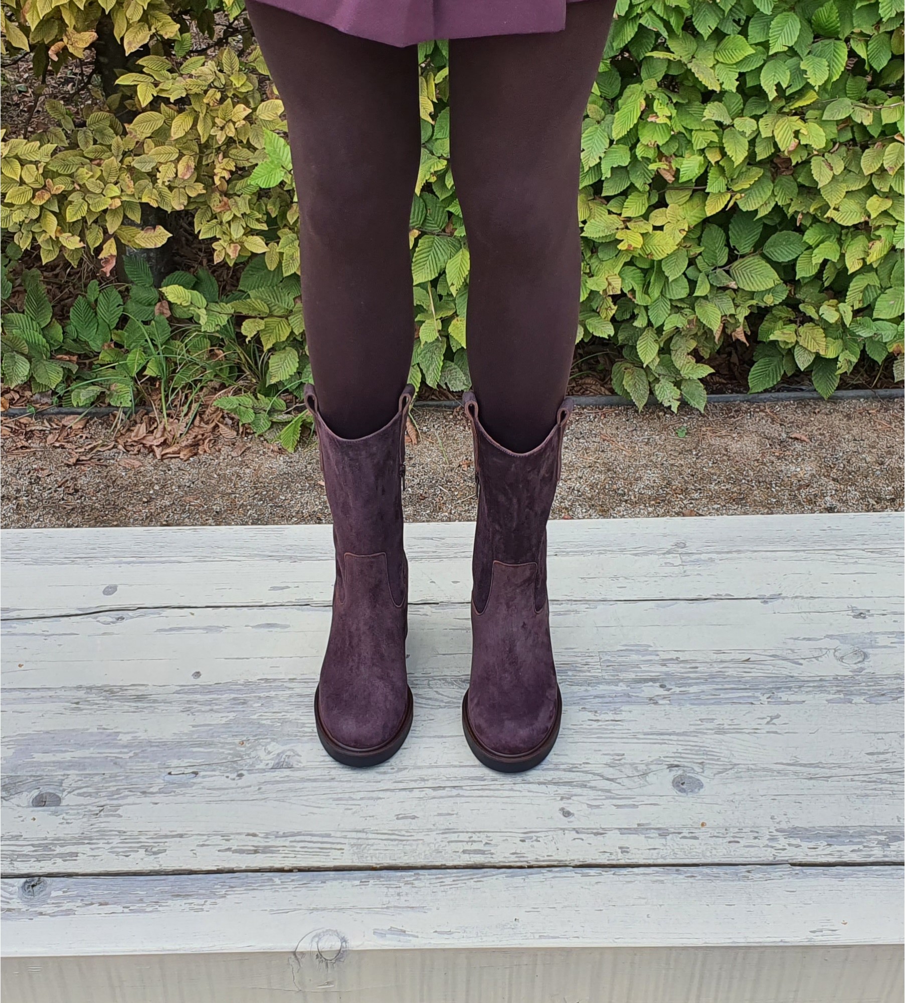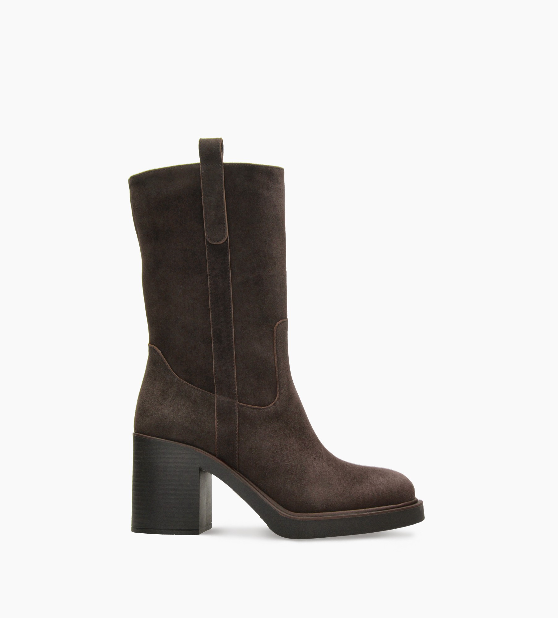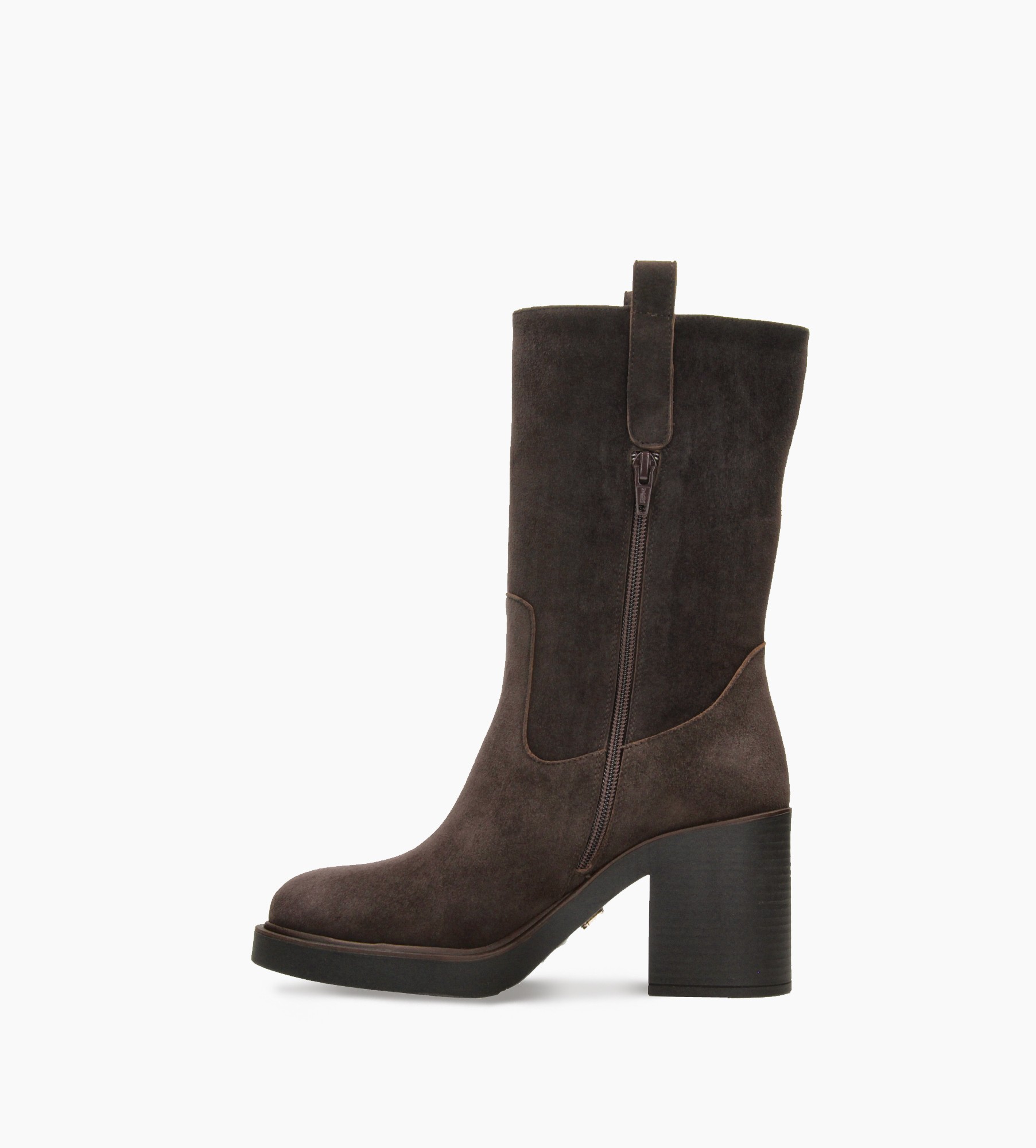 Brązowe zamszowe botki damskie wykonane z wysokiej jakości naturalnej skóry. Model osadzony na wygodnym i stabilnym klockowatym obcasie, który zapewnia komfort noszenia przez cały dzień. Cholewka sięga połowy łydki i jest zapinana z boku na zamek, co ułatwia zakładanie. Po bokach znajdują się dekoracyjne paski, nawiązujące subtelnie do stylistyki western, nadające butom unikalnego charakteru. Idealne do stylizacji casualowych i eleganckich — to uniwersalna propozycja dla kobiet ceniących połączenie wygody, mody i wyrafinowania.