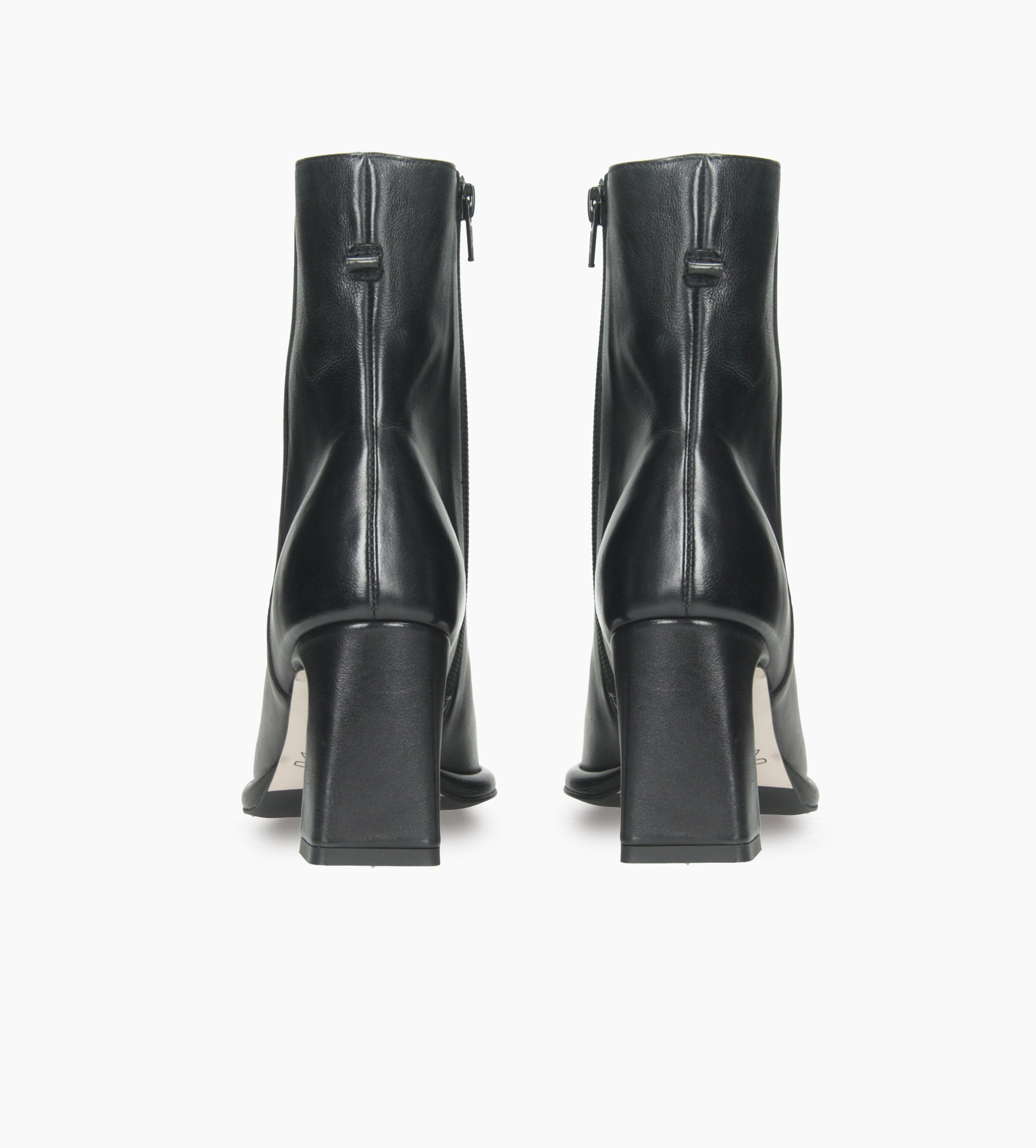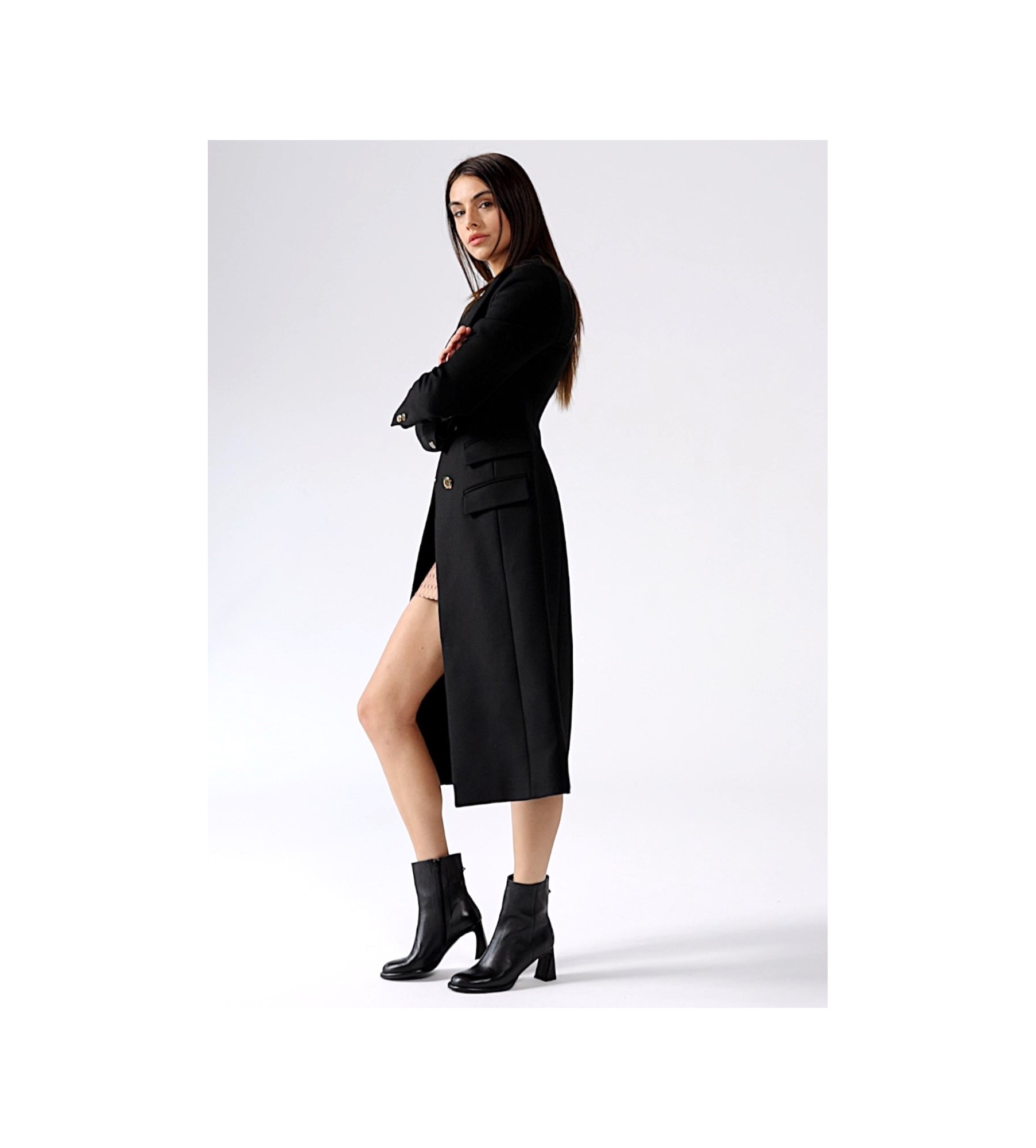 Połącz czarne botki z dopasowaną, czarną sukienką o długości midi oraz eleganckim, wełnianym płaszczem w odcieniu grafitowym. Uzupełnij stylizację srebrną biżuterią oraz skórzaną torebką na ramię w kolorze czarnym. Ta stylizacja doskonale sprawdzi się na formalne okazje, podkreślając elegancję i wyrafinowanie.