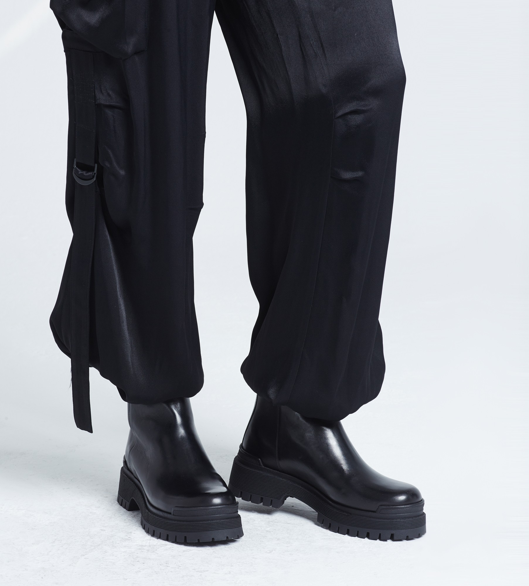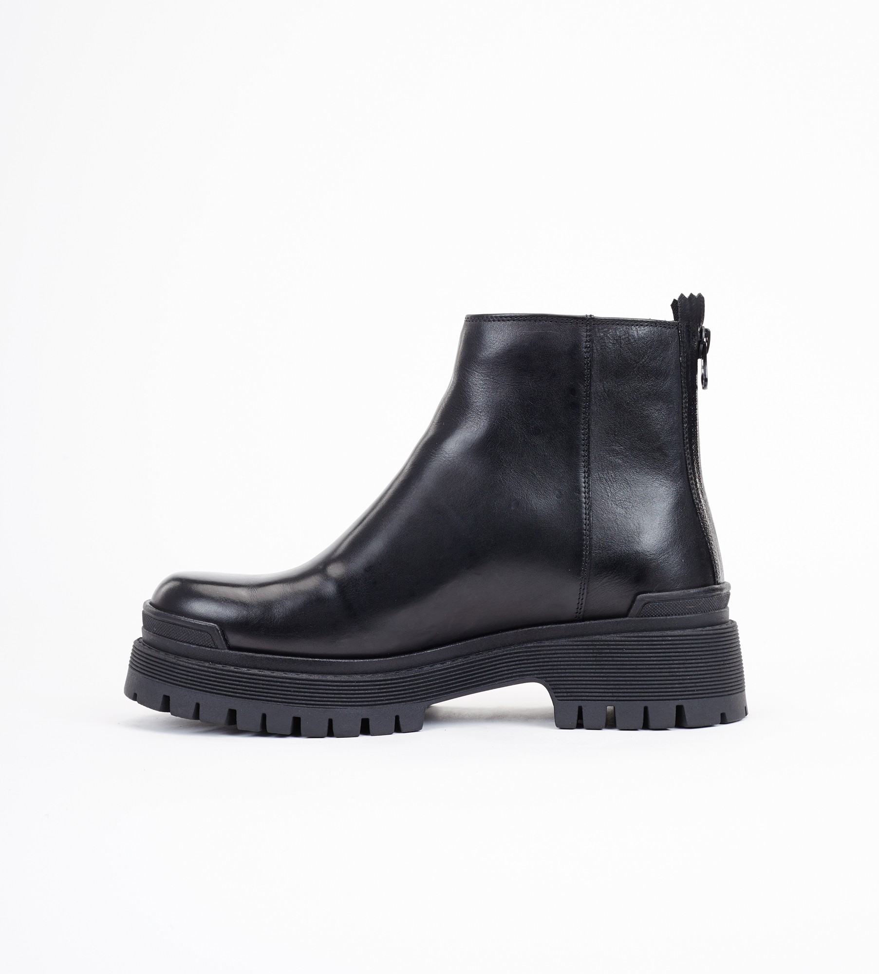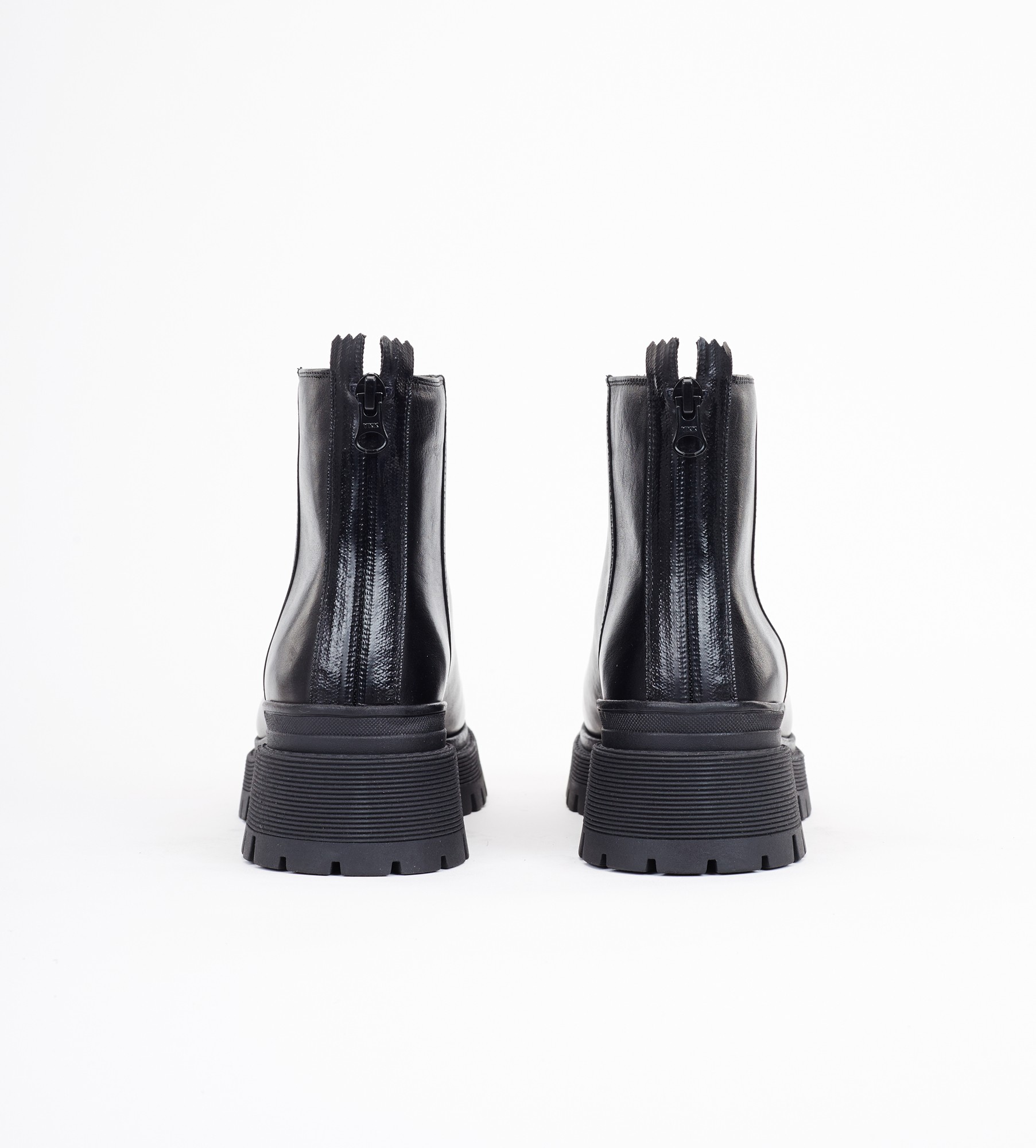 Czarne botki damskie wykonane z wysokiej jakości naturalnej skóry cielęcej, charakteryzują się eleganckim designem z grubą, trwałą podeszwą. Wnętrze i wkładka ocieplone miękkim kocykiem zapewniają komfort i ciepło w chłodniejsze dni. Botki mają stylowy obcas o wysokości 4 cm, Idealne na jesień i zimę, łączą w sobie praktyczność i kobiecy urok, dodając elegancji każdej stylizacji.