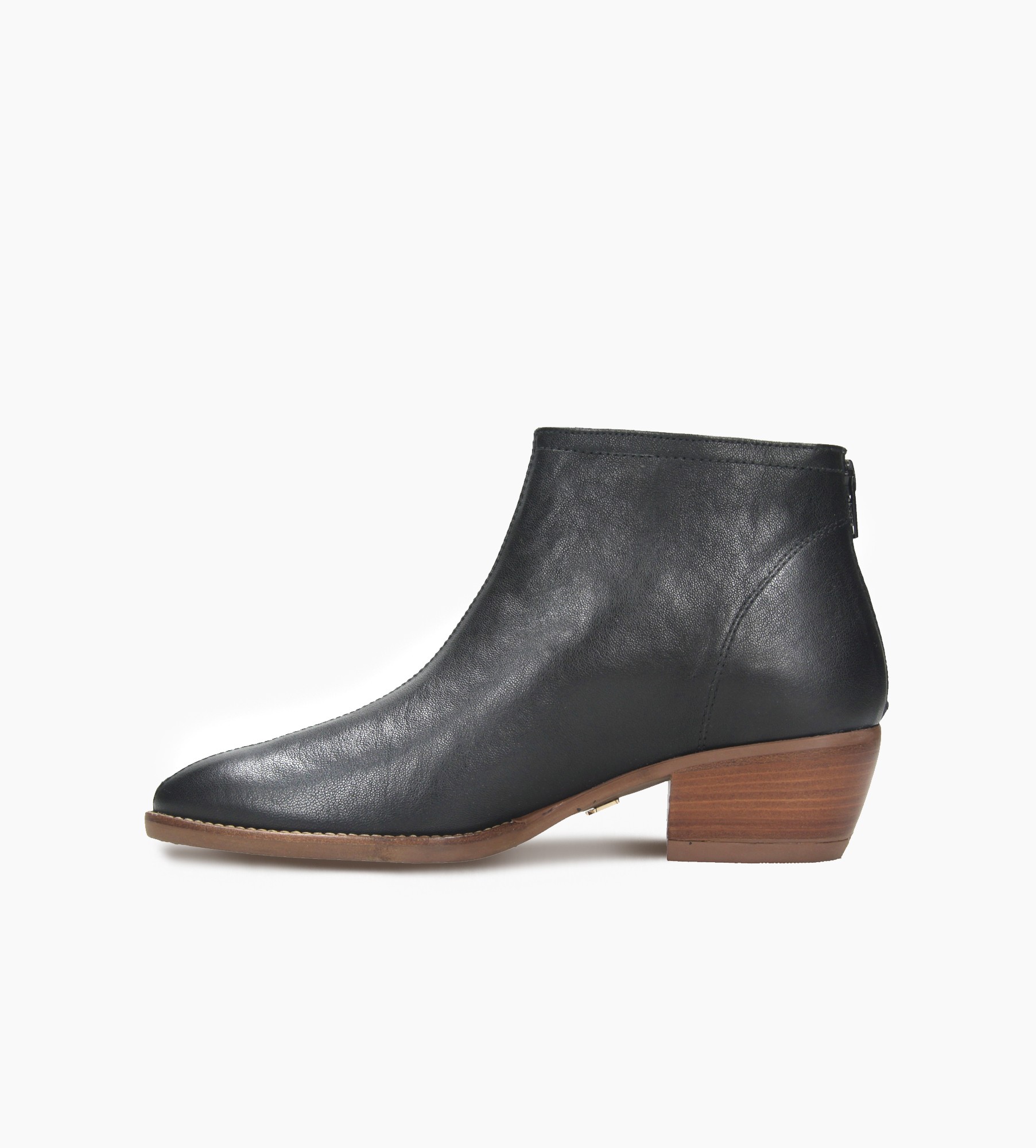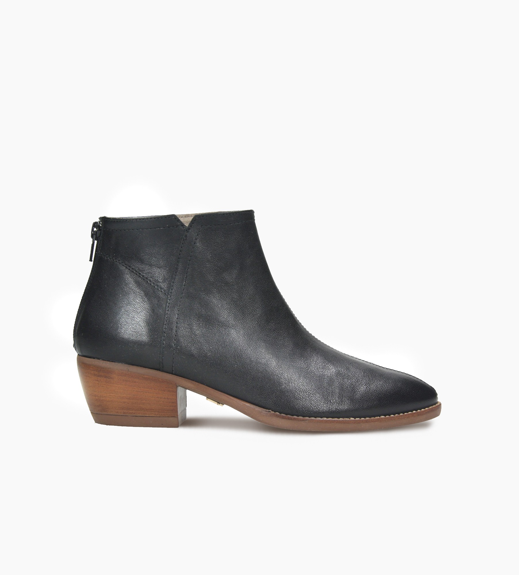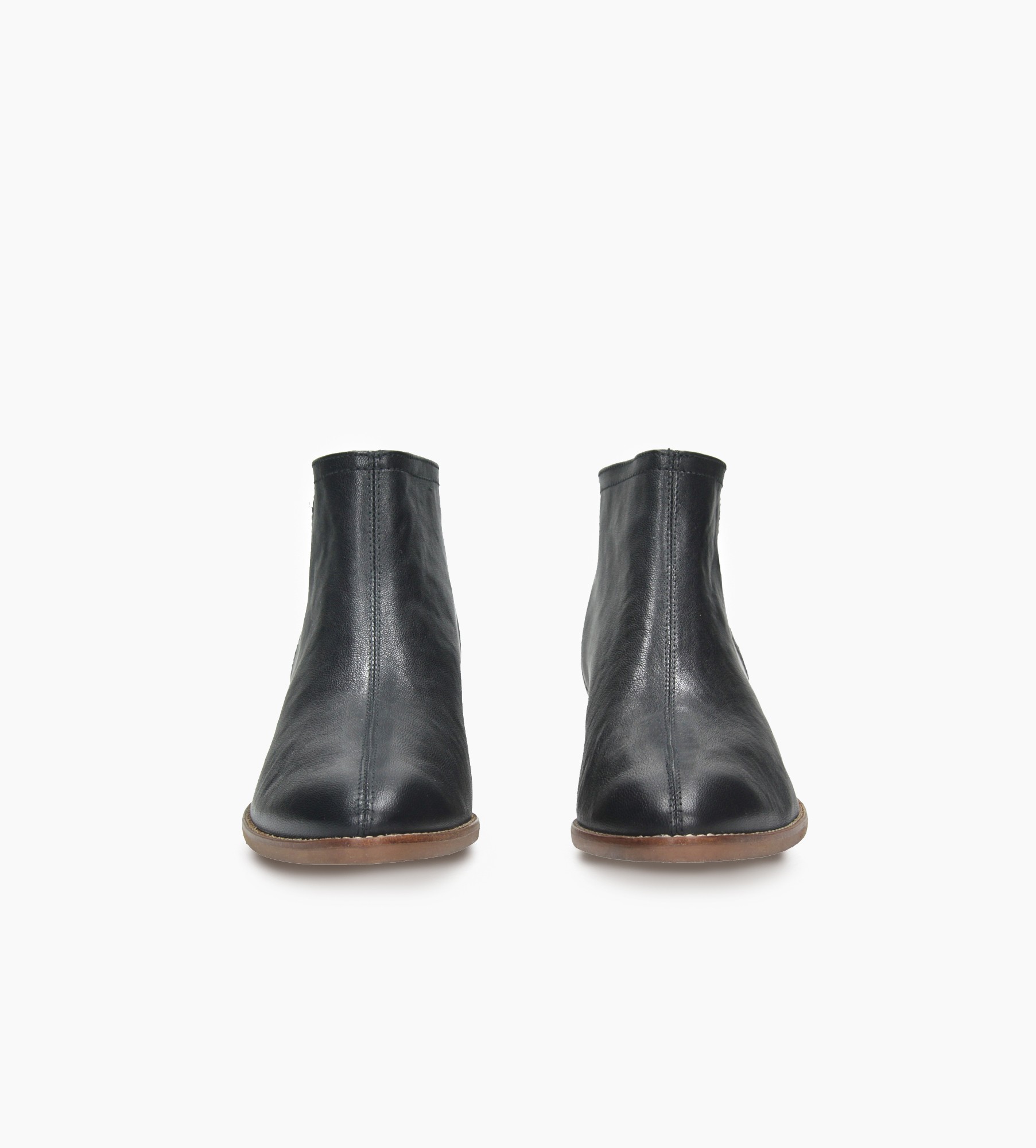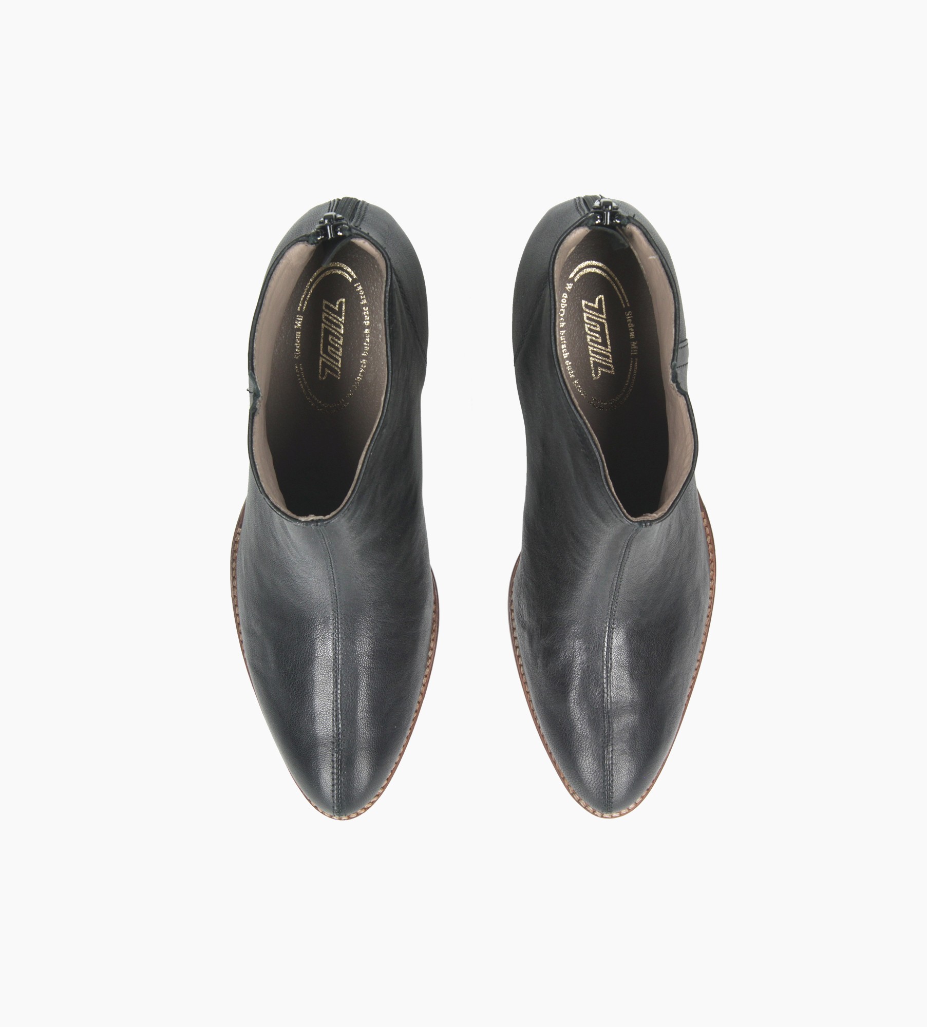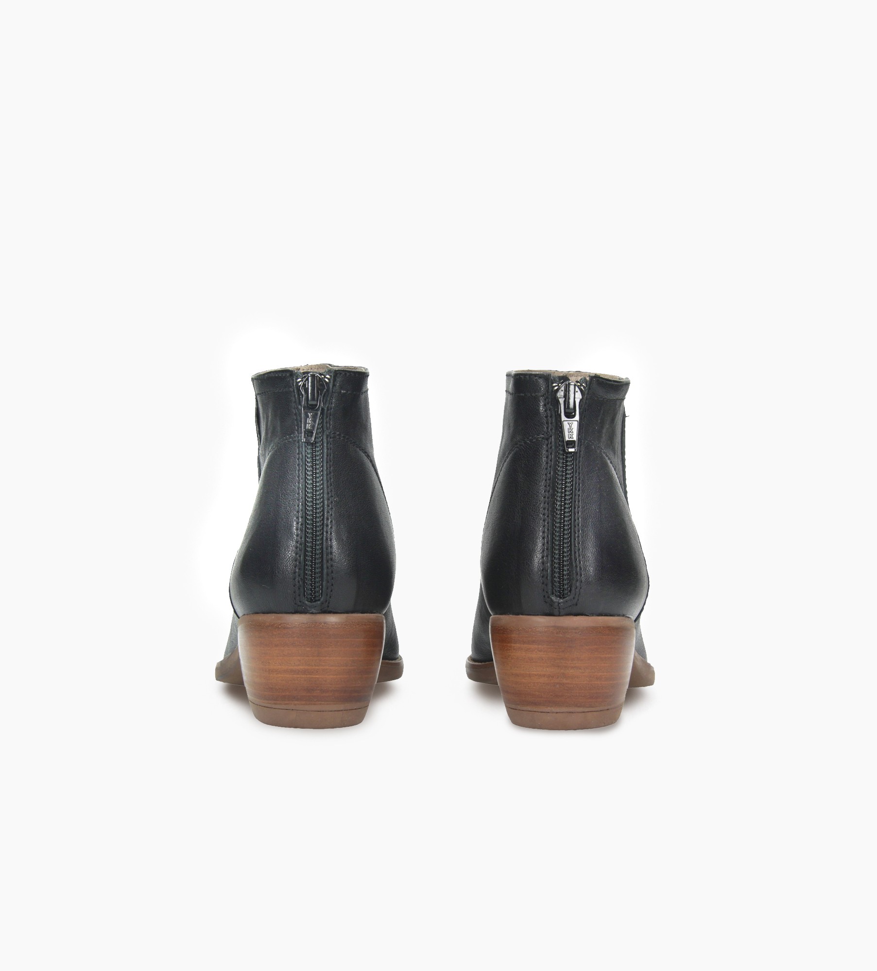 Te eleganckie botki damskie w czarnym kolorze to idealne połączenie klasyki i nowoczesności. Wykonane z naturalnej, skóry licowej, zapewniają nie tylko stylowy wygląd, ale także komfort noszenia dzięki miękkiej, skórzanej wkładce i wyściółce z jagnięcej skóry. Buty mają praktyczny suwak z tyłu, ułatwiający zakładanie, oraz 4,5-centymetrowy obcas, który dodaje elegancji. Ich całkowita wysokość wynosi 14 cm, co sprawia, że są idealne na chłodniejsze dni, łącząc wygodę z modnym designem.