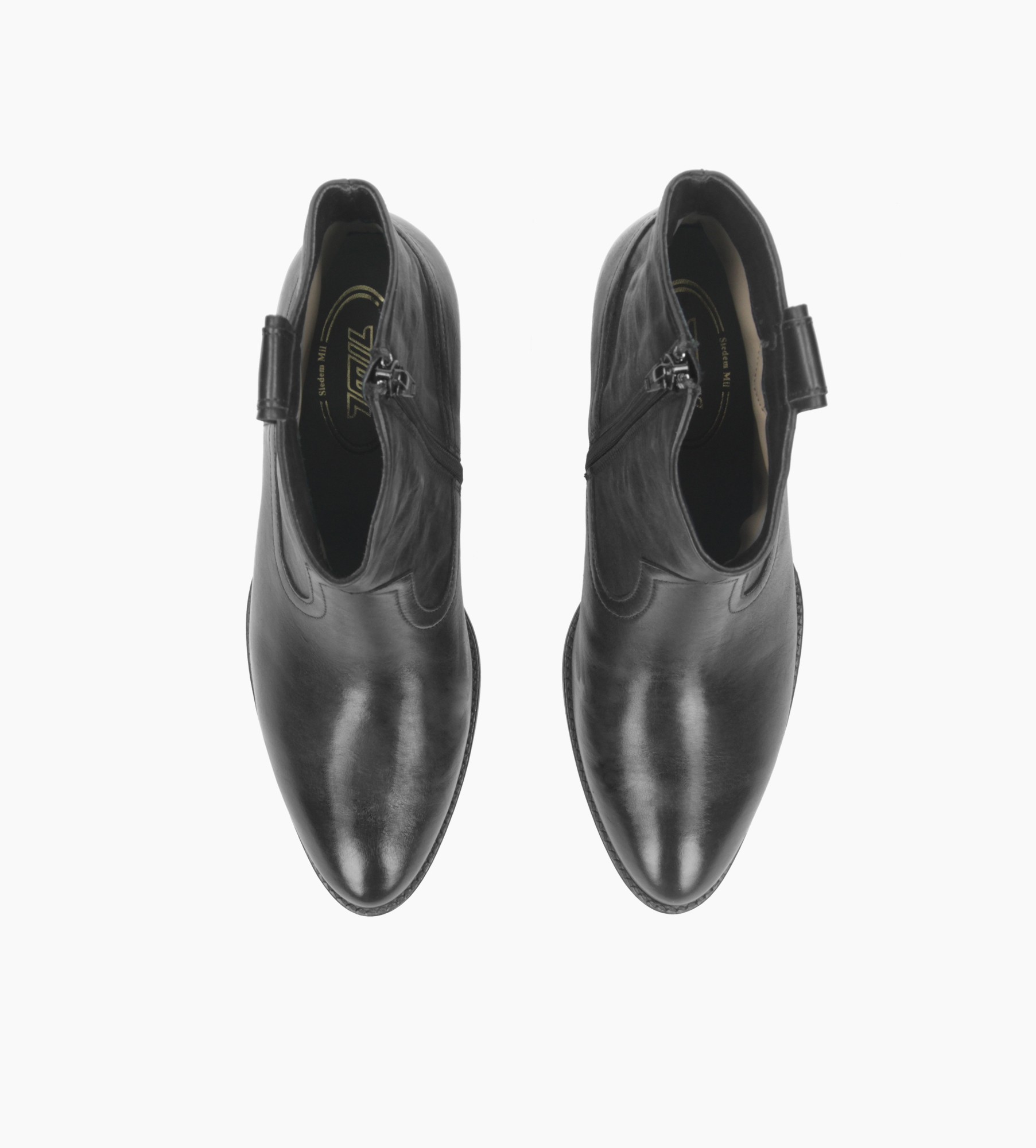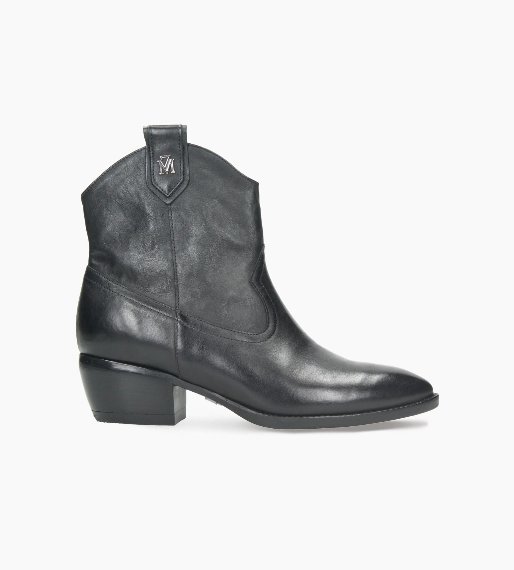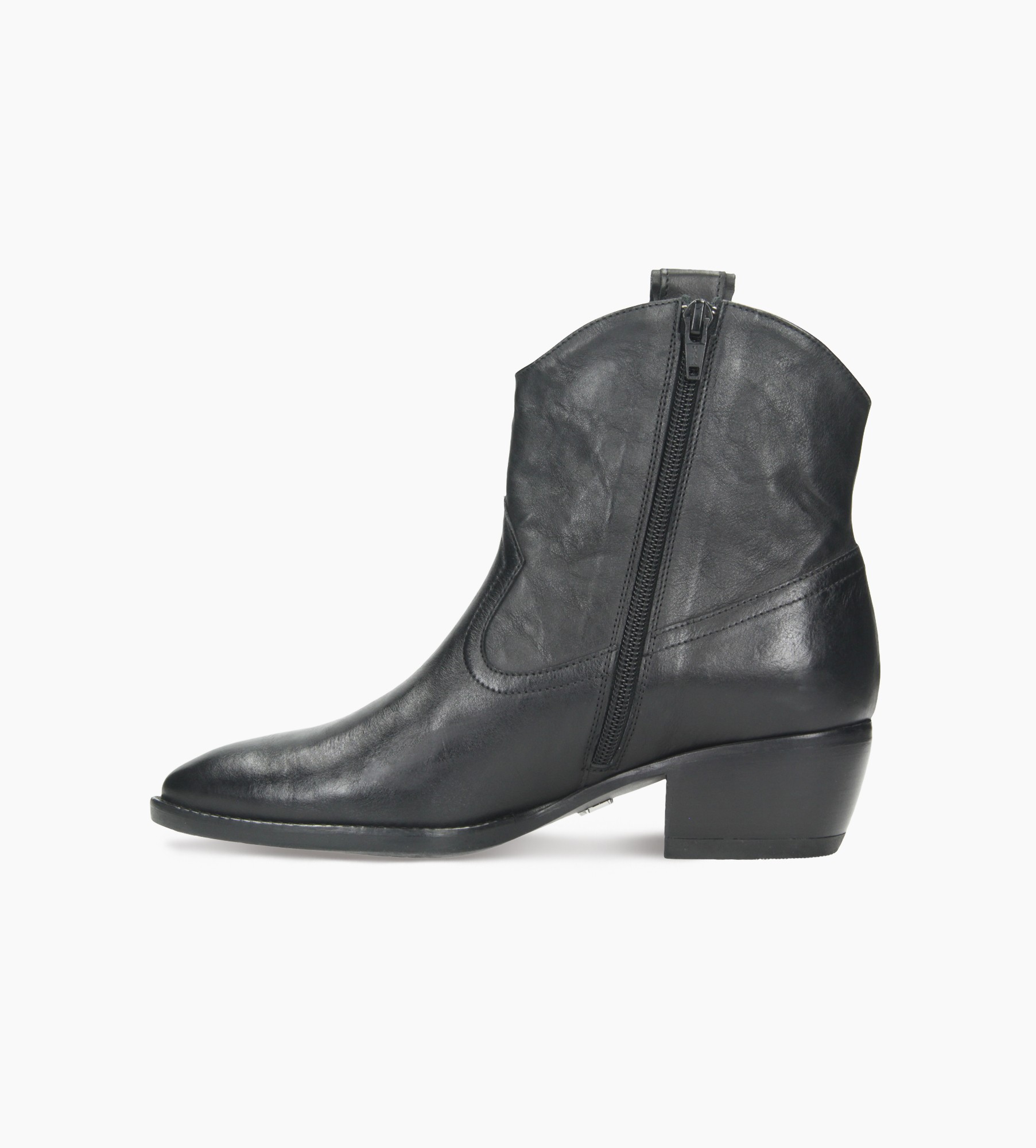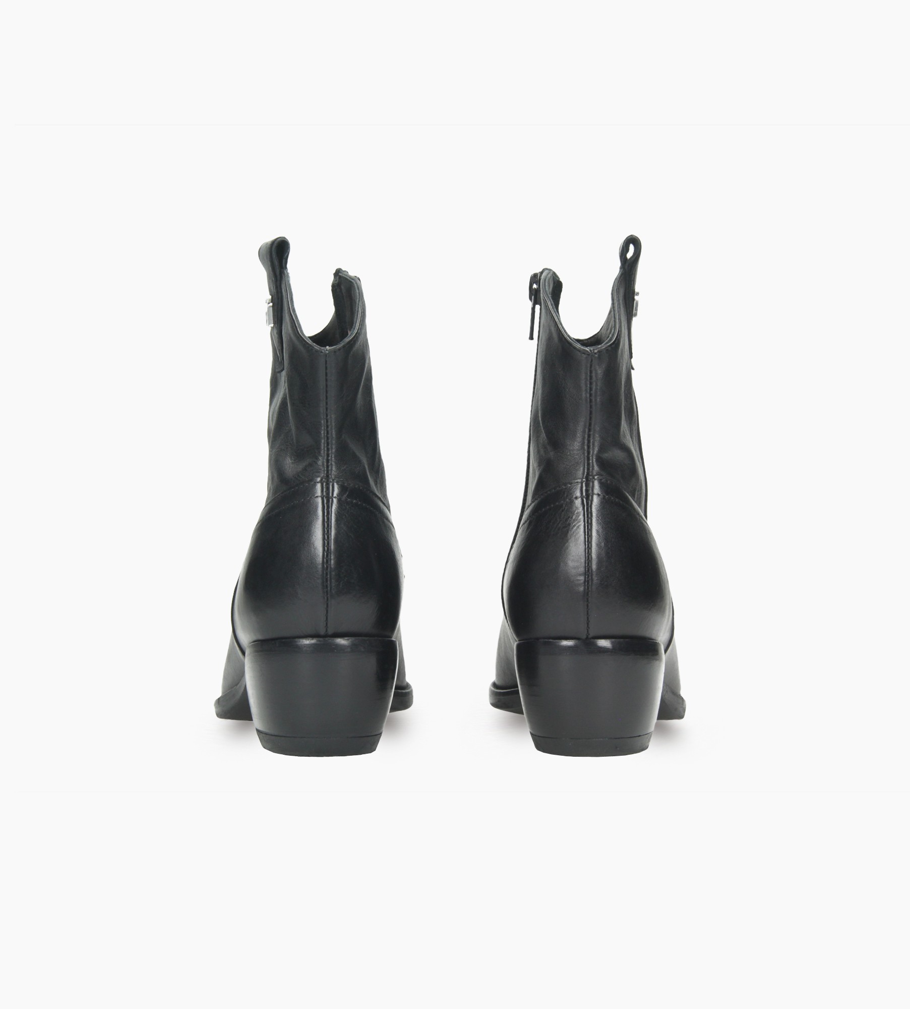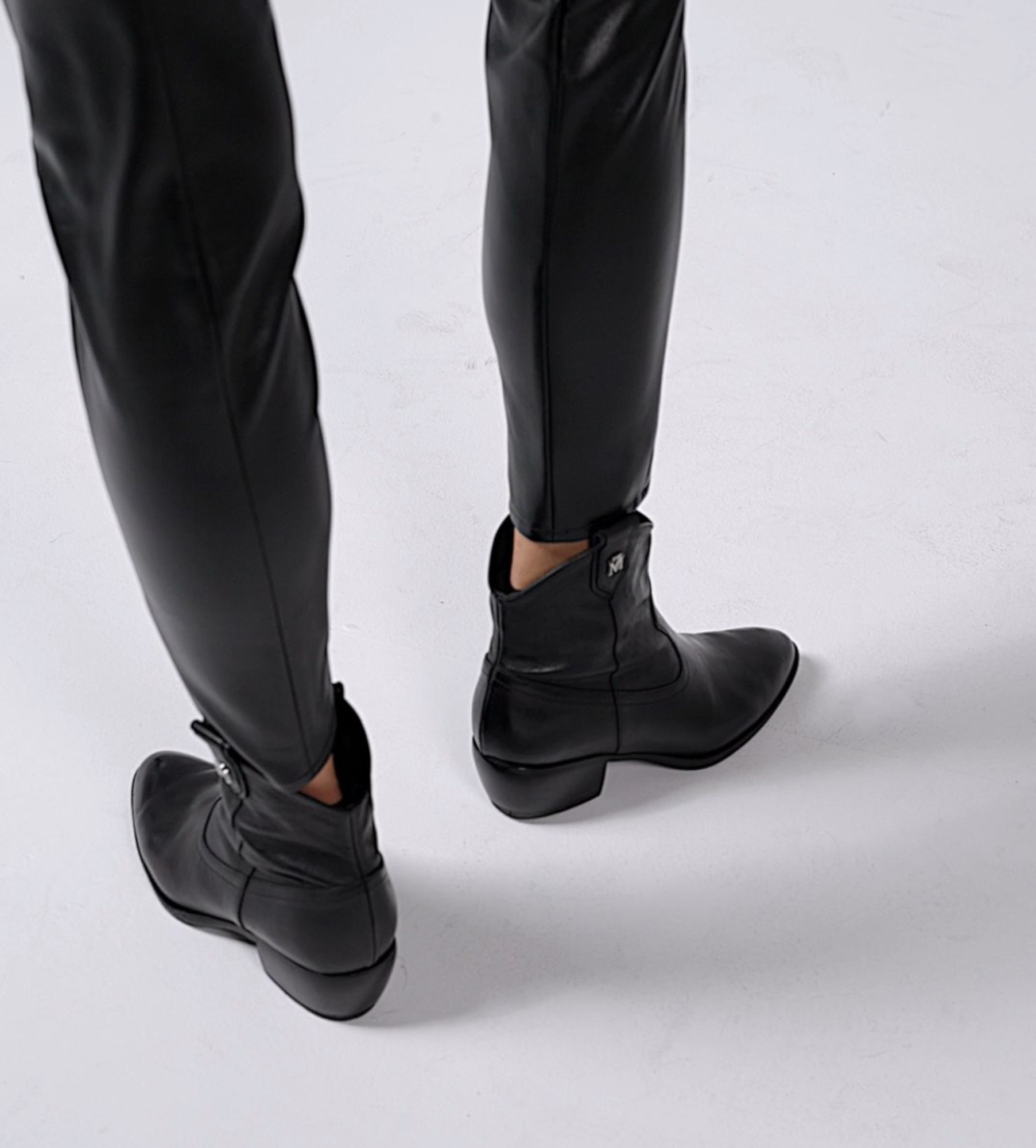 Czarne kowbojki damskie to stylowe obuwie, które idealnie łączy tradycyjny kowbojski wygląd z eleganckim, nowoczesnym akcentem. Wykonane z najwyższej jakości naturalnej skóry cielęcej, te kowbojki oferują wyjątkową trwałość i komfort noszenia. Głęboki czarny kolor nadaje im wyrafinowanego charakteru, który doskonale wpisuje się zarówno w codzienne, jak i bardziej wyszukane stylizacje. Subtelny, delikatny nit z logo firmy umieszczony na bocznej części buta dodaje dyskretnego charakteru i podkreśla markowy styl. Te minimalistyczne detale w połączeniu z klasyczną linią cholewki oraz stabilnym obcasem tworzą harmonijny, modny wygląd, który sprawdzi się w każdej sytuacji.
