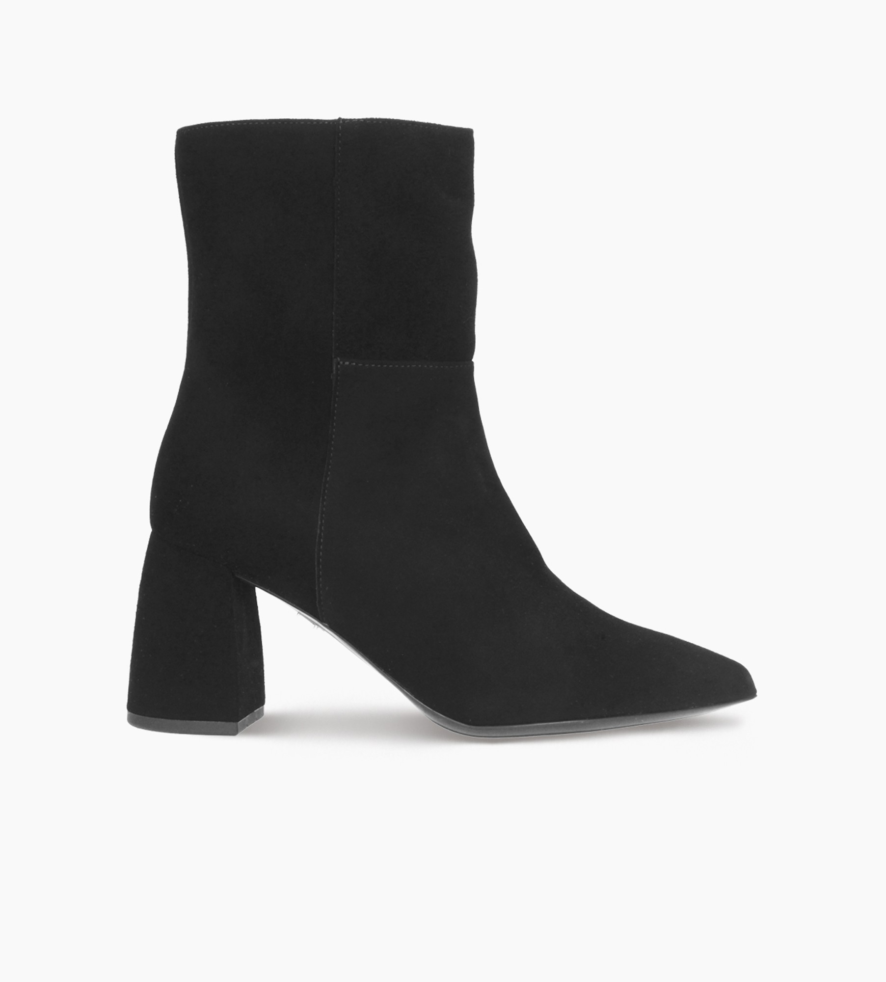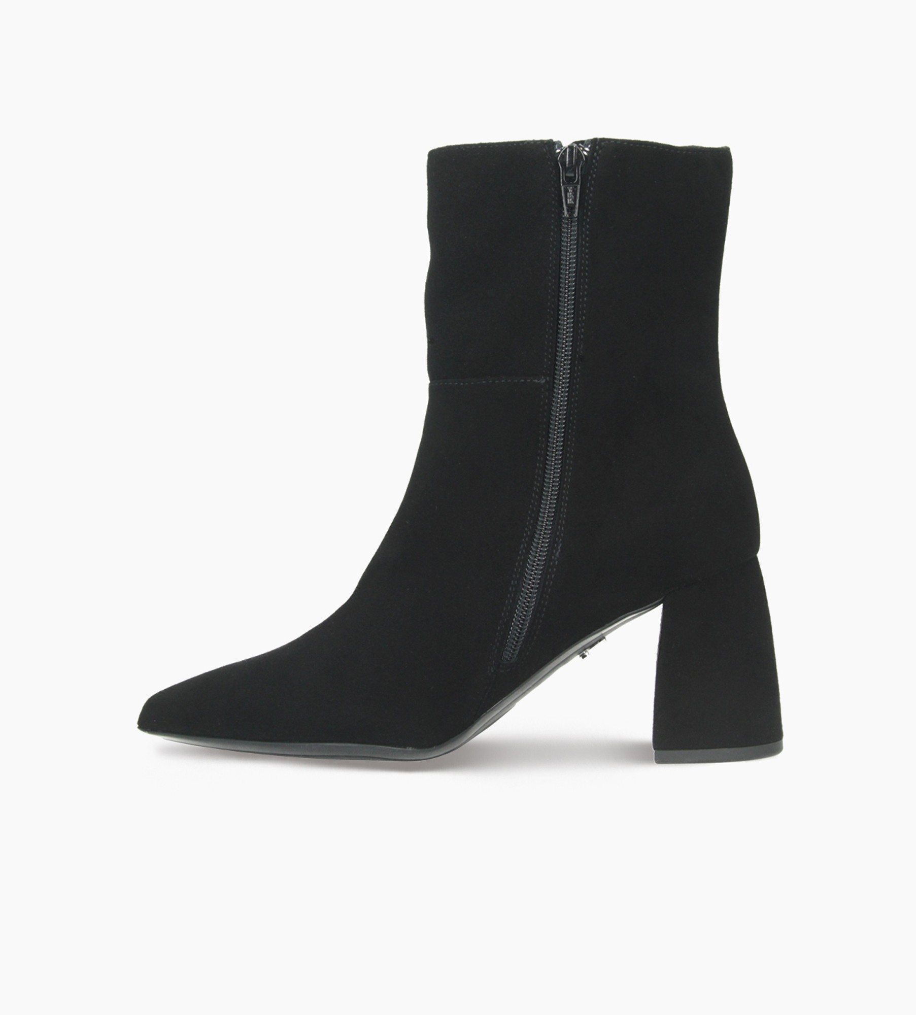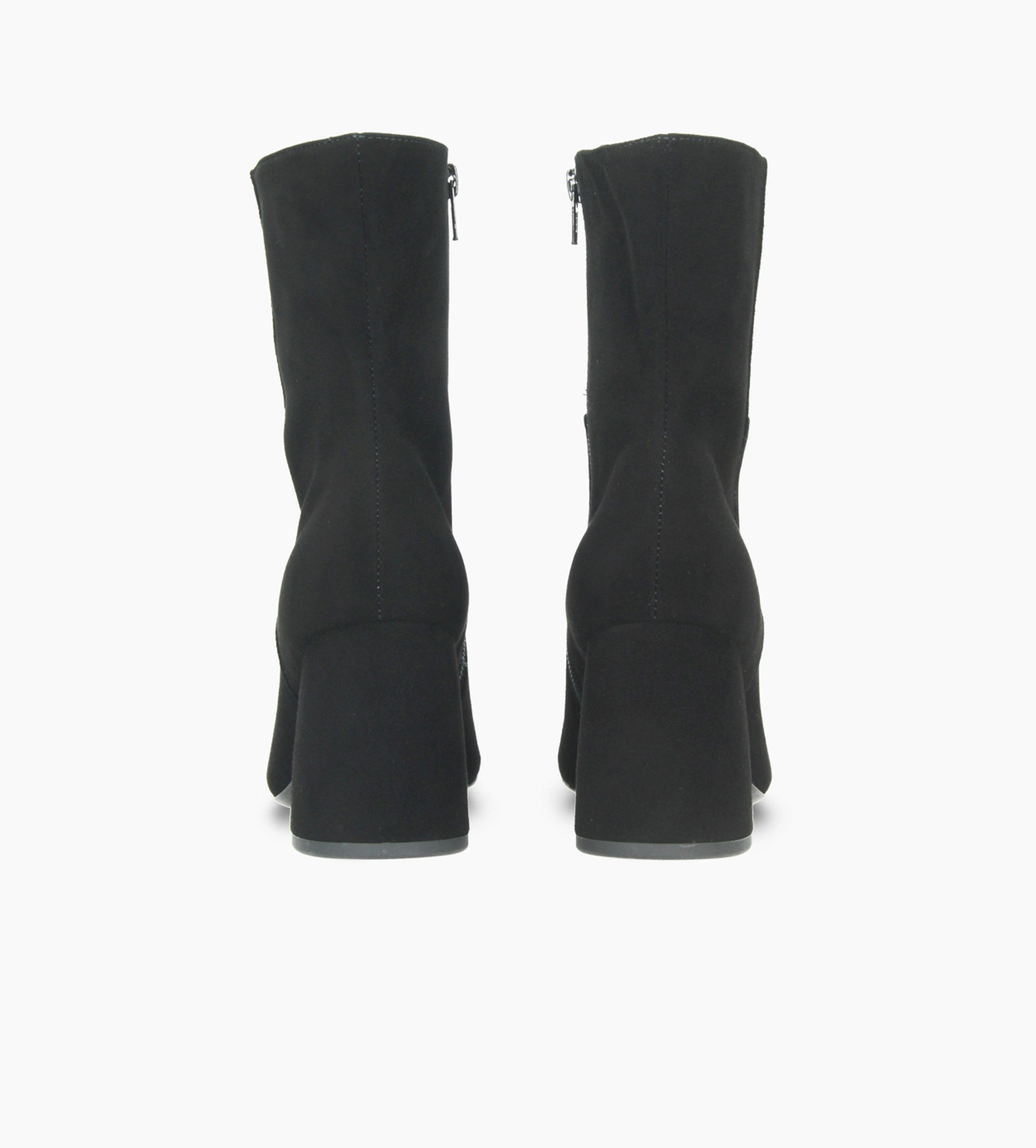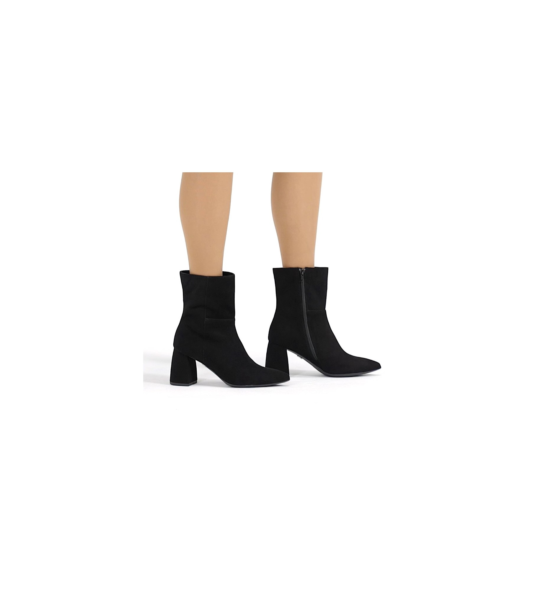 Czarne zamszowe botki na modnym, słupkowym obcasie to elegancka i funkcjonalna propozycja na chłodniejsze dni. Ich wygląd podkreśla miękka, matowa faktura zamszu, która nadaje butom subtelnej elegancji. Dzięki suwakowi umieszczonemu z boku, botki są łatwe do zakładania i zdejmowania, a modny słupkowy obcas zapewnia stabilność i wygodę podczas noszenia, dodając jednocześnie kilku centymetrów wysokości, co podkreśla sylwetkę. Wnętrze botków zostało wykończone miękkim welurowym ociepleniem, co gwarantuje ciepło i komfort noszenia, nawet w chłodniejsze jesienne i zimowe dni. Czarne botki zamszowe na słupkowym obcasie to wszechstronny element garderoby, który można z łatwością zestawić z wieloma stylizacjami.