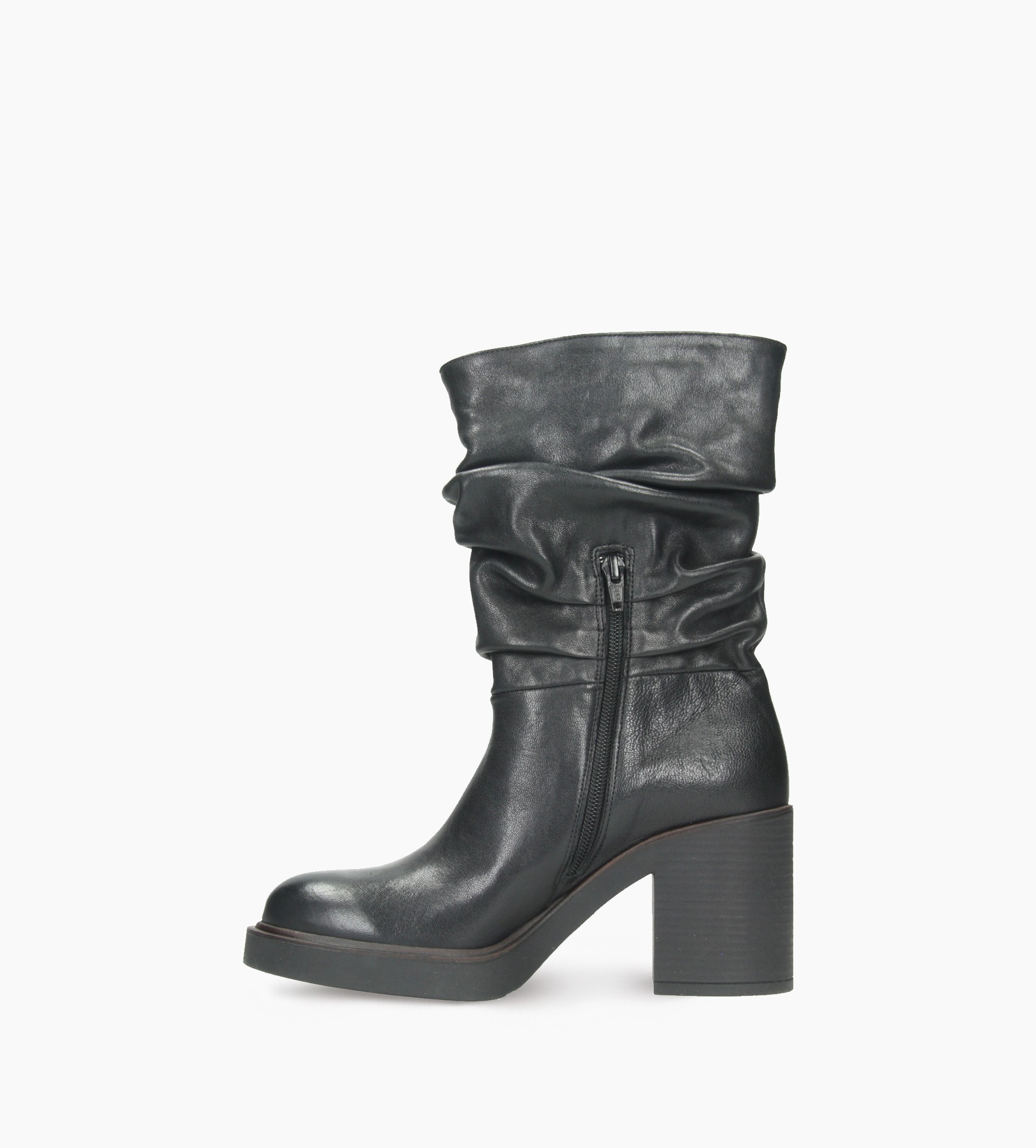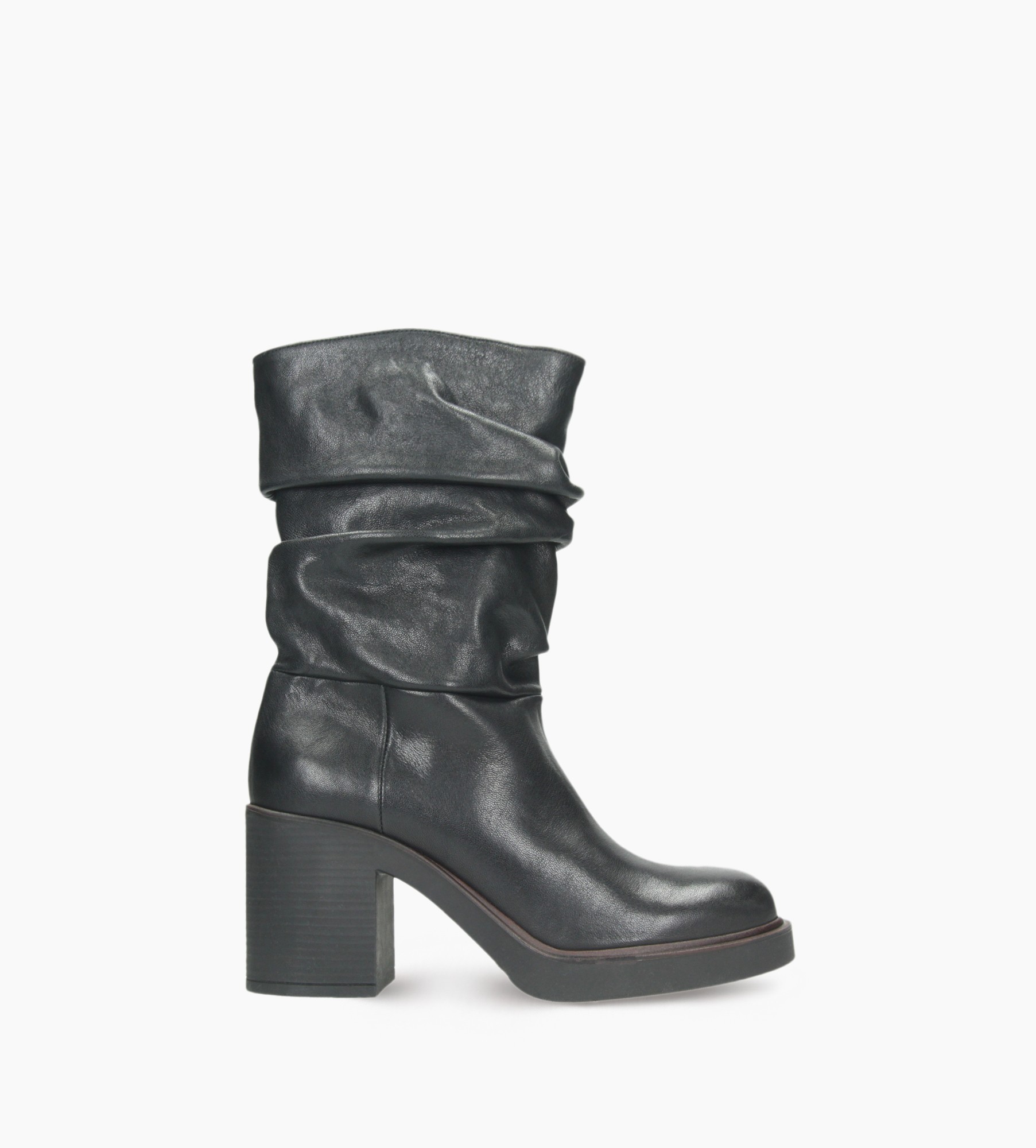Czarne botki damskie z naturalnej skóry licowej z marszczoną cholewką to stylowe i eleganckie obuwie dla kobiet ceniących wygodę i nowoczesny design. Wykonane z wysokiej jakości skóry, prezentują się luksusowo, a marszczona cholewka dodaje im modnego akcentu. Stabilny słupkowy obcas zapewnia komfort noszenia przez cały dzień, a dyskretny suwak ułatwia zakładanie. Te botki doskonale komponują się zarówno z codziennymi, jak i bardziej formalnymi stylizacjami, dodając im elegancji i charakteru. Idealny wybór na chłodniejsze dni, łączący funkcjonalność z klasycznym stylem.