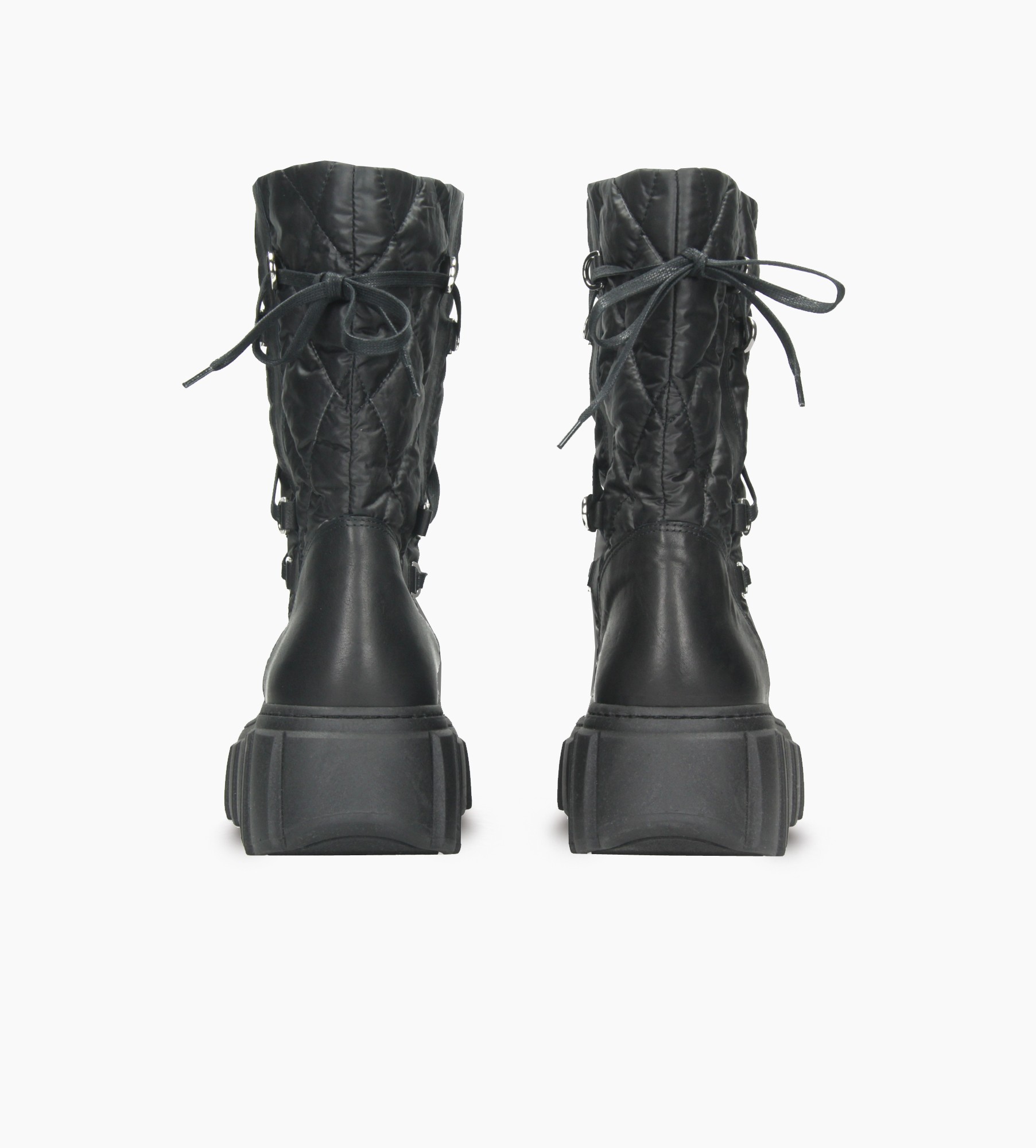 Czarne botki połącz z dopasowanymi czarnymi jeansami i grubym, beżowym swetrem oversize. Na wierzch zarzuć krótki, pikowany płaszcz w odcieniu oliwkowym, który doda charakteru. Uzupełnij look ciepłą czapką i dużą, skórzaną torbą typu shopper, aby stworzyć stylowy i funkcjonalny zestaw na jesień i zimę.