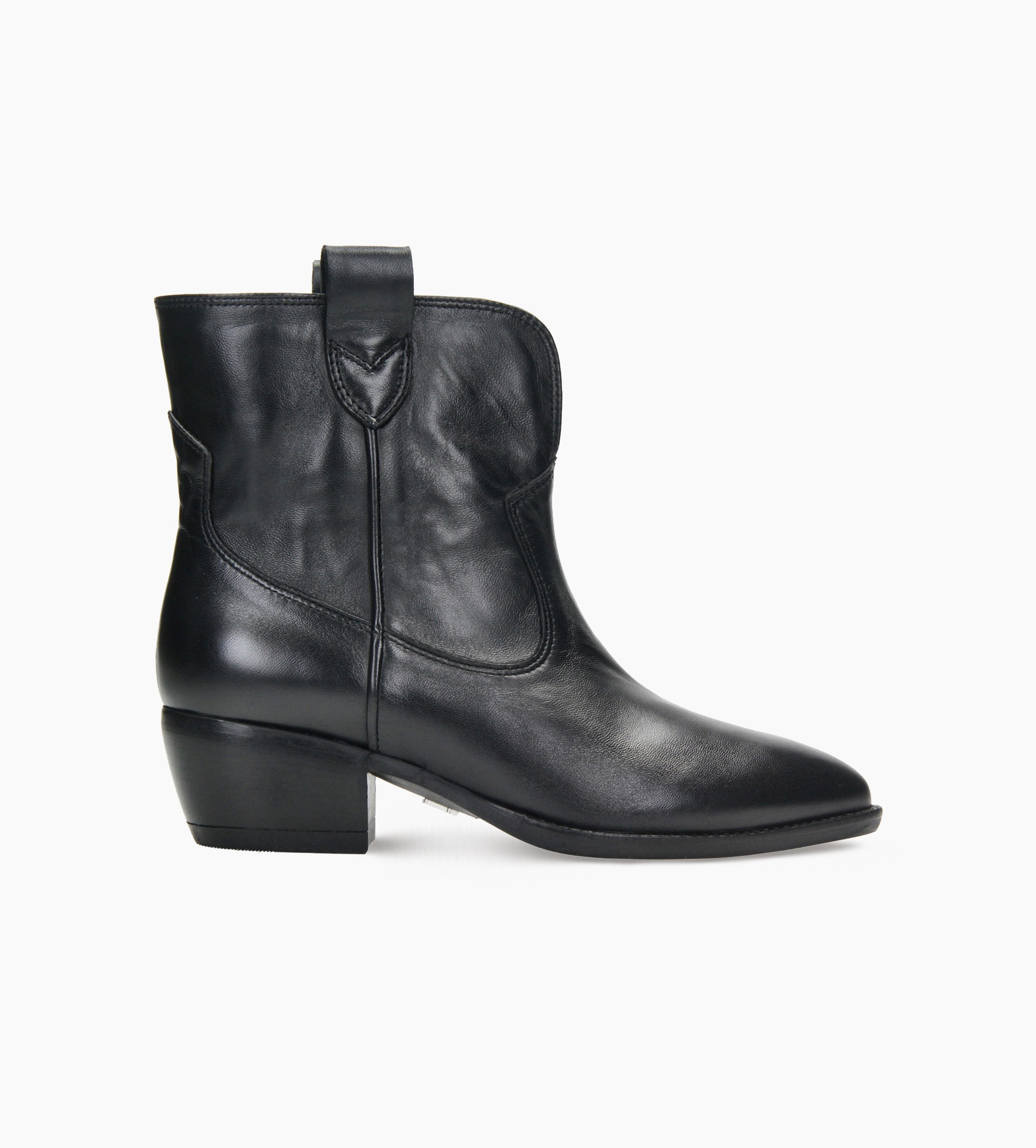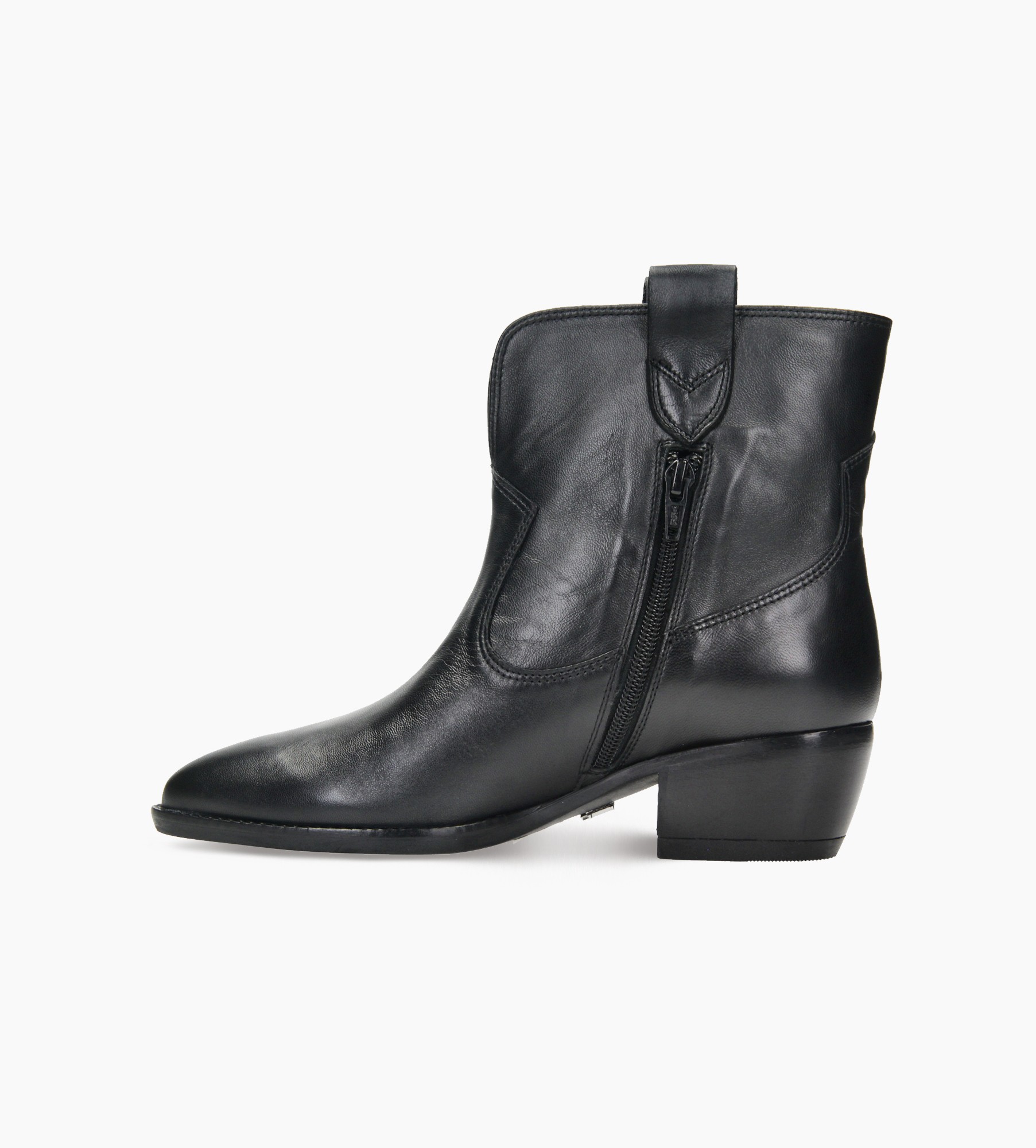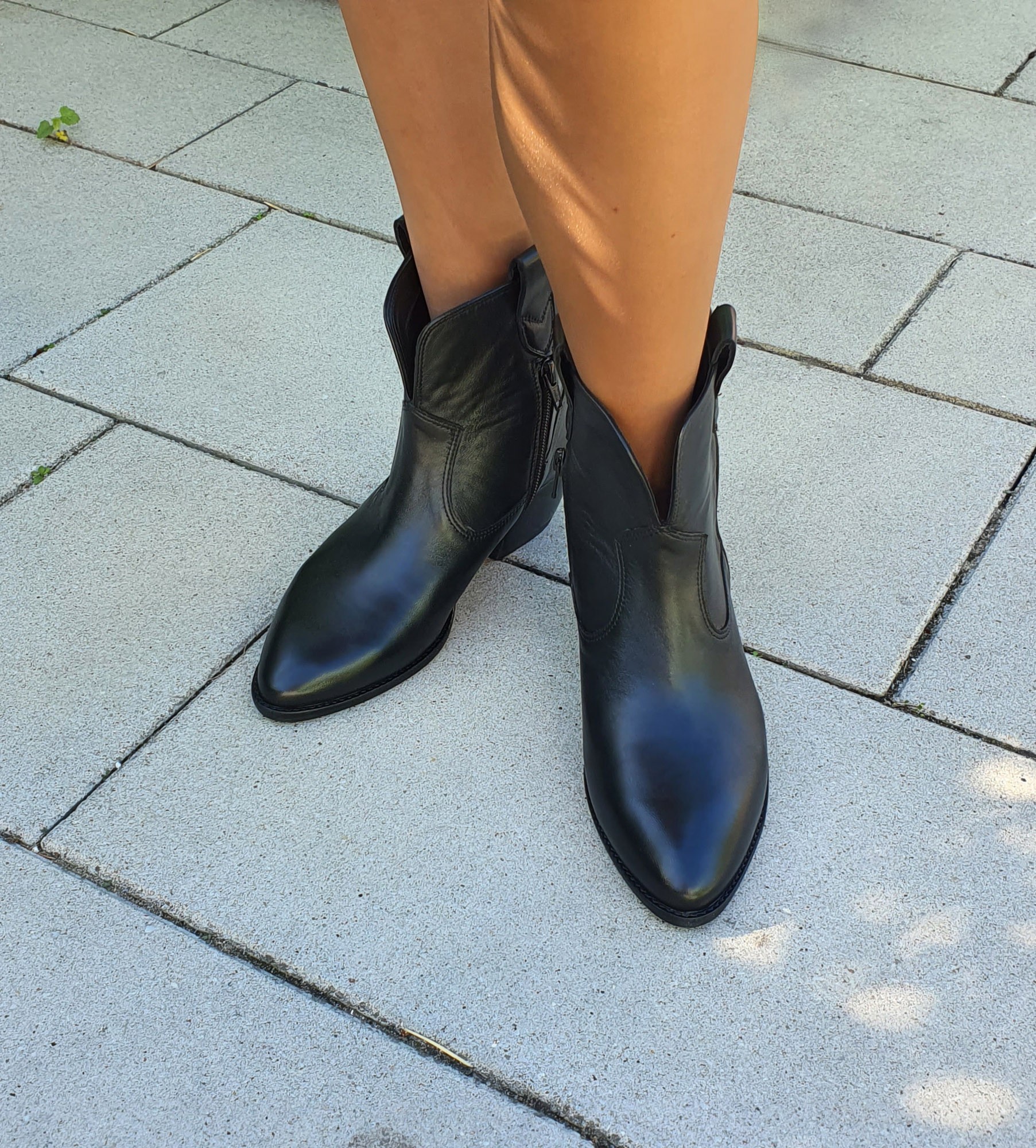 Czarne botki damskie to wyjątkowe połączenie klasycznego stylu kowbojskiego i miejskiej elegancji. Wykonane z wysokiej jakości skóry naturalnej, z wnętrzem wyściełanym miękką skórą jagnięcą, zapewniają komfort noszenia i trwałość na lata. Zamek umieszczony z boku ułatwia szybkie zakładanie, a nieco szersza cholewka z ozdobnymi, skórzanymi paskami dodaje im charakterystycznego, westernowego sznytu. Wyraźne przeszycia i miękko zaokrąglony nosek podkreślają kobiecą linię stopy, a stabilny obcas pozwala zachować wygodę przez cały dzień.