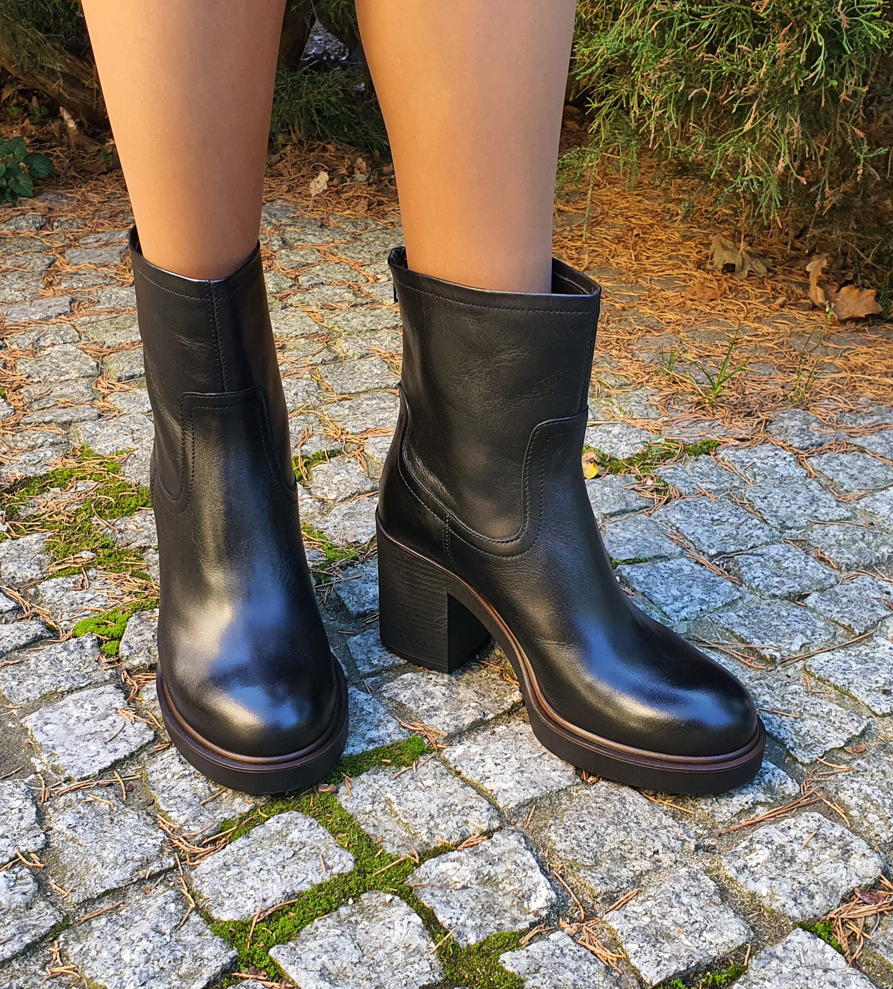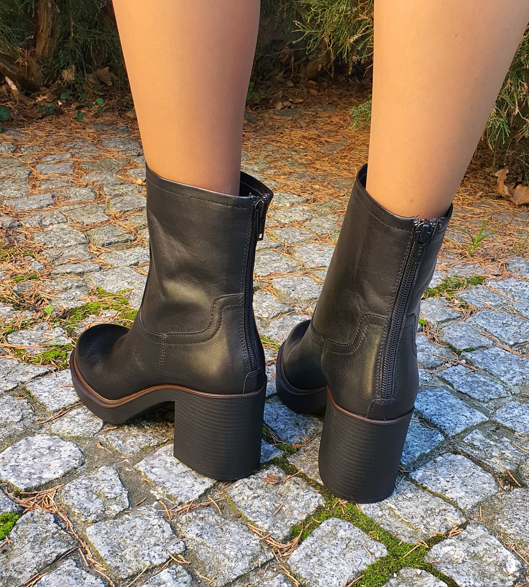 Te stylowe botki to idealne połączenie kobiecego charakteru i codziennej funkcjonalności. Wykonane z naturalnej skóry cielęcej, zachwycają elegancką formą oraz perfekcyjnym wykończeniem. Stabilny, szeroki obcas o nowoczesnej linii i lekka platforma zapewniają komfort nawet przy wielogodzinnym noszeniu, a tylny suwak gwarantuje wygodne zakładanie i dopasowanie do stopy. Delikatnie podwyższona cholewka pięknie wysmukla nogę, a minimalistyczny fason sprawia, że model pasuje zarówno do eleganckich płaszczy, jak i codziennych zestawień z jeansami. To botki, które z łatwością wpisują się w styl współczesnej, aktywnej kobiety – niezawodne w każdej jesienno-zimowej stylizacji.