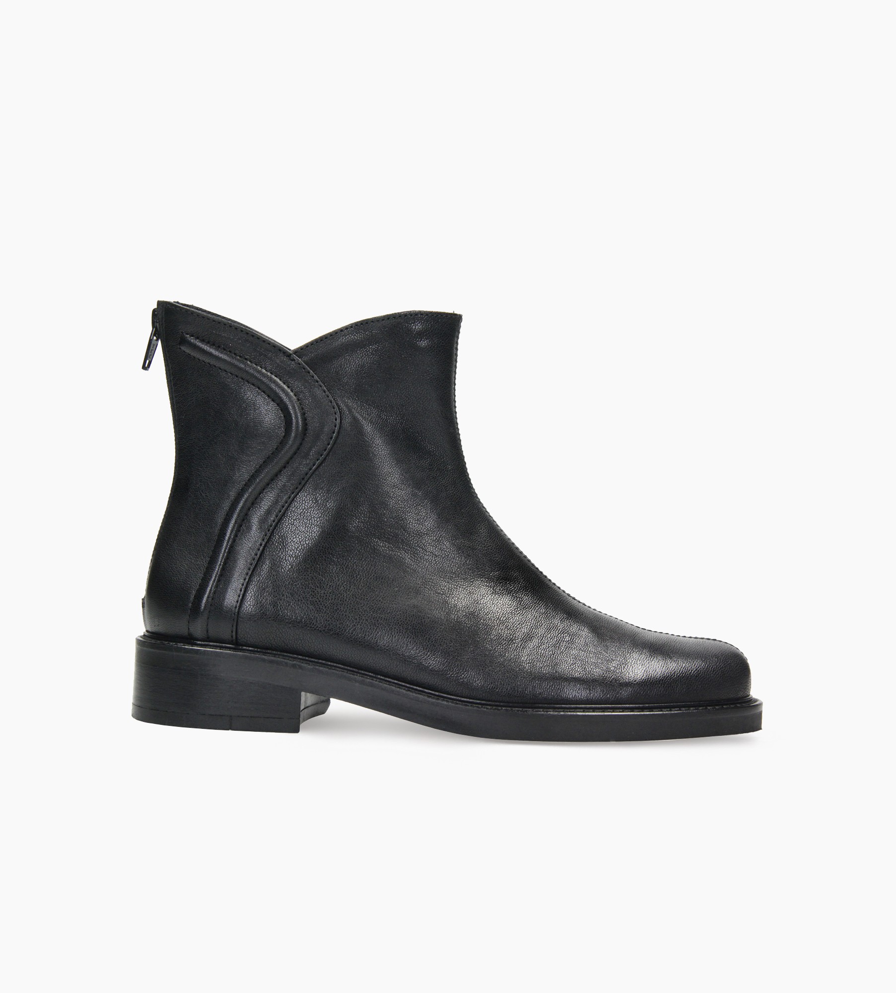 Eleganckie, czarne botki damskie wykonane z wysokiej jakości naturalnej skóry licowej. Ich wyjątkowy charakter podkreślają ozdobne, pogrubione przeszycia wzdłuż boków cholewki, które nadają całości subtelnej, a zarazem wyrazistej formy. Zapięcie z tyłu na suwak zapewnia wygodne zakładanie i doskonale wpisuje się w nowoczesny, minimalistyczny design. Niewysoki, stabilny obcas gwarantuje komfort noszenia przez cały dzień, a ponadczasowa sylwetka sprawia, że buty świetnie sprawdzą się zarówno w codziennych, jak i bardziej eleganckich stylizacjach.