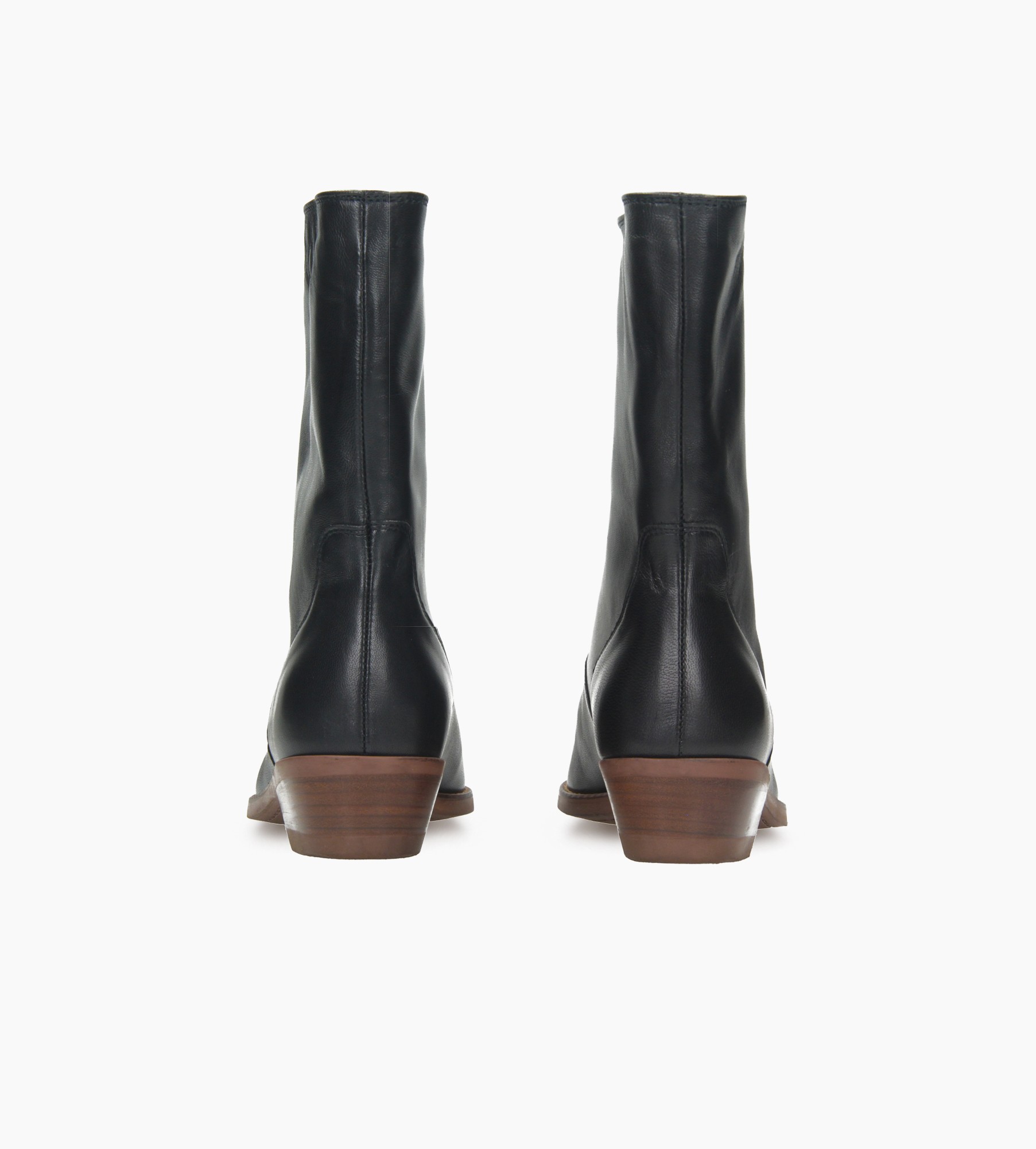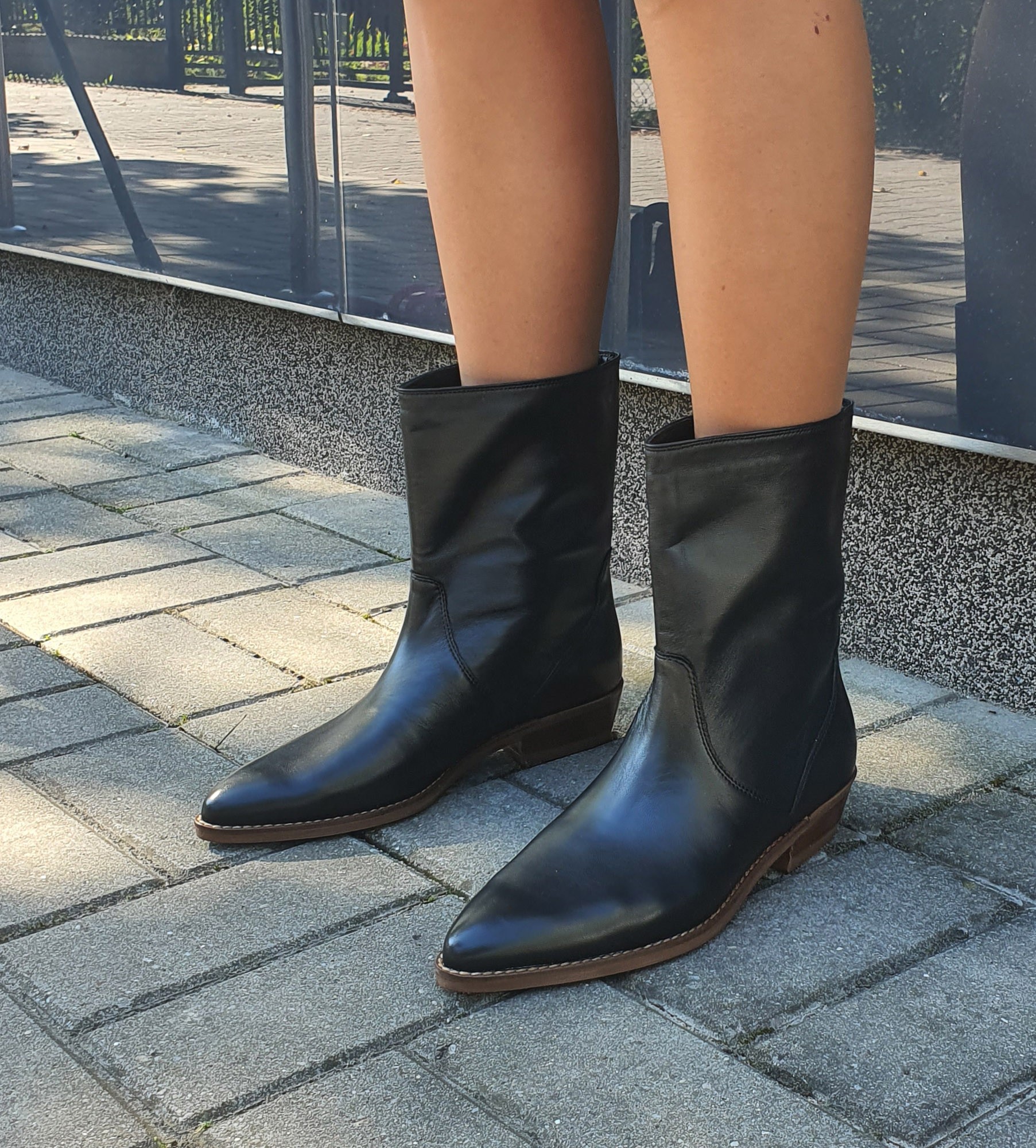 Ponadczasowe botki damskie to idealne połączenie klasycznej elegancji i codziennej wygody. Wykonane z naturalnej skóry licowej w głębokim odcieniu czerni, zachwycają prostą, wsuwaną formą oraz kontrastującą podeszwą w kolorze jasnego drewna, która dodaje całości subtelnego, modowego akcentu. Wnętrze wykończone delikatną skórą jagnięcą zapewnia komfort noszenia przez cały dzień – nawet bez dodatkowego ocieplenia. Dzięki klasycznemu fasonowi i niskiemu obcasowi, model ten sprawdzi się zarówno w miejskich stylizacjach, jak i jako uzupełnienie bardziej casualowych, jesiennych zestawów.