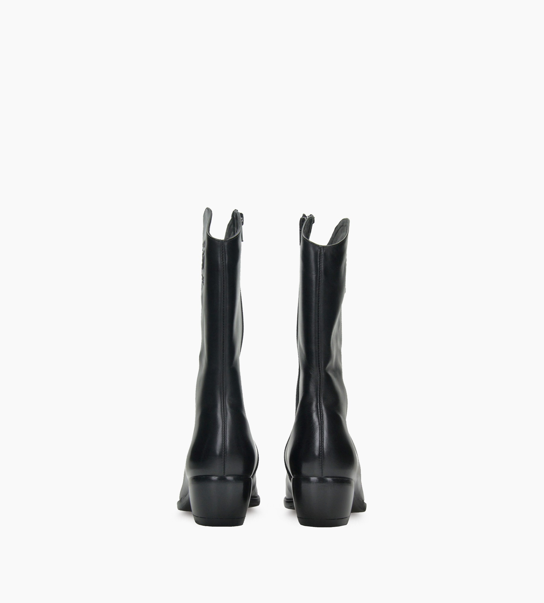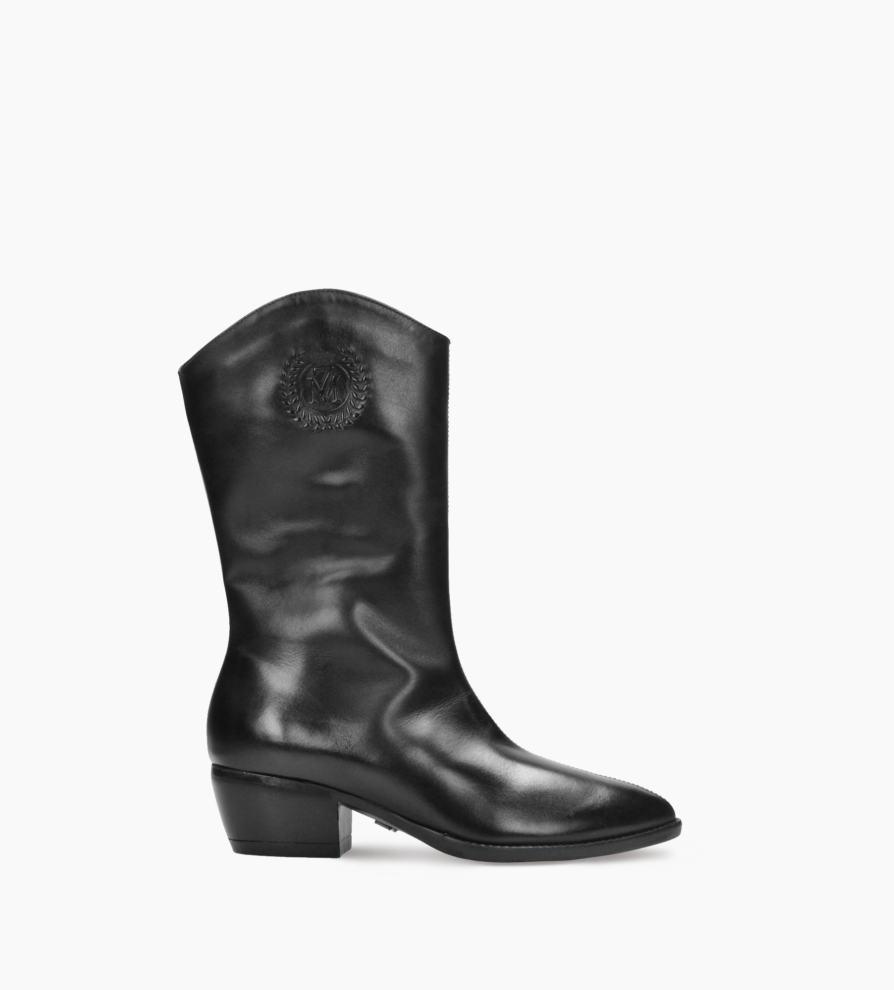 Minimalistyczna cholewka o wydłużonej linii pięknie układa się na nodze, a szerokie, zaokrąglone wykończenie cholewki podkreśla kowbojski styl w subtelnej, nowoczesnej interpretacji. Stabilny, klockowaty obcas gwarantuje wygodę i ponadczasowy wygląd, a wytłaczane logo marki nadaje butom ekskluzywny charakter i rozpoznawalny detal.