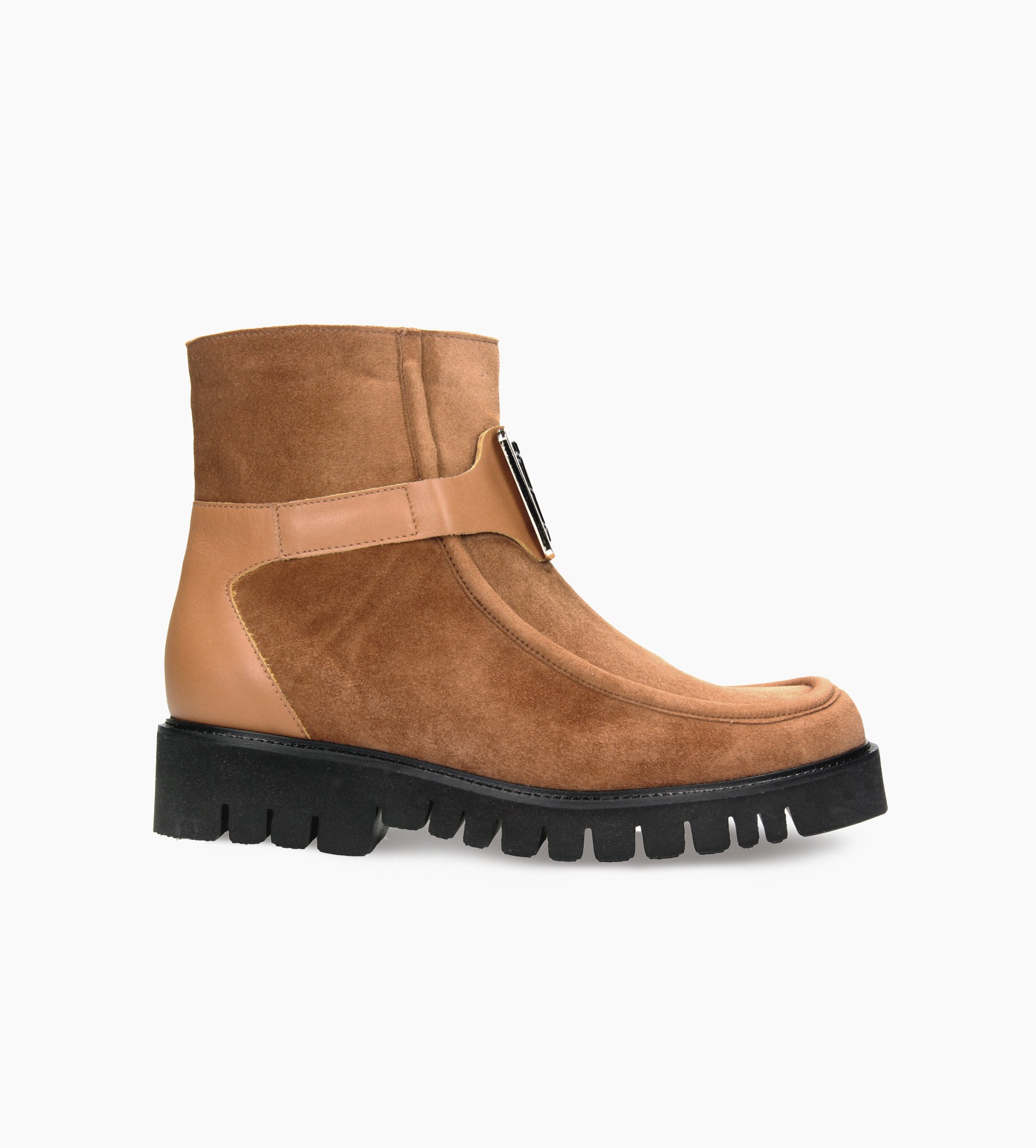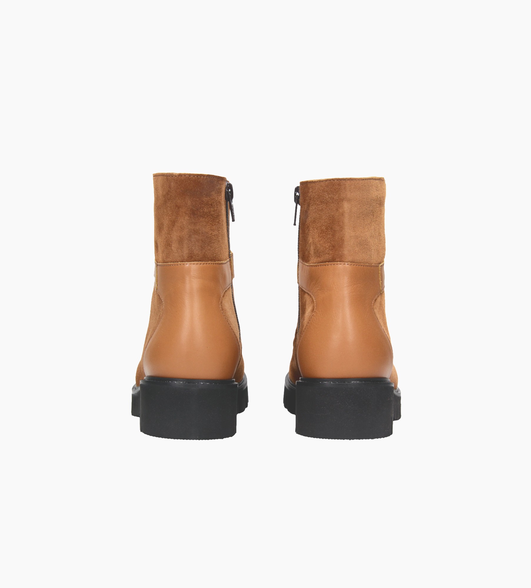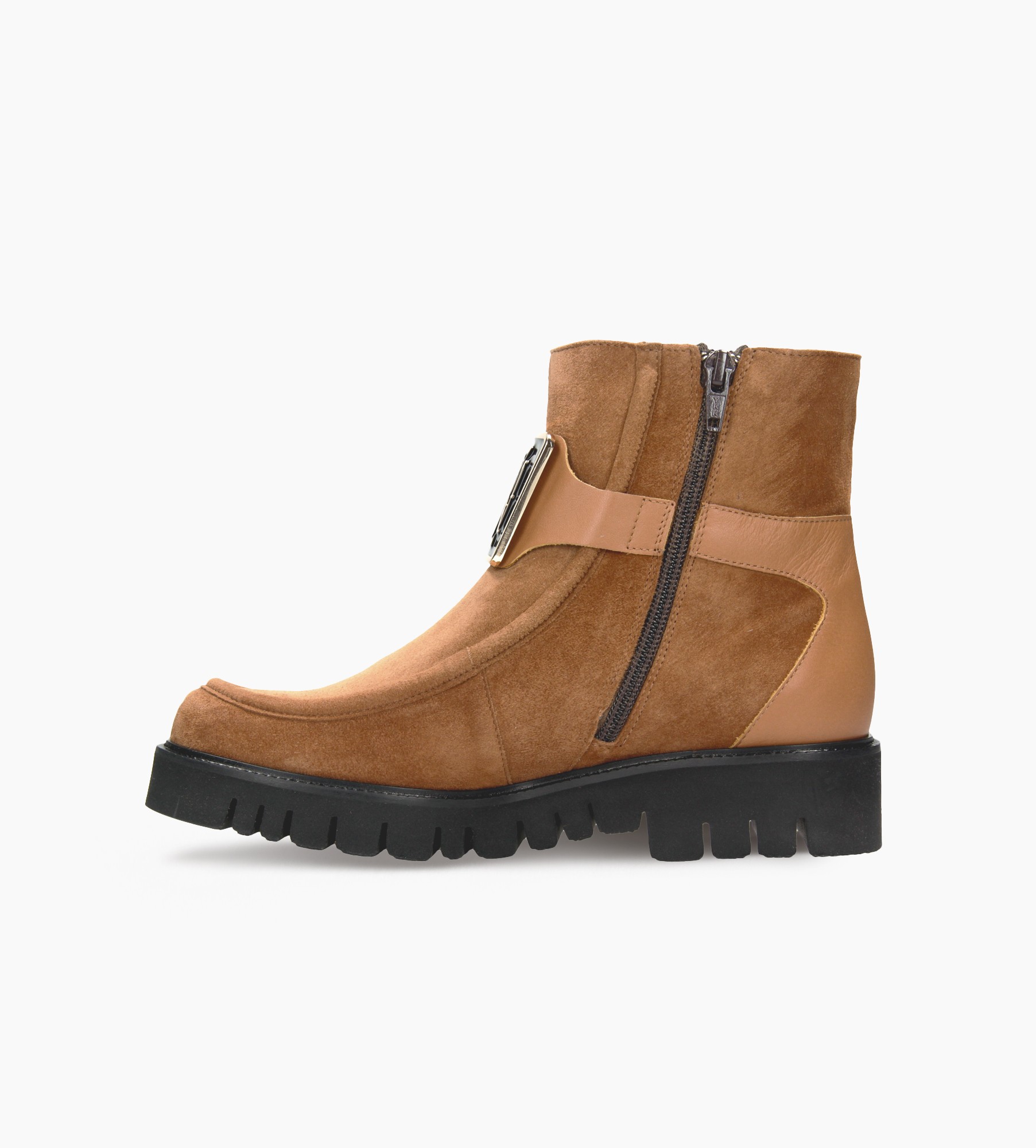 Koniakowe botki damskie to eleganckie i nowoczesne obuwie, które wyróżnia się subtelną dekoracją w postaci monogramu firmy 7mil, dodającą im wyjątkowego charakteru. Wykonane z wysokiej jakości skóry zamszowej, te botki łączą w sobie klasyczny design z nowoczesnymi detalami, dzięki czemu doskonale sprawdzą się w różnych stylizacjach, od codziennych po bardziej formalne. Monogram 7mil, umieszczony na zewnętrznej stronie botków, nadaje im unikalnego wyglądu, który przyciąga uwagę, jednocześnie podkreślając prestiż marki. Botki te mają smukły kształt, stabilny obcas i wygodną wkładkę, co gwarantuje komfort noszenia przez cały dzień. Zapięcie na zamek po wewnętrznej stronie ułatwia zakładanie i zdejmowanie.