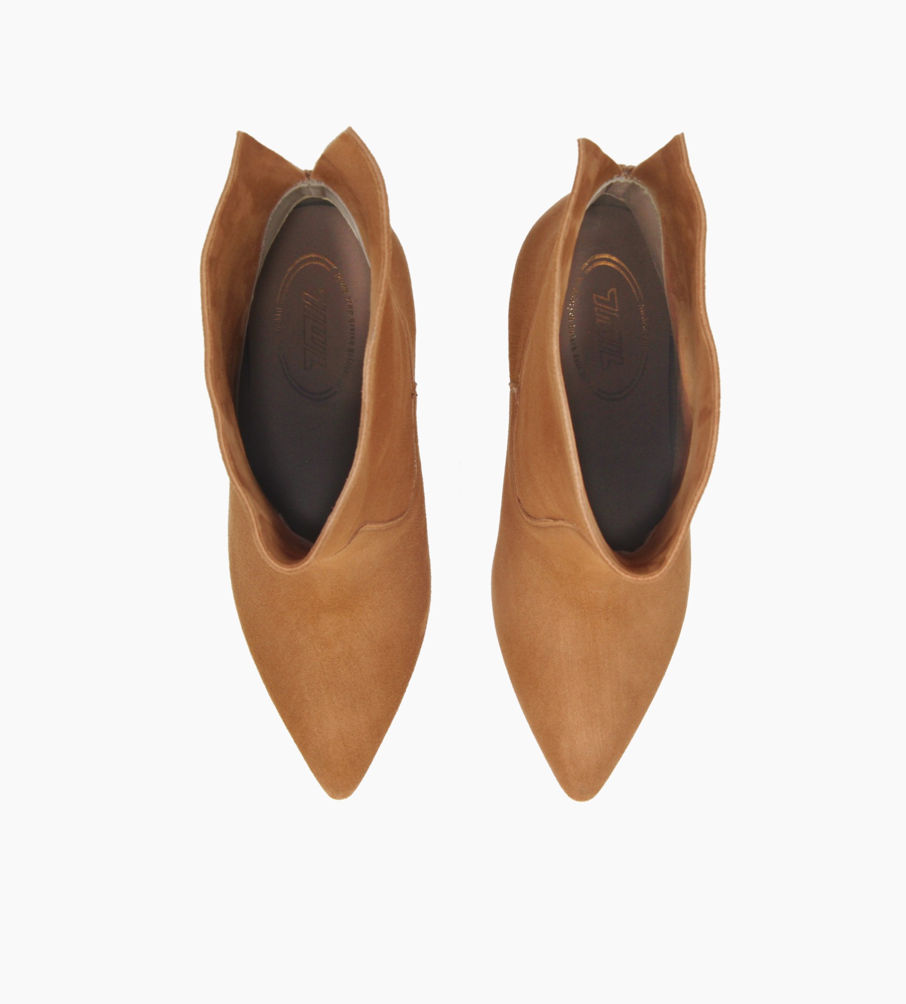 Koniakowe botki damskie to elegancja w nowoczesnym wydaniu, idealna na chłodniejsze dni. Wykonane z wysokiej jakości skóry naturalnej, charakteryzują się klasycznym odcieniem koniaku, który dodaje stylizacji ciepła i wyrafinowania. Botki są wsuwane, co ułatwia ich zakładanie, a odstająca cholewka nadaje im modnego, swobodnego charakteru. Stabilny obcas zapewnia komfort noszenia przez cały dzień, a subtelne detale podkreślają ich unikalny design.
