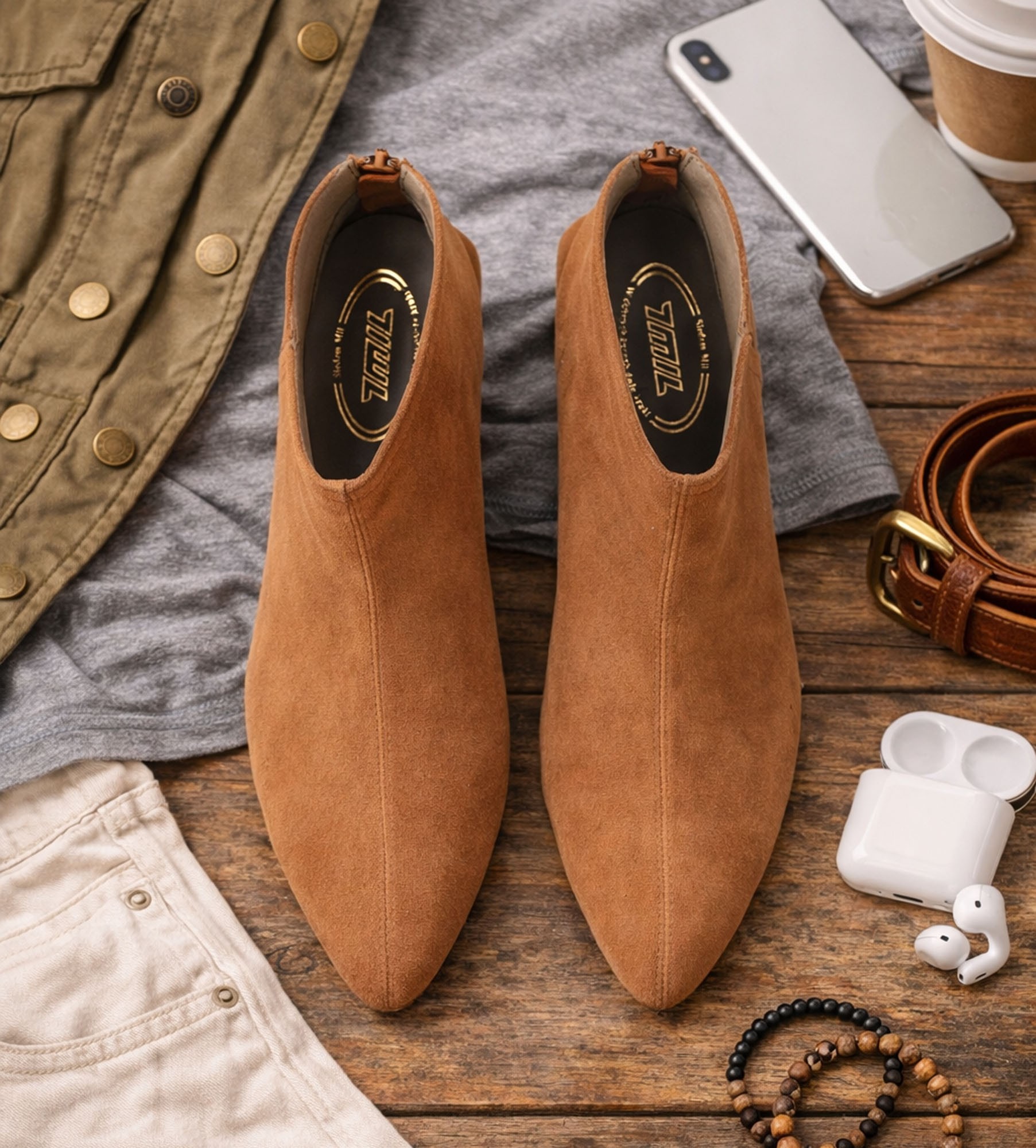 Koniakowe botki damskie wykonane z wysokiej jakości naturalnej skóry zamszowej to klasyka w kobiecym, subtelnym wydaniu. Ich elegancka forma, smukły nosek i niski, stabilny obcas sprawiają, że doskonale wpisują się zarówno w codzienne, jak i bardziej formalne stylizacje. Zapięcie na zamek umieszczone z tyłu cholewki zapewnia wygodę zakładania i dodatkowo podkreśla minimalistyczny charakter.