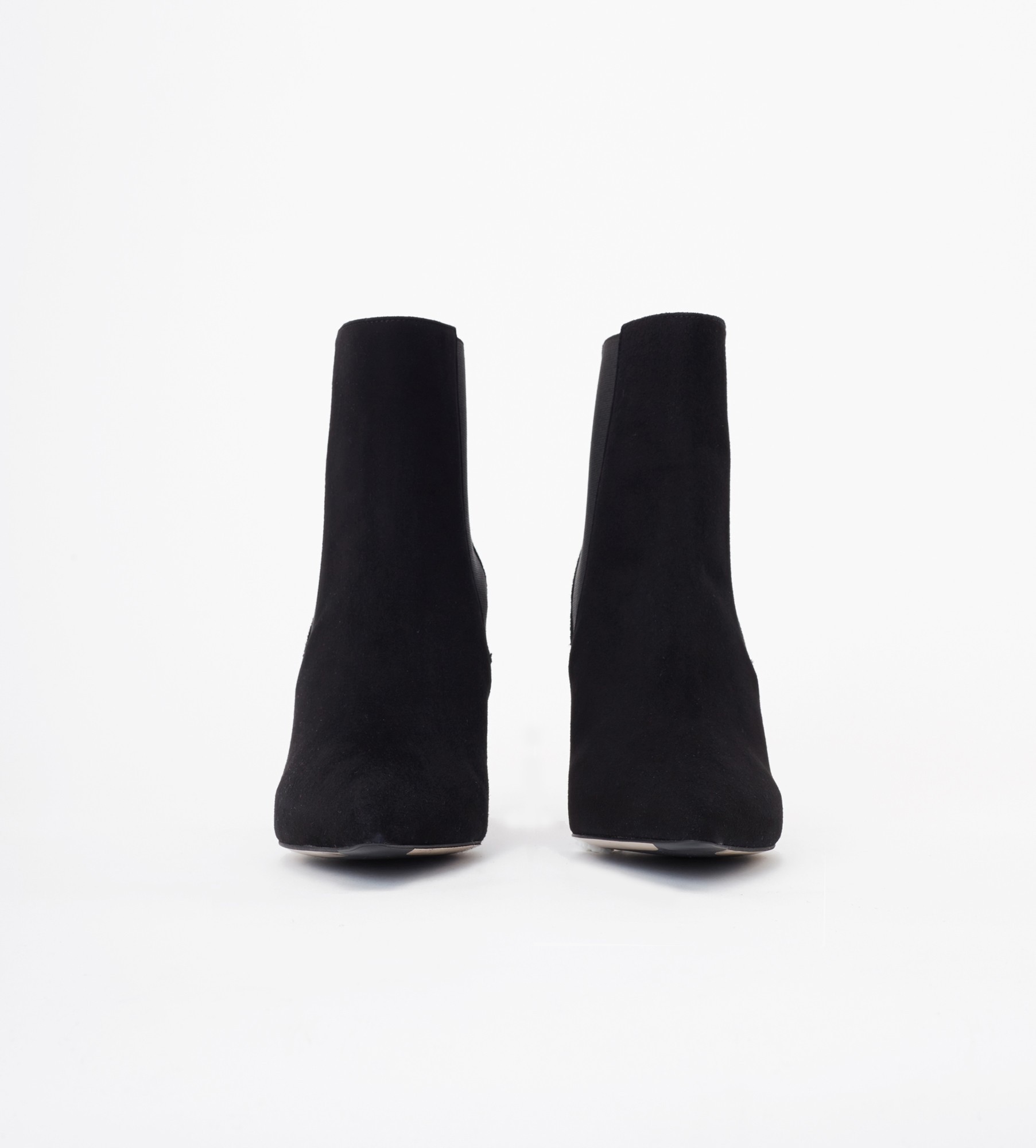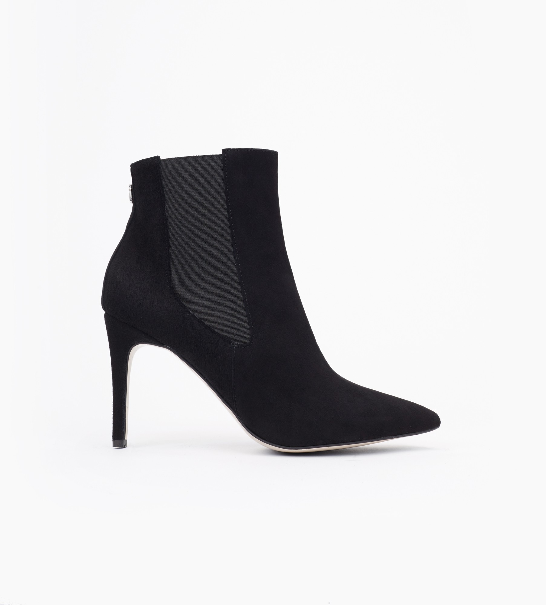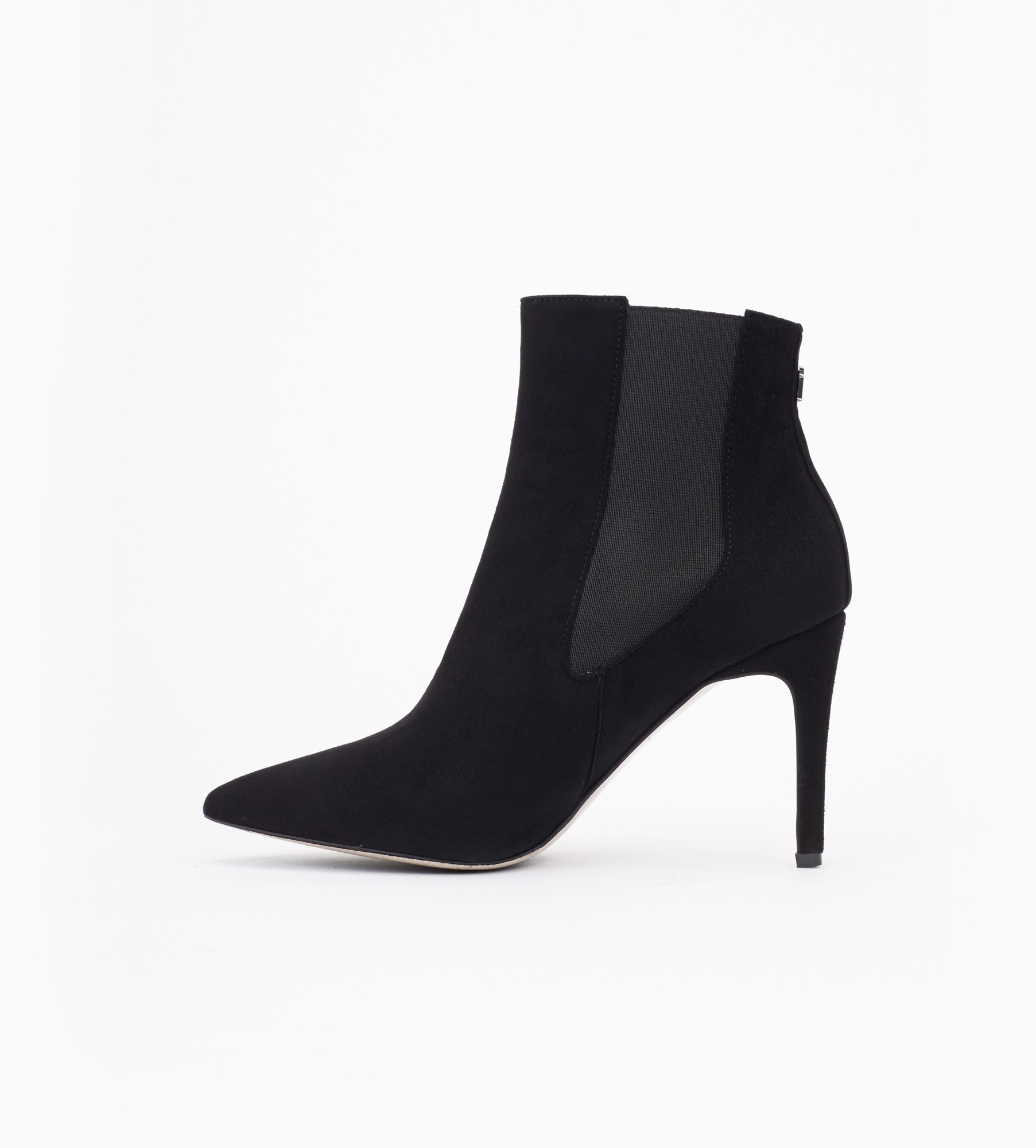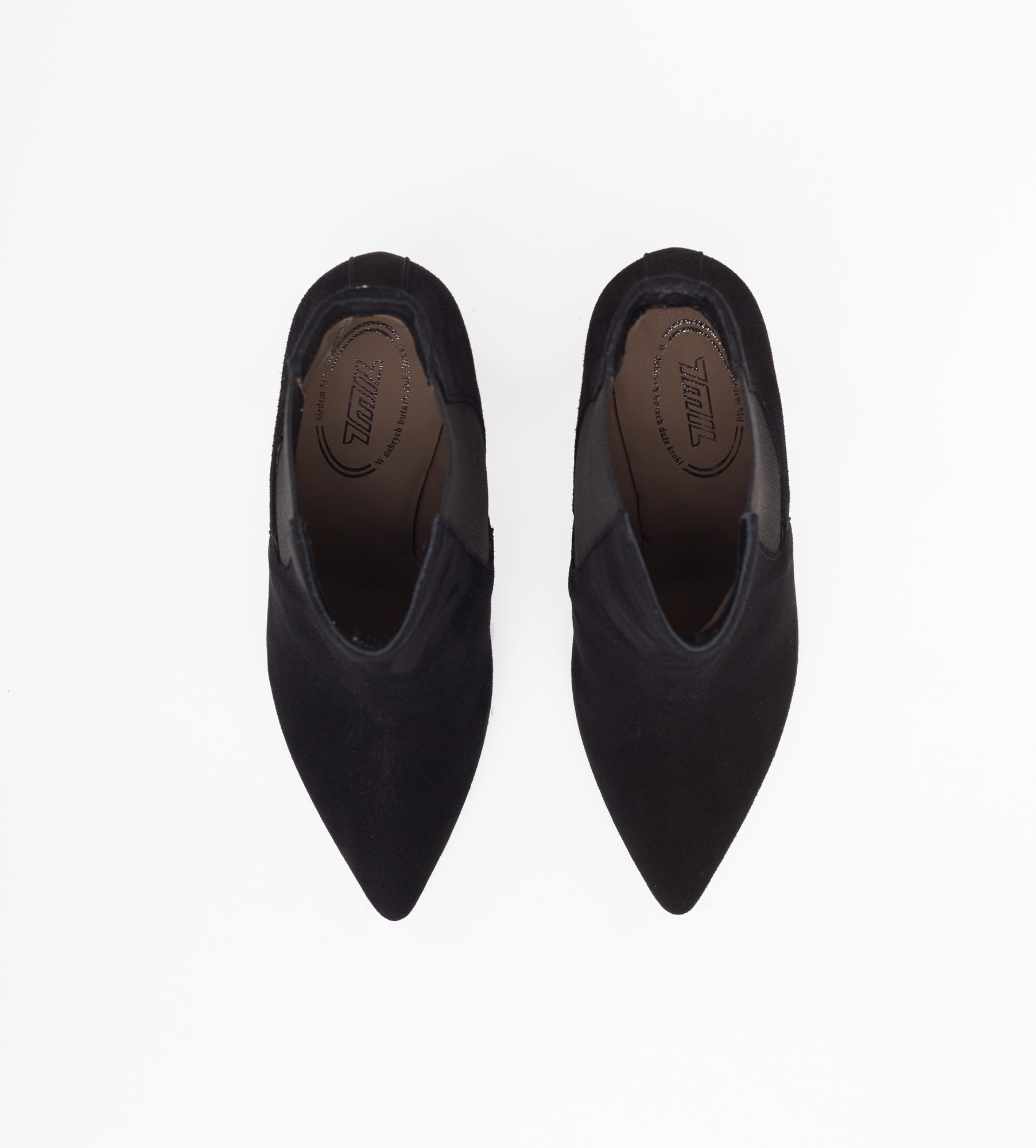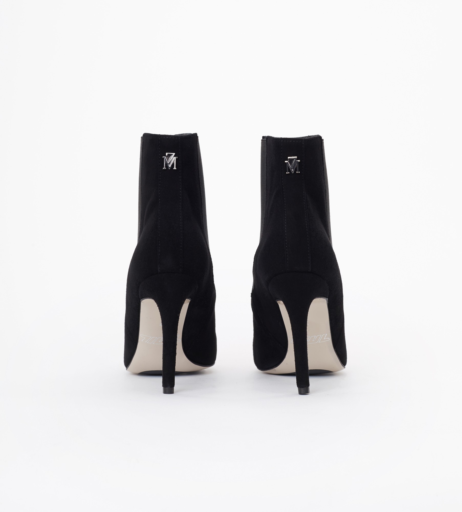 Czarne sztyblety damskie to eleganckie i klasyczne buty wykonane z naturalnej skóry zamszowej. Posiadają elastyczne gumki po bokach, co ułatwia zakładanie, oraz miękką, skórzaną wkładkę zapewniającą komfort noszenia. Obcas o wysokości 10 cm oraz całkowita wysokość buta dodają elegancji i wydłużają sylwetkę. Te stylowe sztyblety są idealne zarówno na co dzień, jak i na bardziej formalne okazje, łącząc funkcjonalność z wyrafinowanym wyglądem.