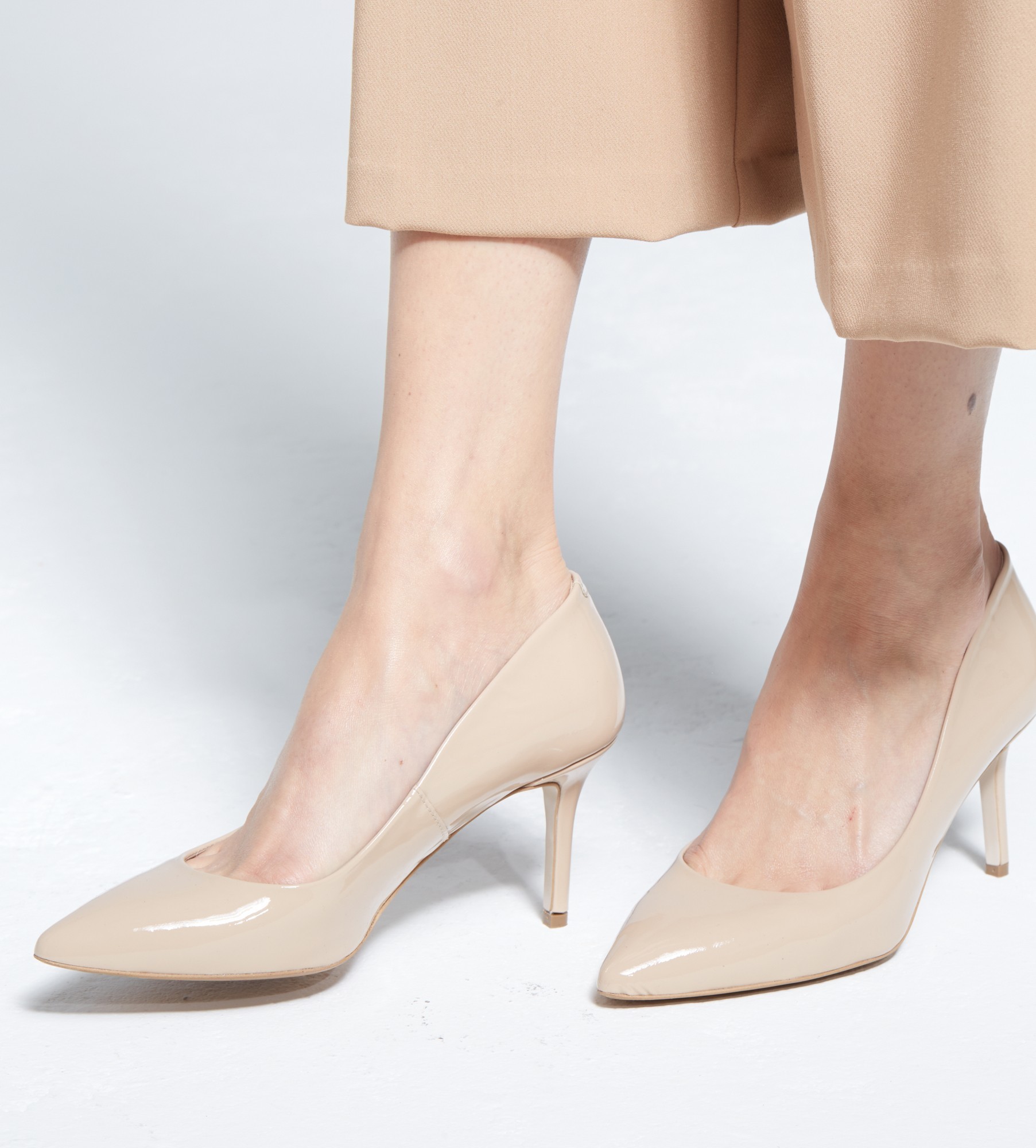 Eleganckie, klasyczne czółenka na szpilce w ponadczasowym beżowym kolorze z naturalnej skóry lakierowanej, idealne dla każdej kobiety ceniącej sobie styl i wygodę. Wnętrze buta oraz wkładka wykonane są z miękkiej, naturalnej skóry jagnięcej, co gwarantuje niezrównany komfort dla stóp przez cały dzień. Wysokość obcasa wynosi 8 cm, co dodaje elegancji i podkreśla sylwetkę. Szpilki łączą klasykę z nowoczesnym akcentem, będąc idealnym wyborem na każdą okazję.