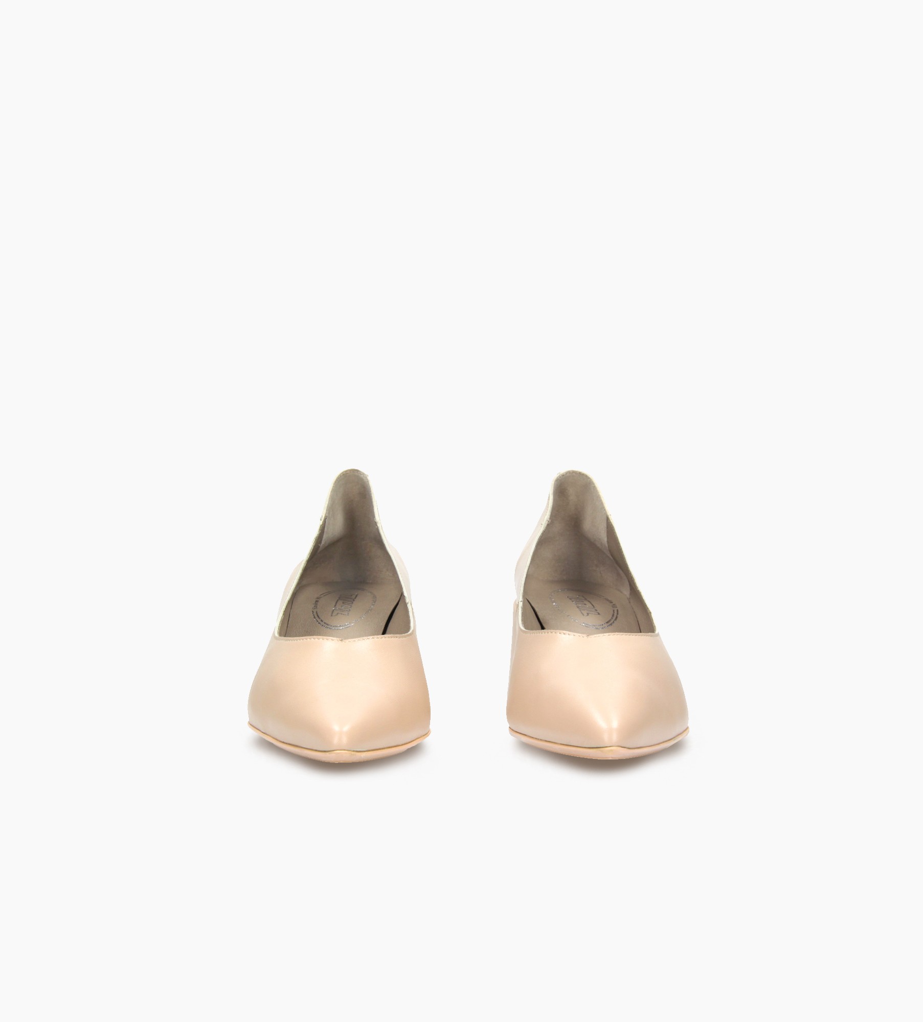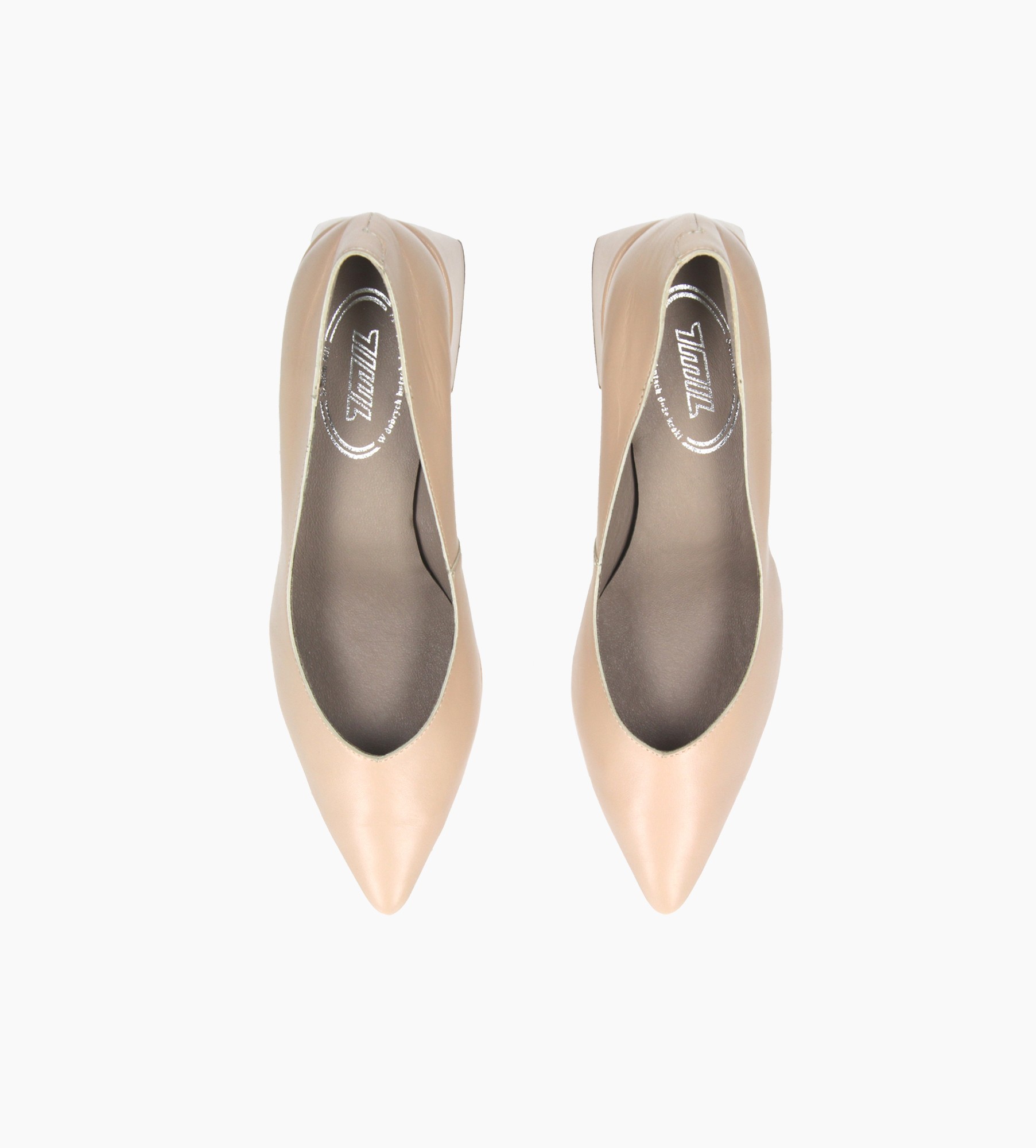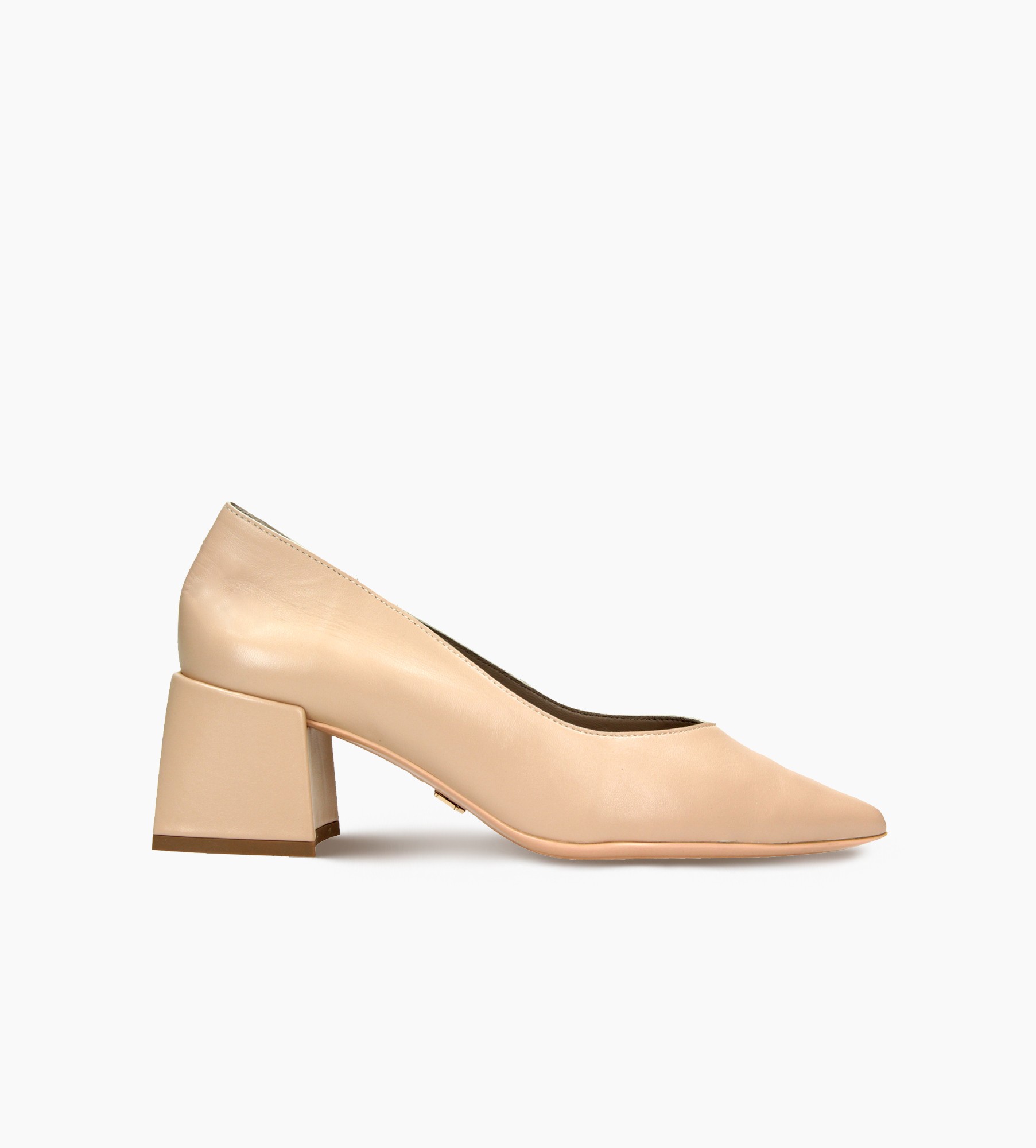 Beżowe czółenka damskie wykonane z wysokiej jakości naturalnej skóry licowej posiadają szeroki stabilny obcas, oraz starannie wyprofilowaną cholewkę. Ich minimalistyczna stylistyka oraz neutralna kolorystyka przypadnie od gustu miłośniczkom klasycznej elegancji. Prezentowany model nie tylko wygląda zgrabnie i estetyczne, ale co najważniejsze jest bardzo komfortowy. Niewysoki, słupkowy obcas doskonale stabilizuje nogę.