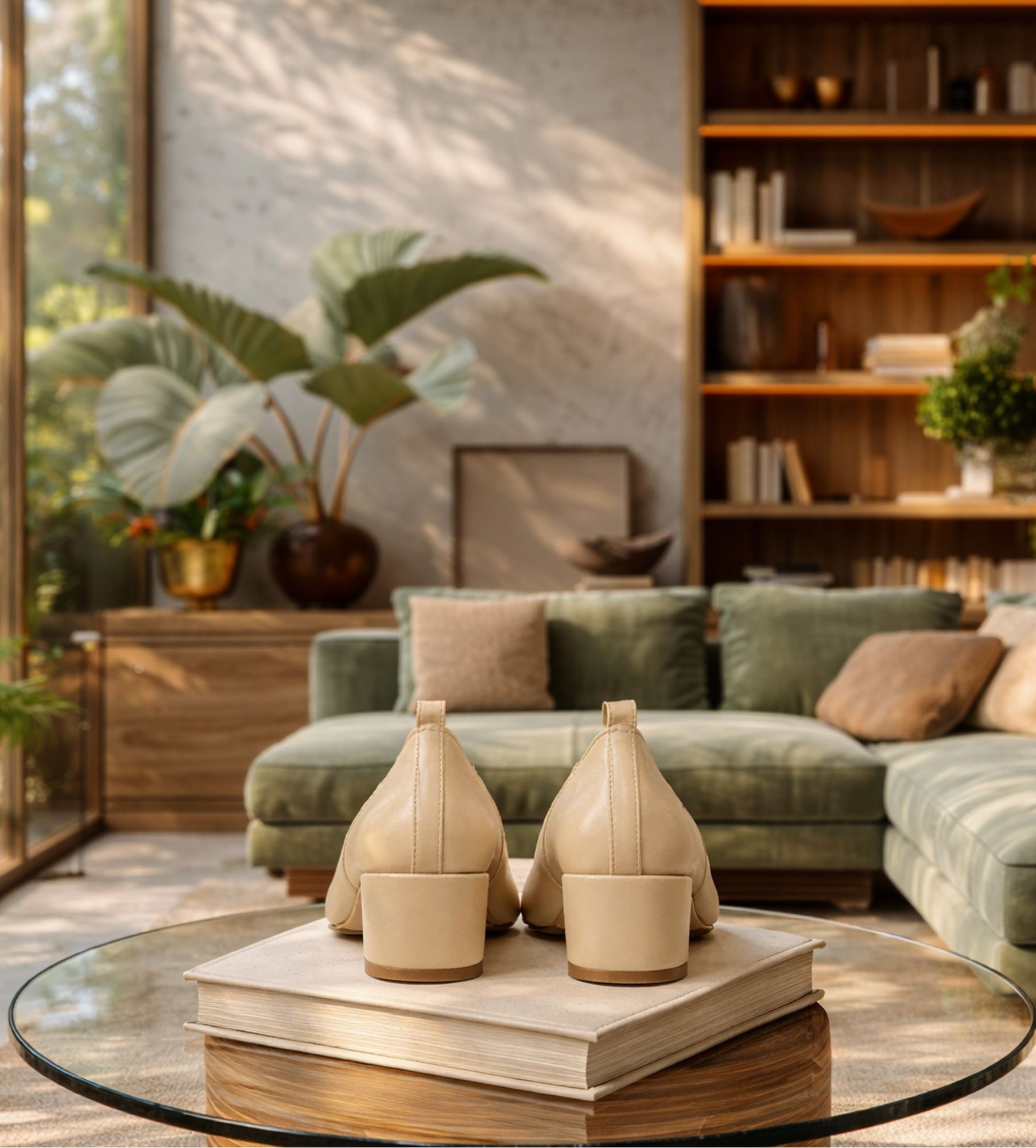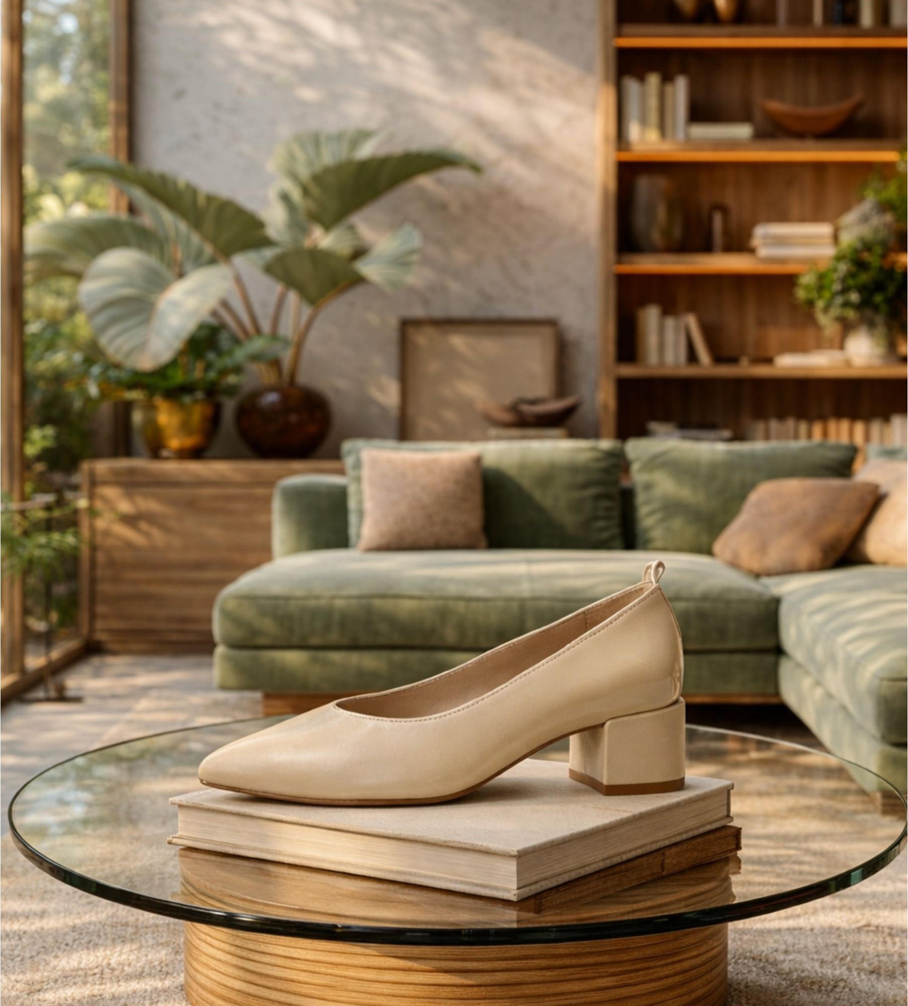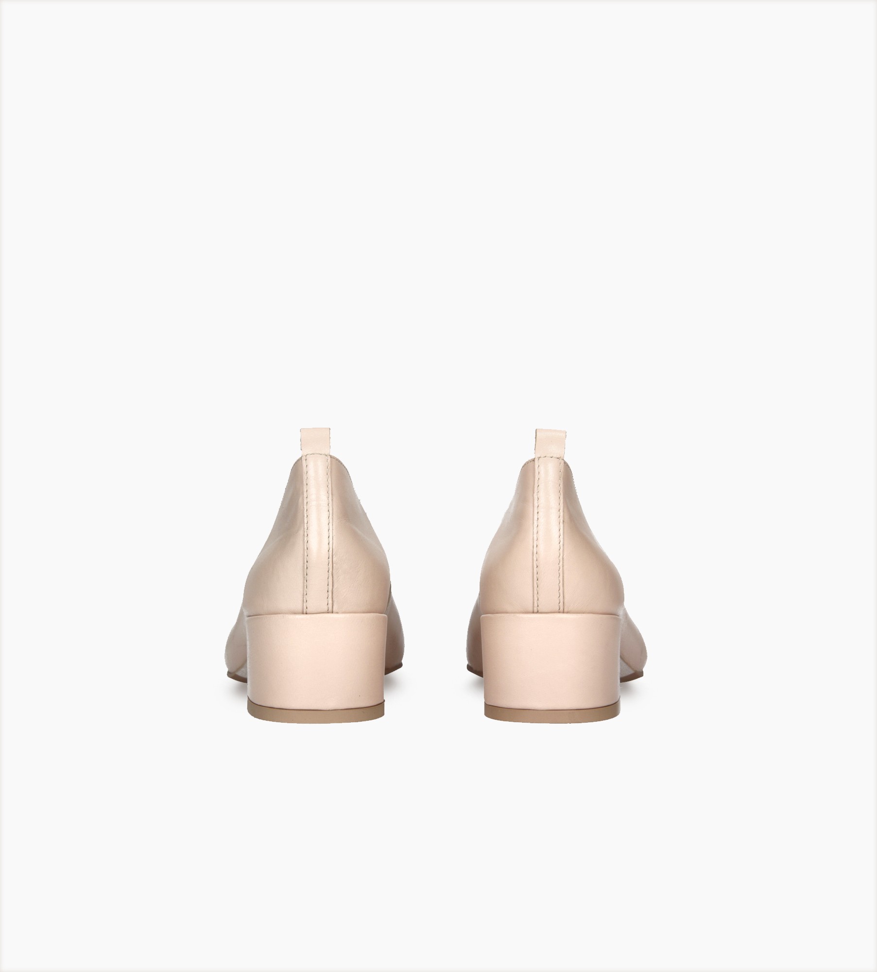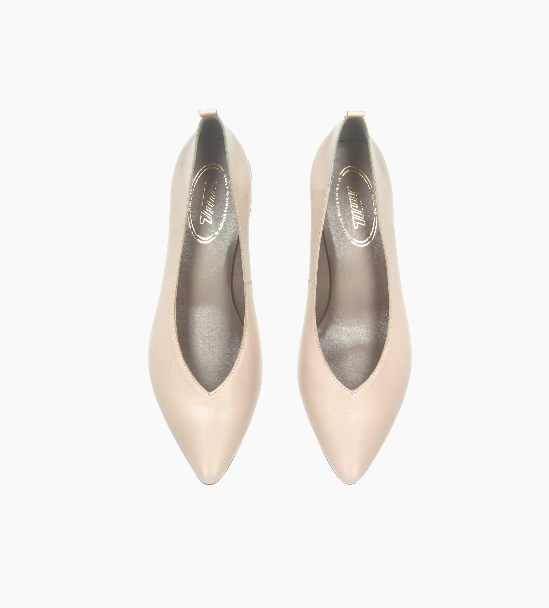 Beżowe czółenka damskie wykonane z wysokiej jakości naturalnej skóry cielęcej posiadają szeroki stabilny obcas 5 centymetrowy, oraz starannie wyprofilowaną cholewkę. Ich minimalistyczna stylistyka oraz neutralna kolorystyka przypadnie od gustu miłośniczkom klasycznej elegancji. Prezentowany model nie tylko wygląda zgrabnie i estetyczne, ale co najważniejsze jest bardzo komfortowy. Niewysoki, słupkowy obcas doskonale stabilizuje nogę.