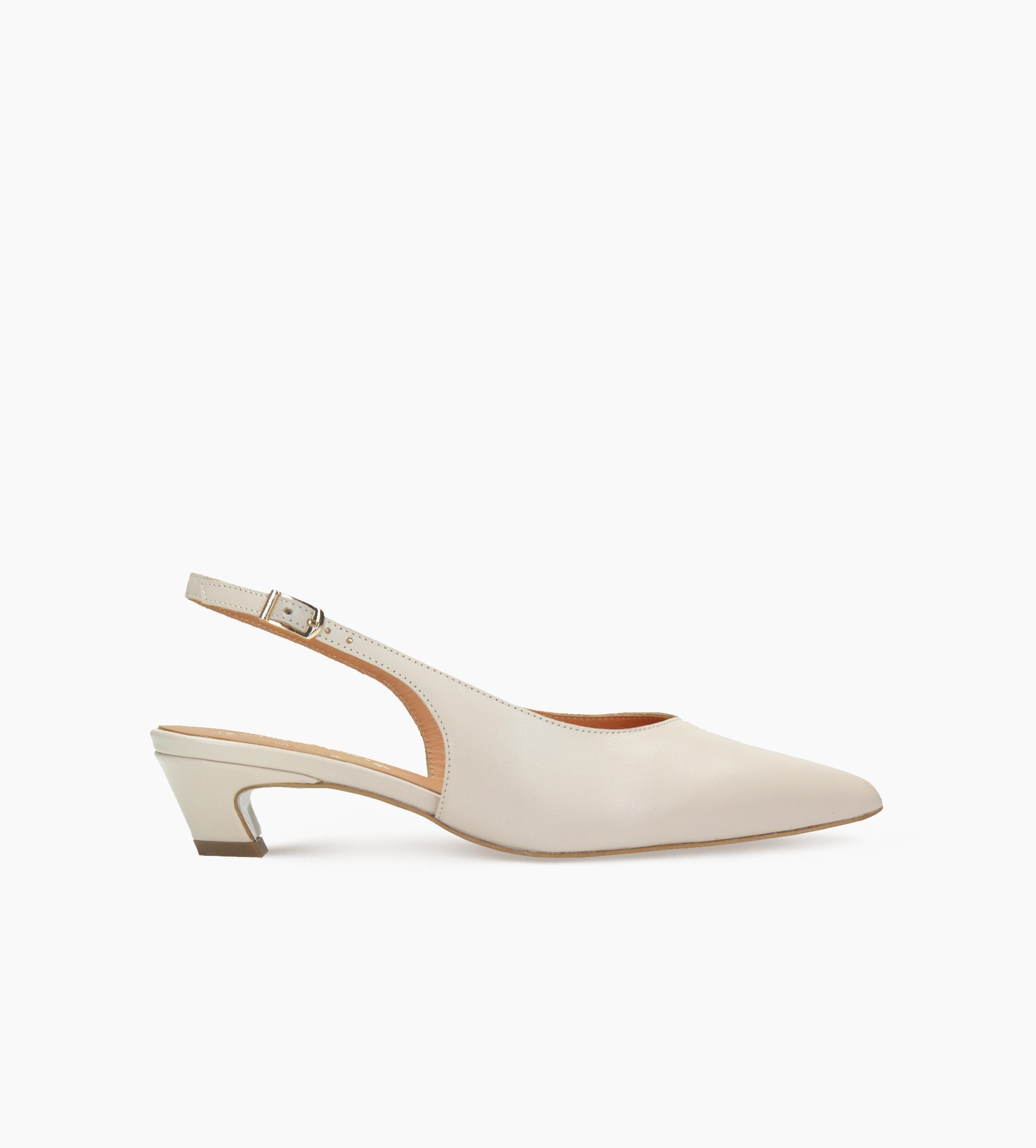Załóż czółenka do jednobarwnego garnituru w odcieniu ecru lub złamanej bieli z szerokimi spodniami i marynarką oversize. Pod spód dodaj satynowy top w kolorze pudrowego różu lub jasnego karmelu. Stylizację uzupełnij torebką typu kuferek i klasycznym zegarkiem. To wyrafinowany zestaw do biura, na konferencję czy rodzinną uroczystość.