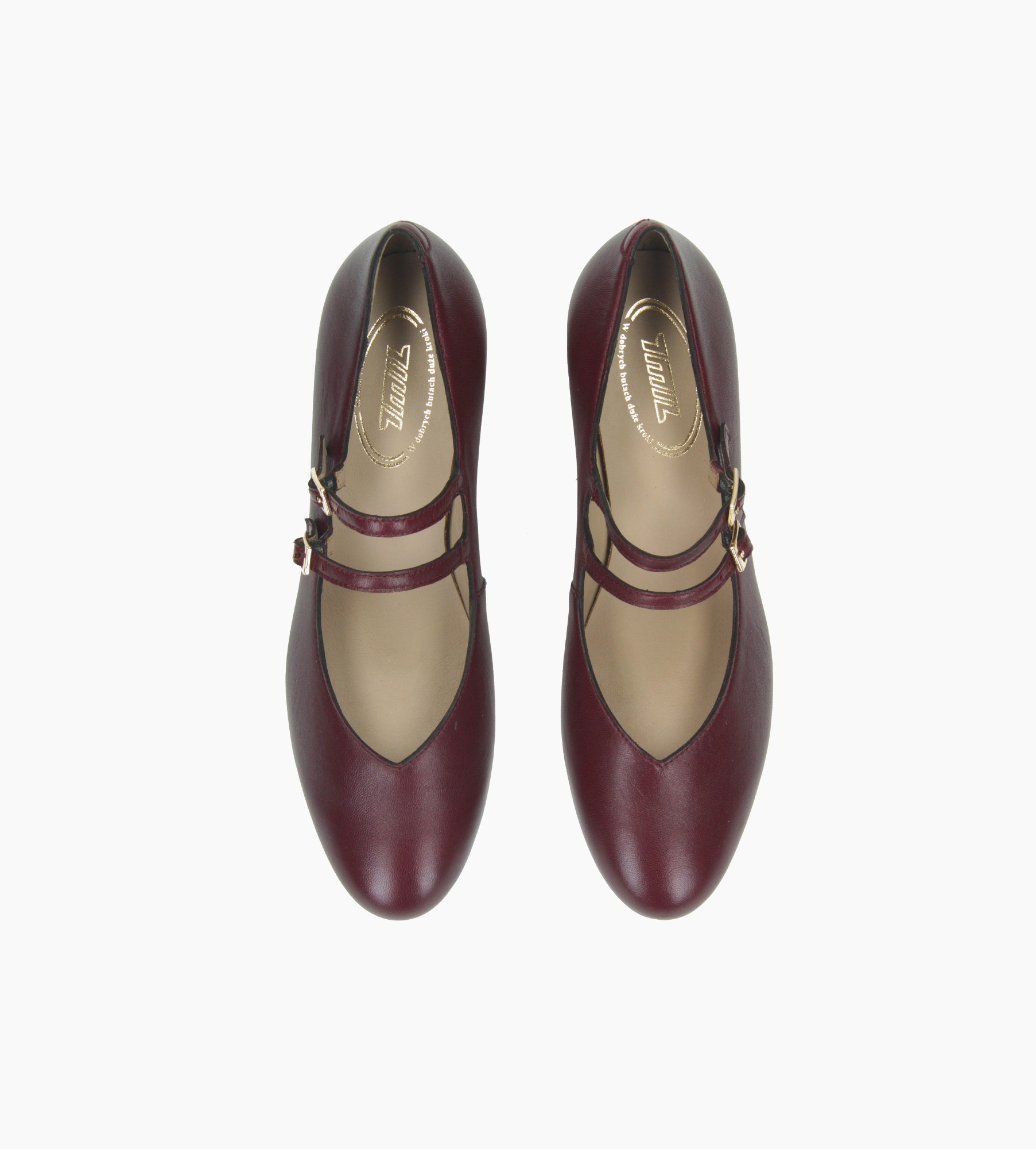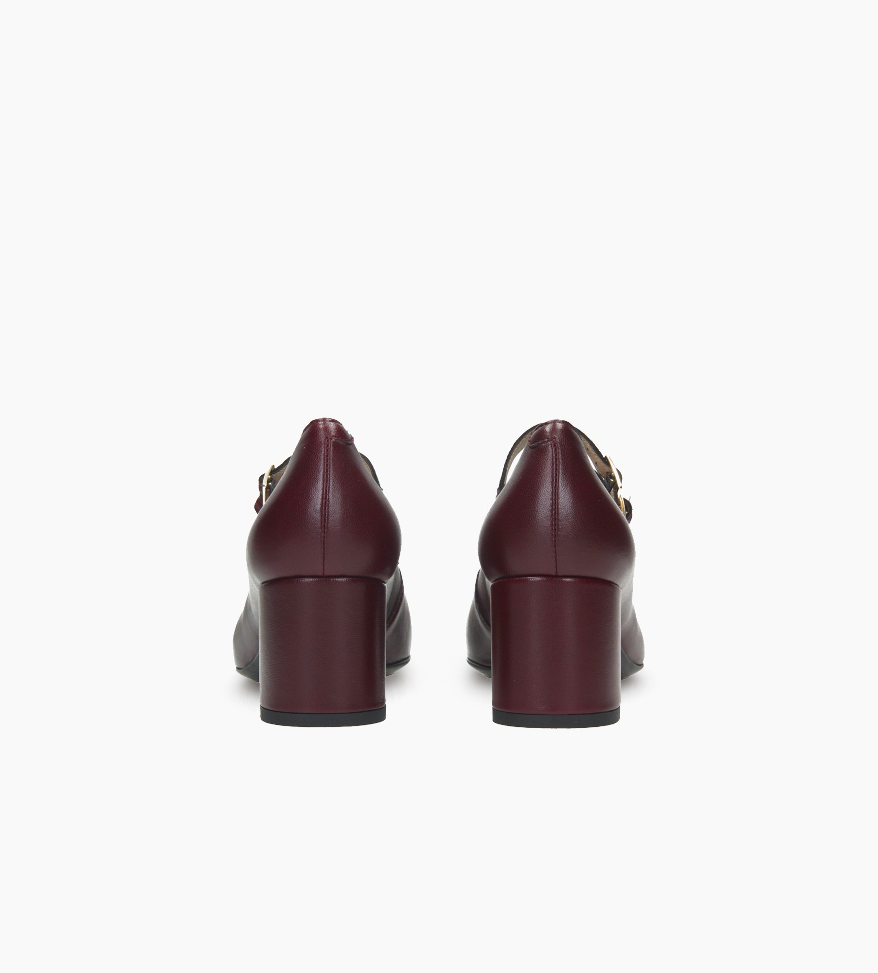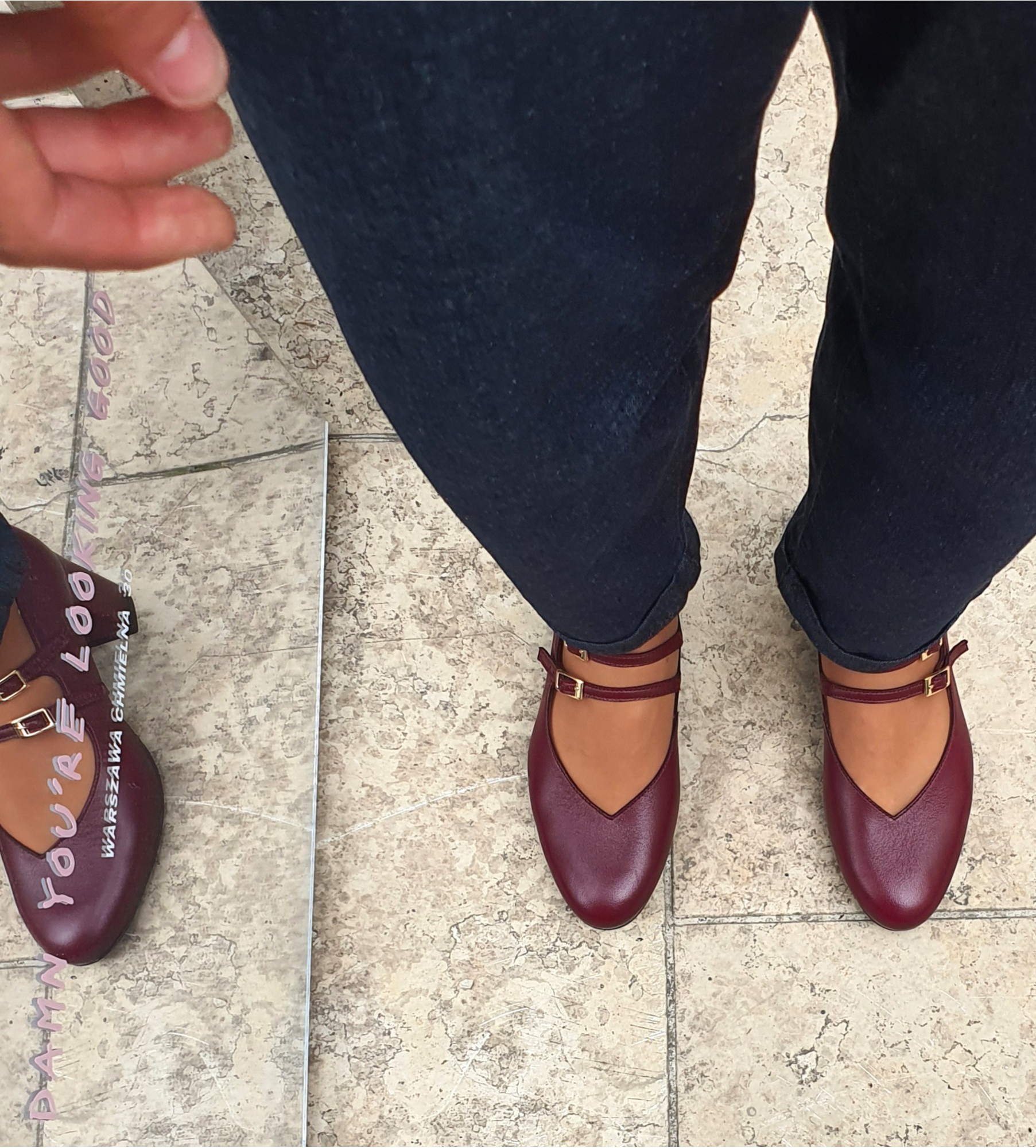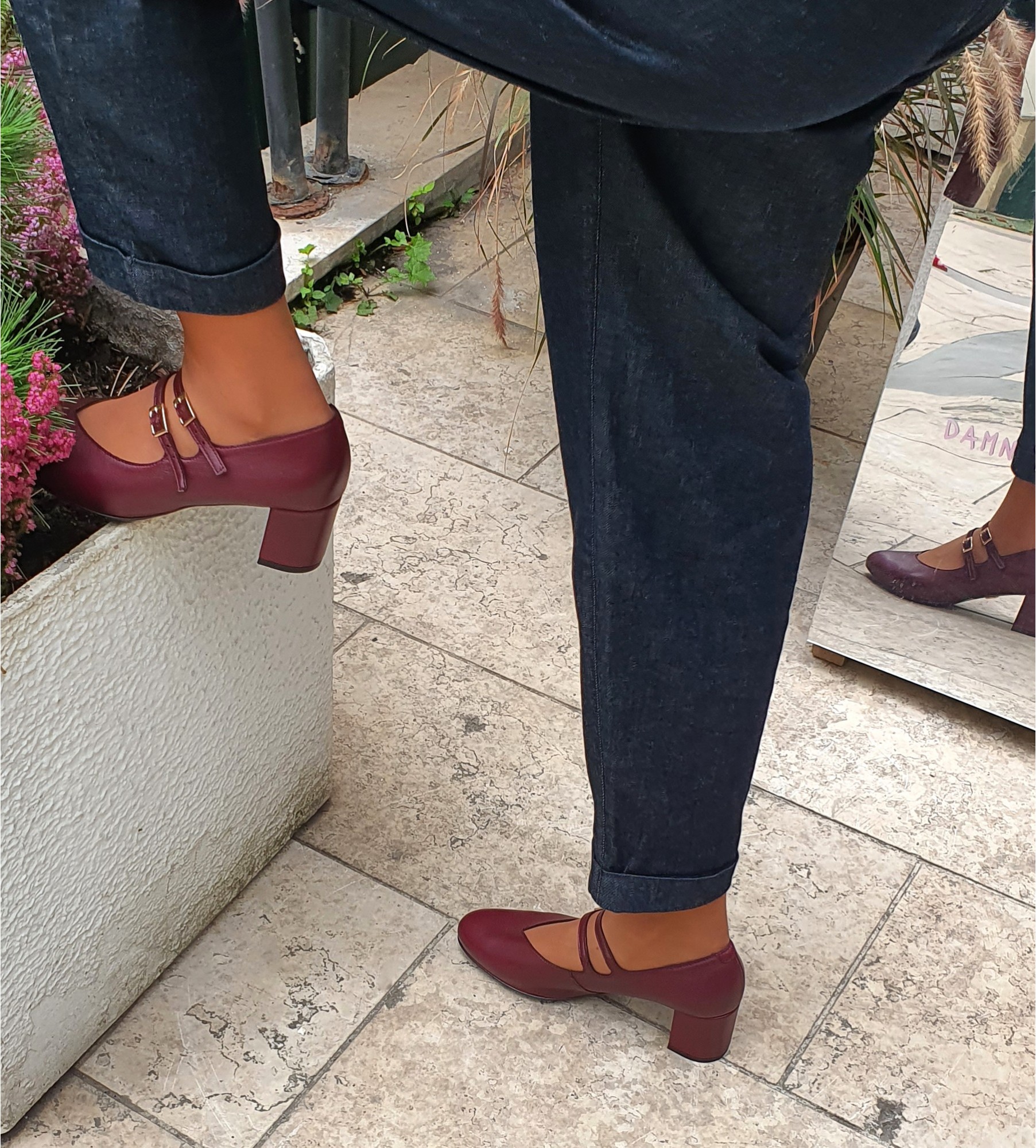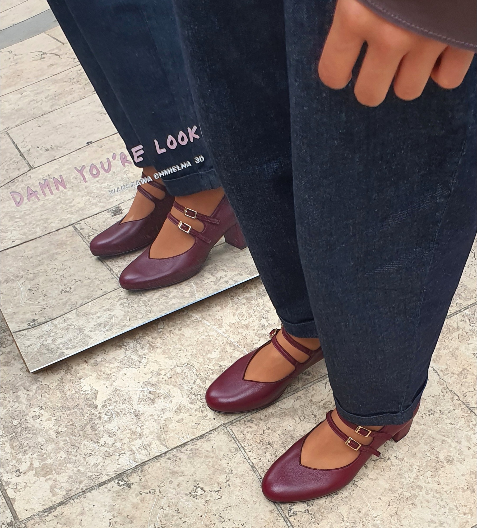 Bordowe czółenka damskie wykonane z najwyższej jakości naturalnej skóry to elegancka propozycja na sezon jesienno-zimowy. Model osadzony jest na stabilnym, klockowatym obcasie, który zapewnia komfort noszenia przez cały dzień. Dwa subtelne paski z regulacją na klamerki nie tylko pięknie podkreślają linię stopy, ale też nadają butom wyjątkowego charakteru. Wnętrze czółenek wyściełane zostało miękką skórą jagnięcą, która gwarantuje wygodę i uczucie luksusu przy każdym kroku.