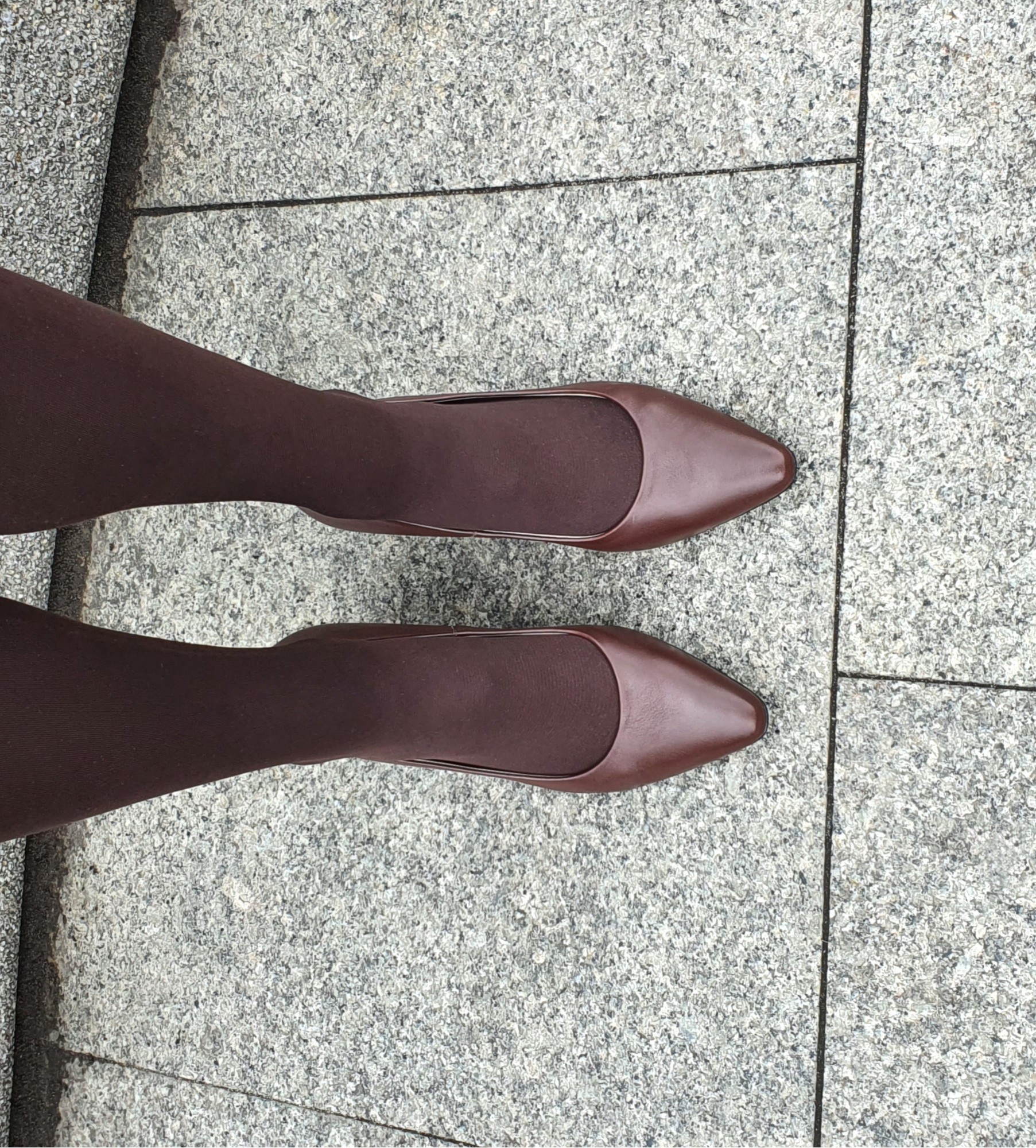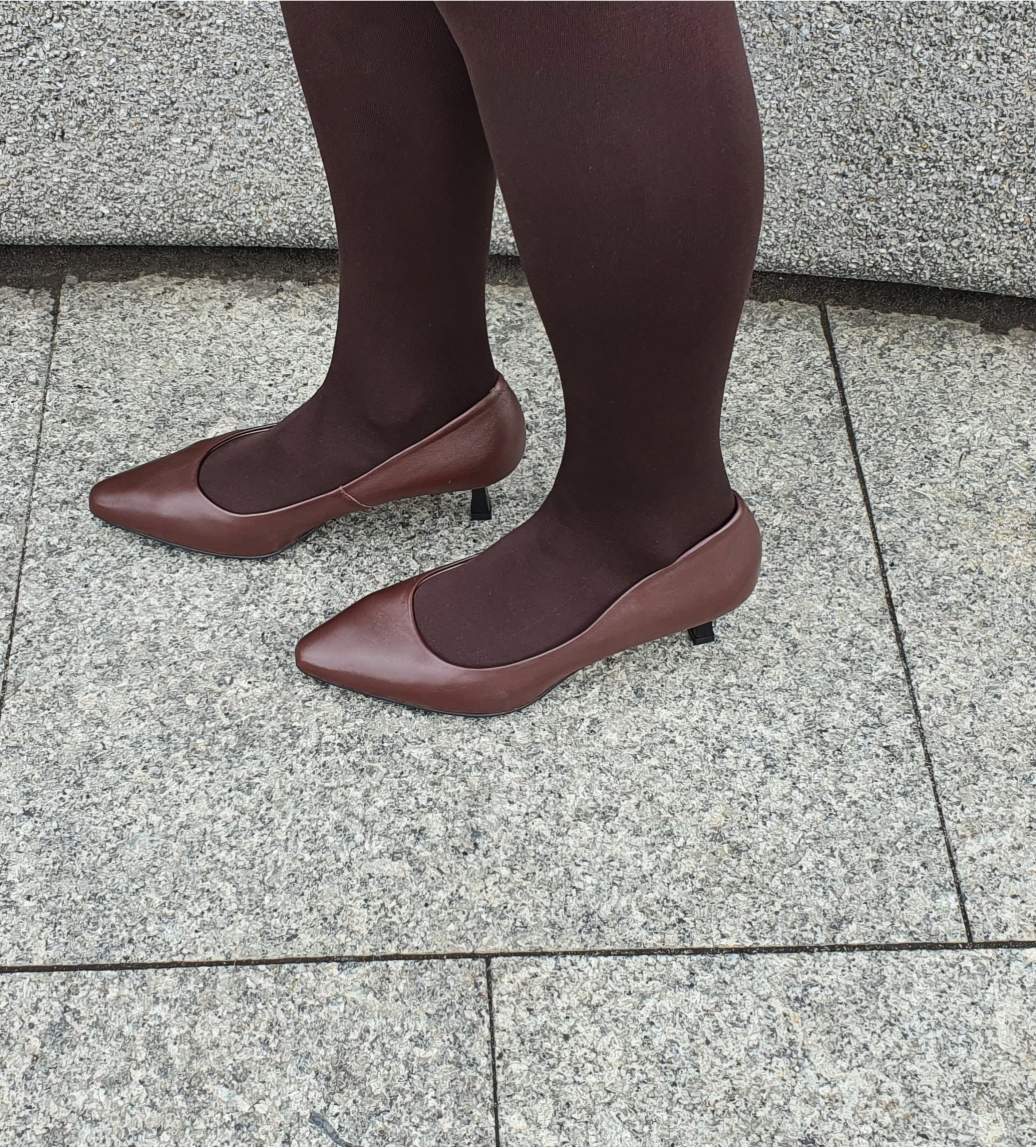 Czekoladowe czółenka zestaw z sukienką midi z długim rękawem w kolorze burgundu lub głębokiej zieleni, wykonaną z miękkiej dzianiny lub jedwabiu. Do tego cienki pasek w talii w kolorze ciemnego brązu oraz długi, wełniany płaszcz w odcieniu ciemnej czekolady. Stylizację uzupełnij kopertówką w kolorze złamanej bieli i klasyczną biżuterią — np. perłowym naszyjnikiem lub kolczykami. Idealna na kolację, do teatru lub na eleganckie przyjęcie.