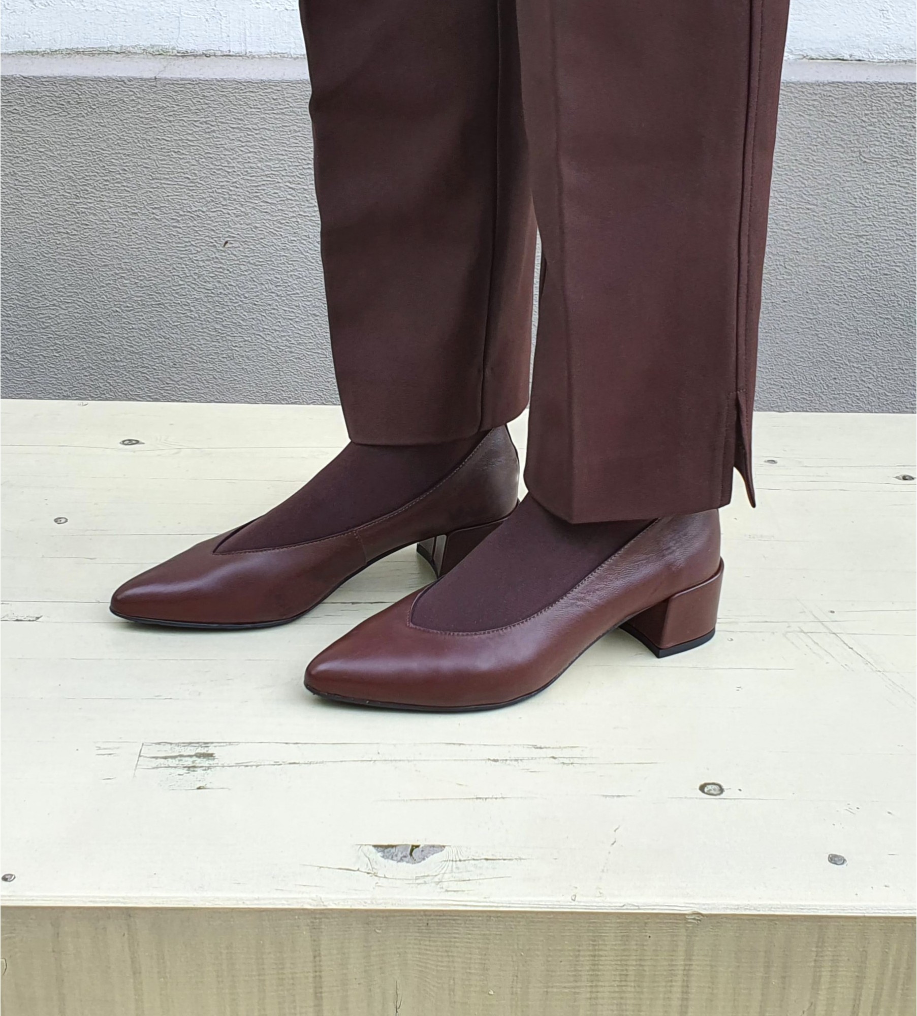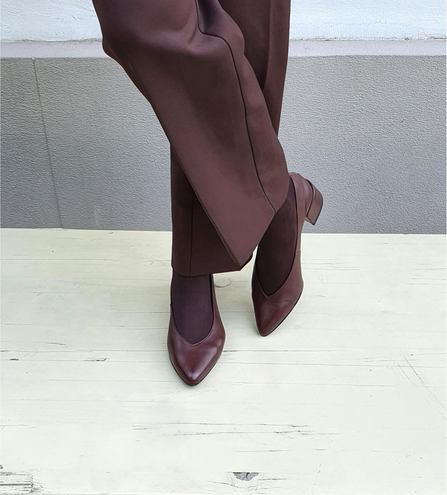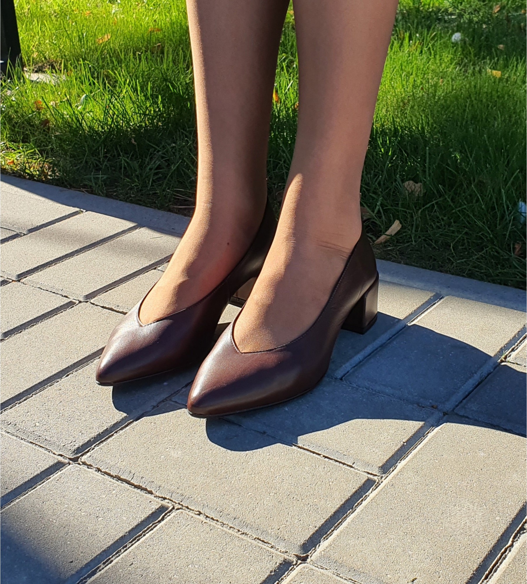 Klasyczne i ponadczasowe czółenka damskie w pięknym, ciepłym odcieniu brązu. Wykonane z wysokiej jakości skóry naturalnej, z wnętrzem wyściełanym miękką skórą jagnięcą, która zapewnia wyjątkowy komfort noszenia. Model osadzony jest na klasycznym, stabilnym i wygodnym obcasie, który optycznie wysmukla sylwetkę, a jednocześnie pozwala cieszyć się wygodą przez cały dzień. Delikatne, kobiece wycięcie przy palcach dodaje butom subtelności i elegancji, podkreślając ich ponadczasowy charakter.