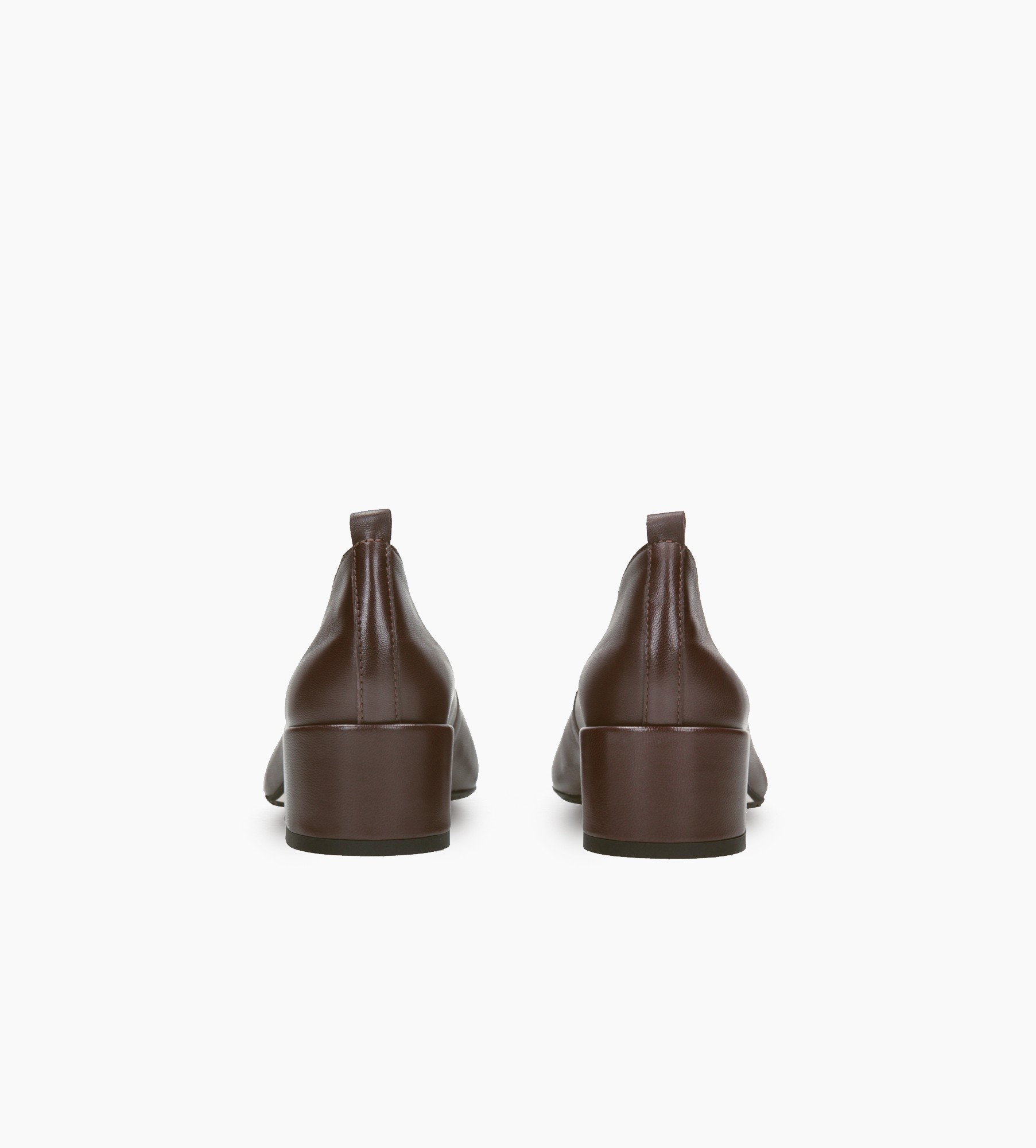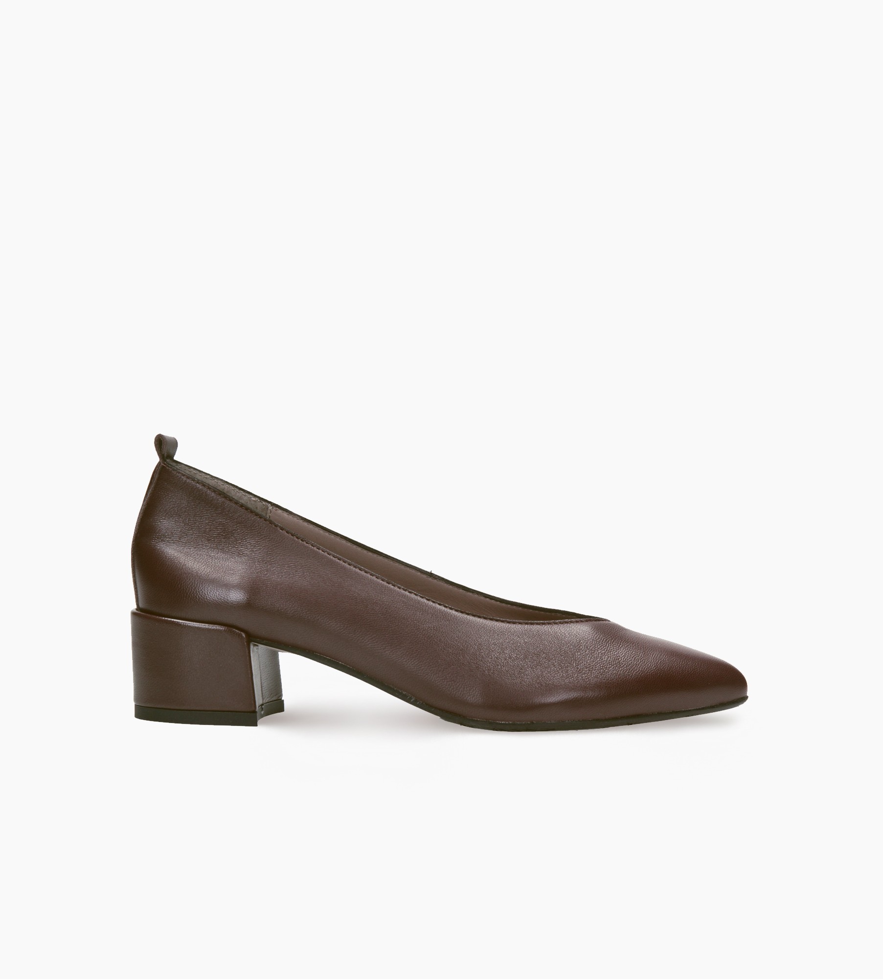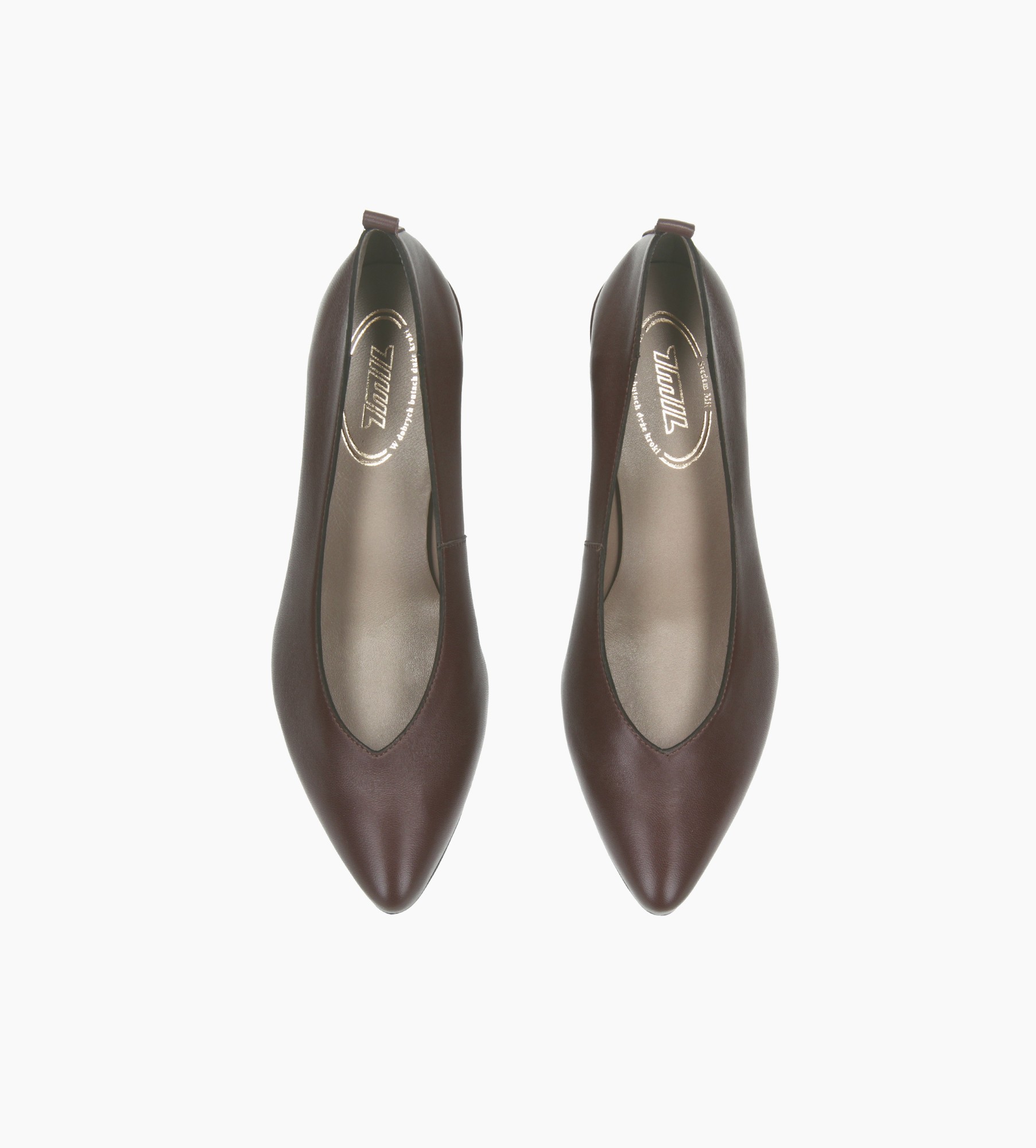 Klasyczne i ponadczasowe czółenka damskie w pięknym, ciepłym odcieniu brązu. Wykonane z wysokiej jakości skóry naturalnej, z wnętrzem wyściełanym miękką skórą jagnięcą, która zapewnia wyjątkowy komfort noszenia. Model osadzony jest na klasycznym, stabilnym i wygodnym obcasie, który optycznie wysmukla sylwetkę, a jednocześnie pozwala cieszyć się wygodą przez cały dzień. Delikatne, kobiece wycięcie przy palcach dodaje butom subtelności i elegancji, podkreślając ich ponadczasowy charakter.