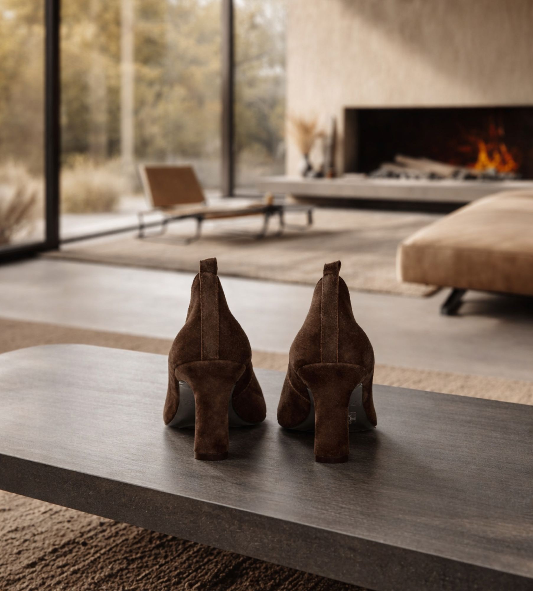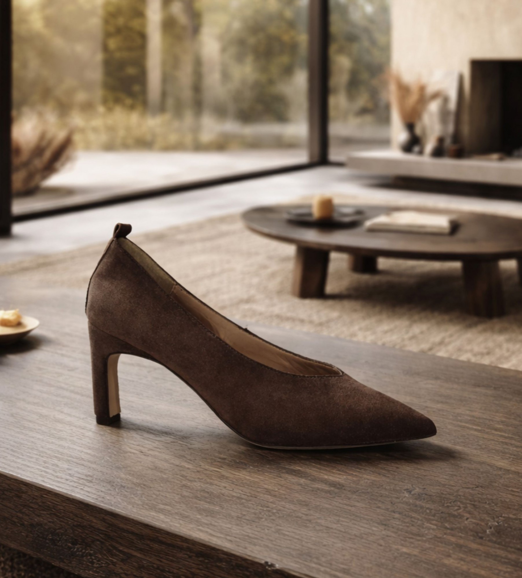 Ponadczasowa elegancja w najpiękniejszym wydaniu. Te kobiece czółenka z miękkiego, naturalnego zamszu zachwycają subtelną linią, klasycznym fasonem i idealnie wyprofilowanym kobiecym wycięciem, które pięknie wysmukla stopę. Stabilna, niewysoka szpilka dodaje szyku, nie rezygnując z komfortu – to buty, które założysz zarówno do pracy, jak i na ważne wyjście. Wnętrze wykończone luksusową skórą jagnięcą gwarantuje wygodę noszenia przez cały dzień, nawet przy intensywnym rytmie. Czekoladowy odcień zamszu sprawia, że czółenka z łatwością dopasują się do wielu stylizacji.