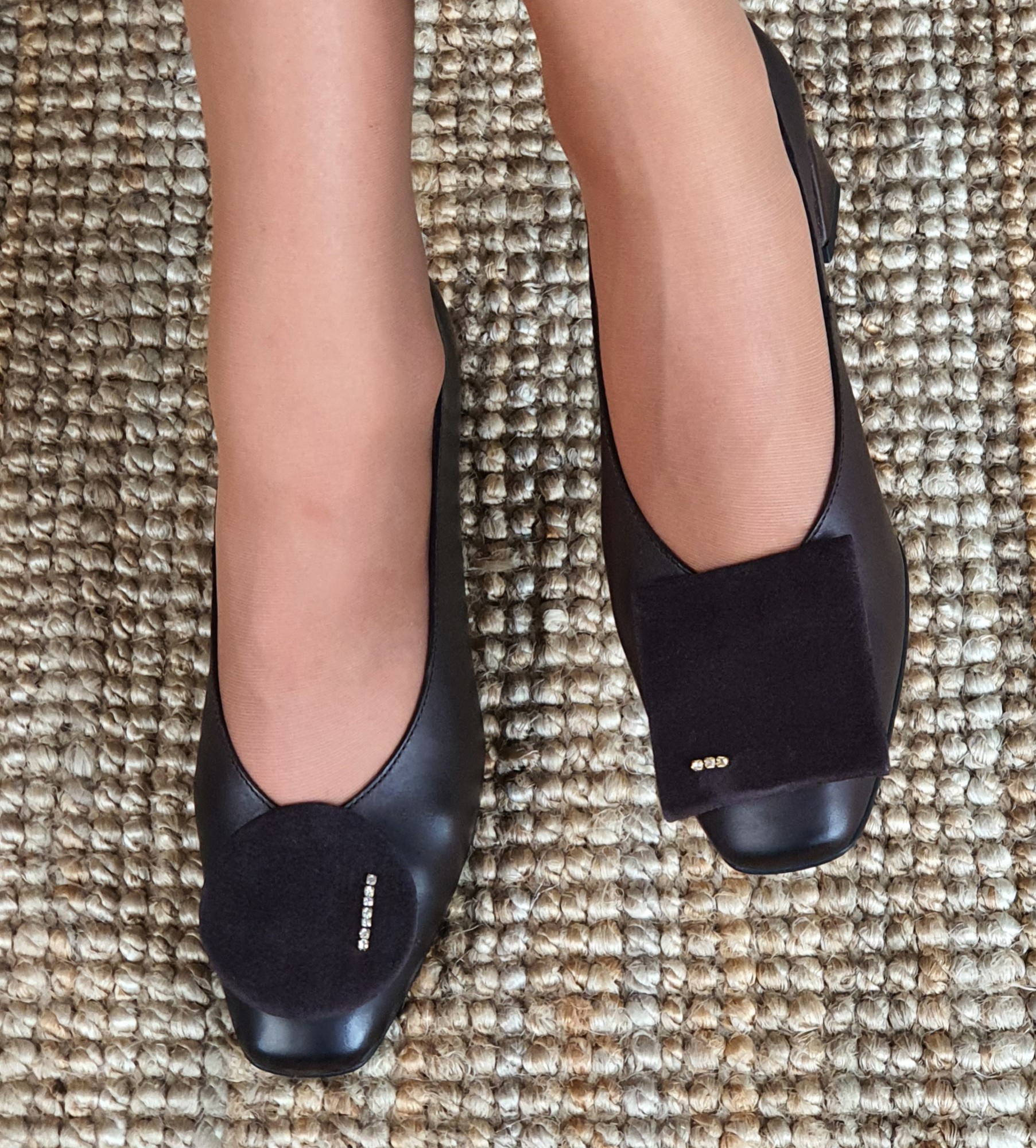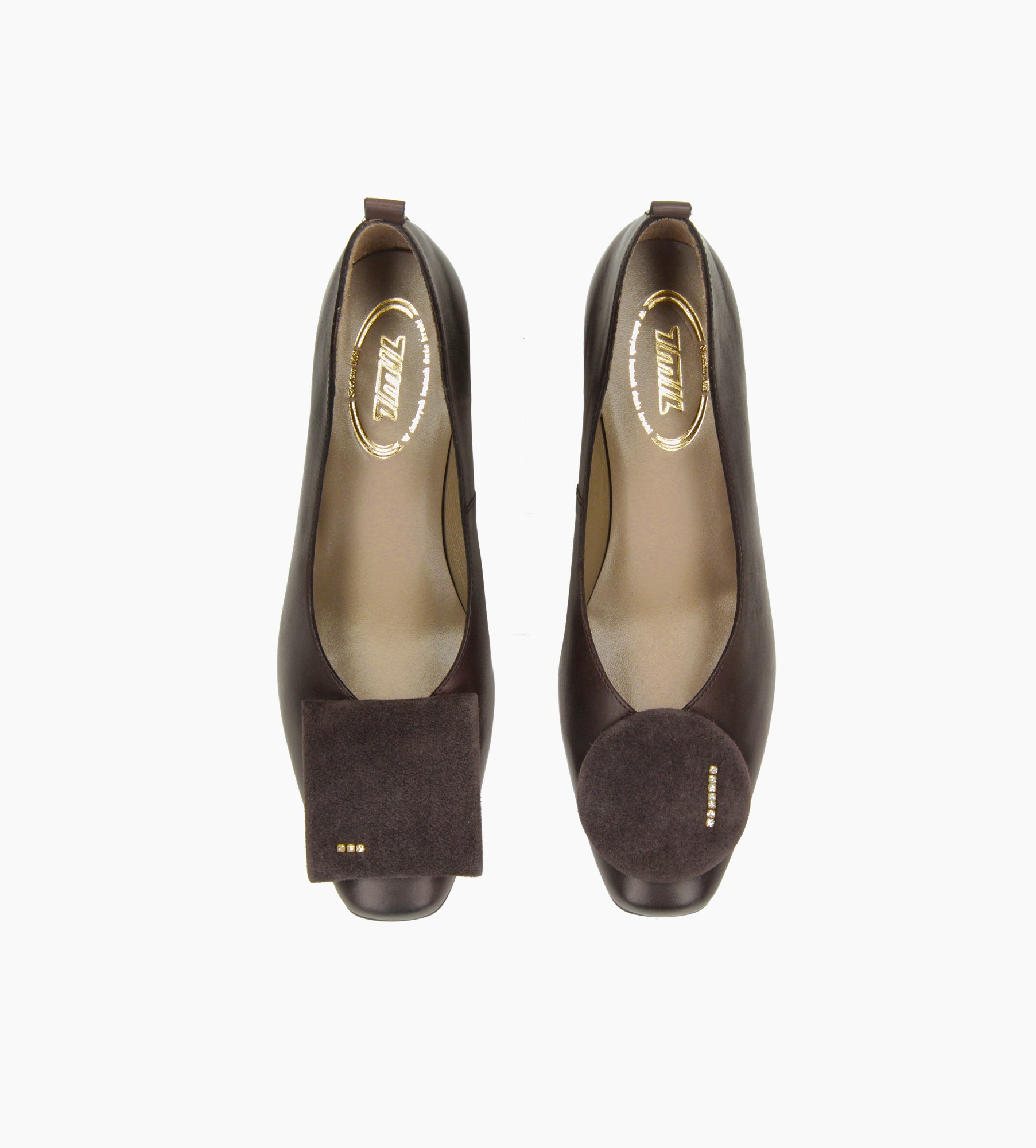 Czółenka to esencja klasycznej elegancji z nowoczesnym akcentem. Wykonane z miękkiej, naturalnej skóry cielęcej w głębokim odcieniu czekolady, zachwycają smukłą linią i perfekcyjnym wykończeniem. Osadzone na niskim, stabilnym obcasie, zapewniają komfort noszenia przez cały dzień, nie rezygnując z kobiecego szyku. Charakterystycznym elementem modelu są ozdoby z miękkiego zamszu w kształcie koła i kwadratu, które umieszczono na nosku – geometryczne, nowoczesne i subtelnie biżuteryjne. Te detale wprowadzają nutę artyzmu i indywidualności, sprawiając, że buty stają się wyjątkowym akcentem każdej stylizacji.