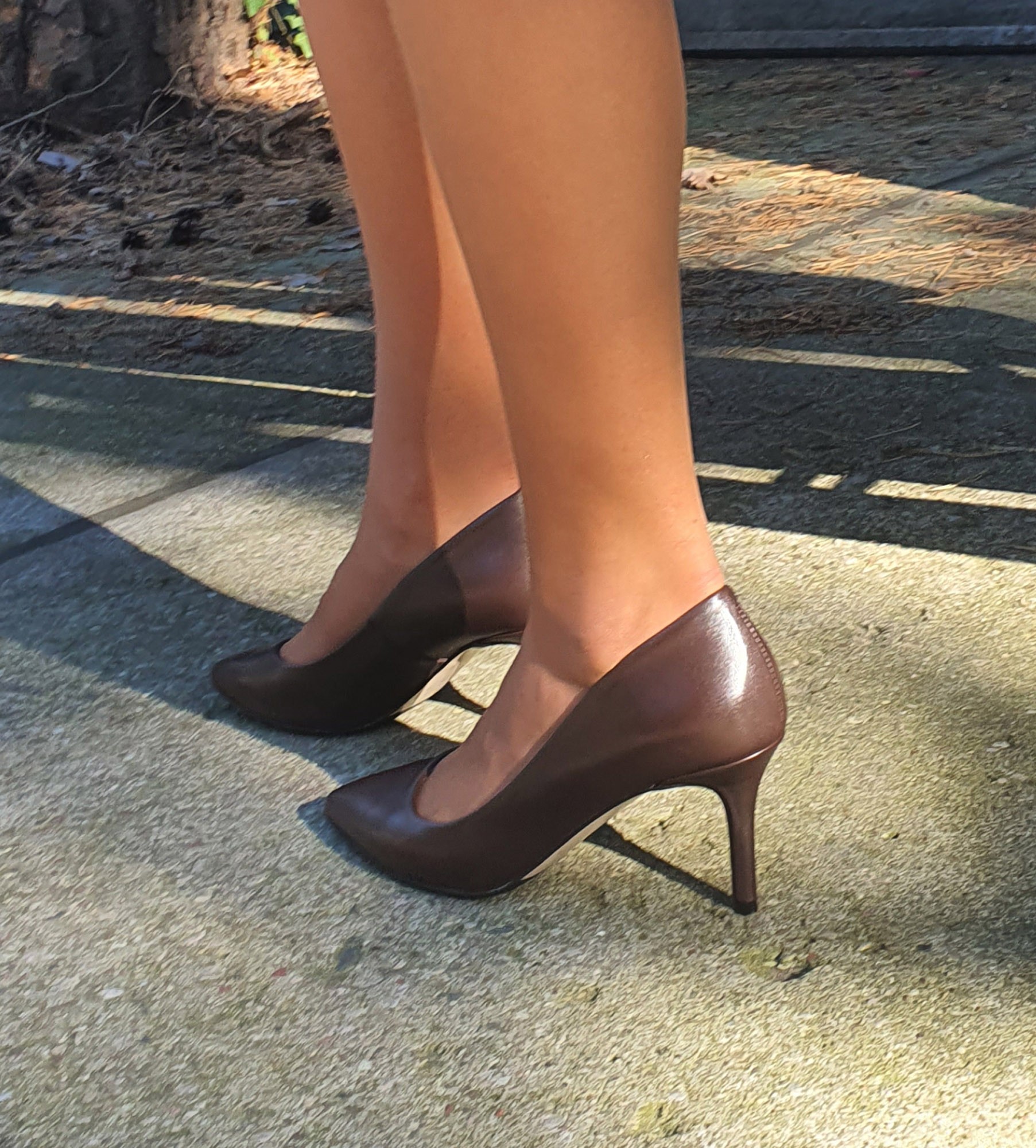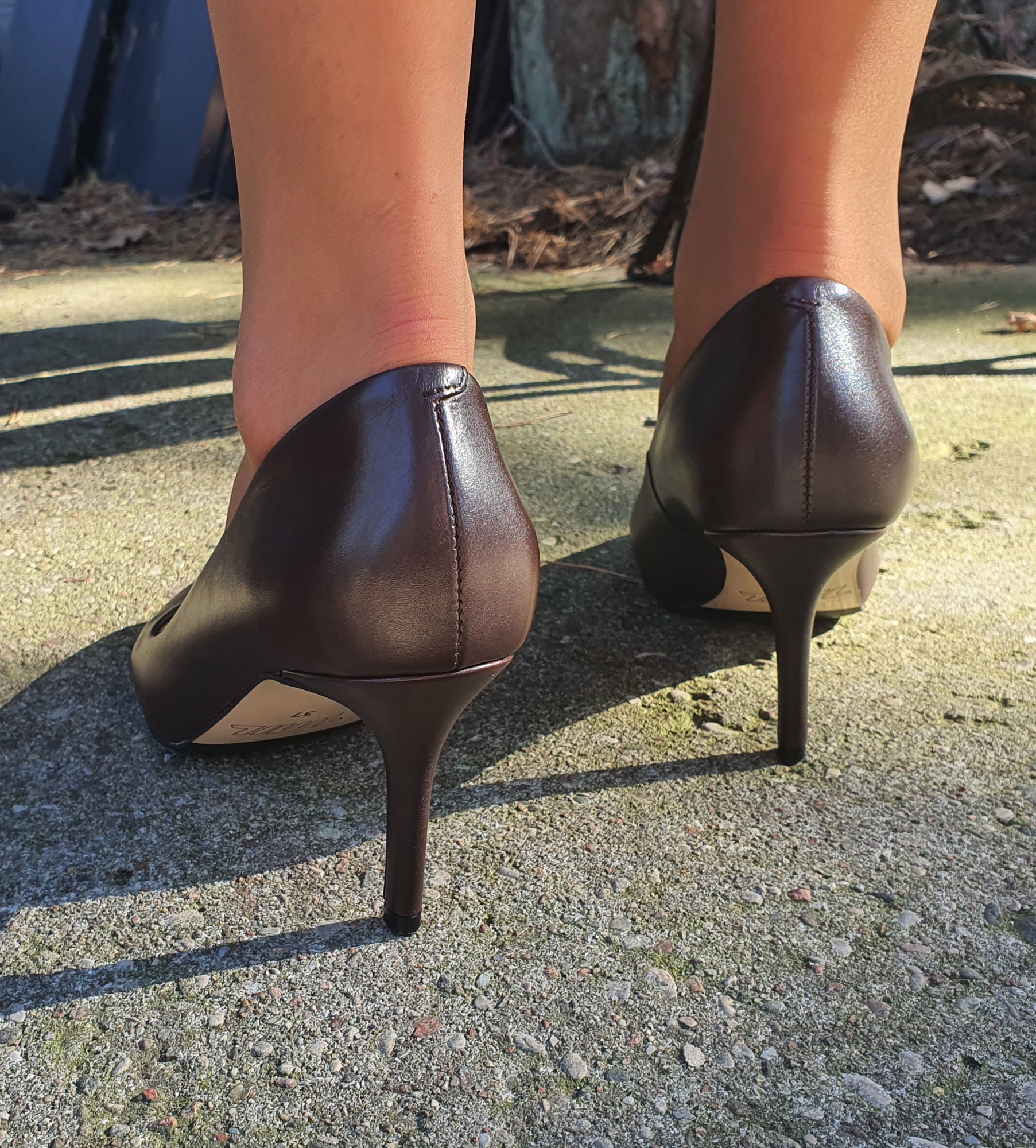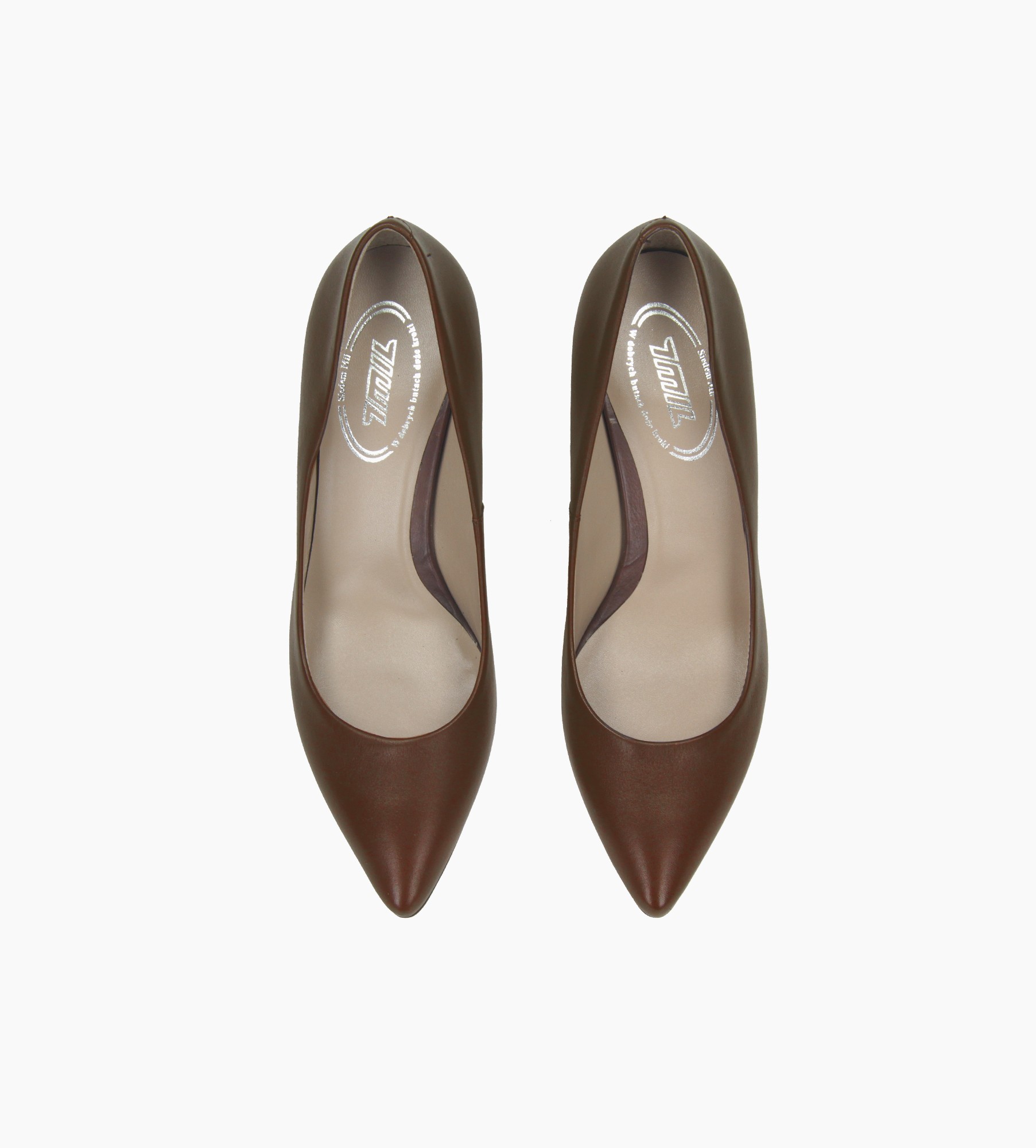 Te klasyczne czółenka wykonane zostały z najwyższej jakości skóry cielęcej, która emanuje delikatnym połyskiem i miękką fakturą. Wnętrze wyściełane jest luksusową skórą jagnięcą — zapewniającą komfort, oddychalność i przyjemne dopasowanie do stopy. Szpilka – klasyczna i idealnie wyprofilowana – balansuje elegancję z wygodą, unosząc sylwetkę bez uczucia dyskomfortu. Neutralny, ciepły brąz sprawia, że czółenka te stają się uniwersalnym dodatkiem, pasującym zarówno do garniturów, ołówkowych spódnic, jak i eleganckich sukienek dziennych.