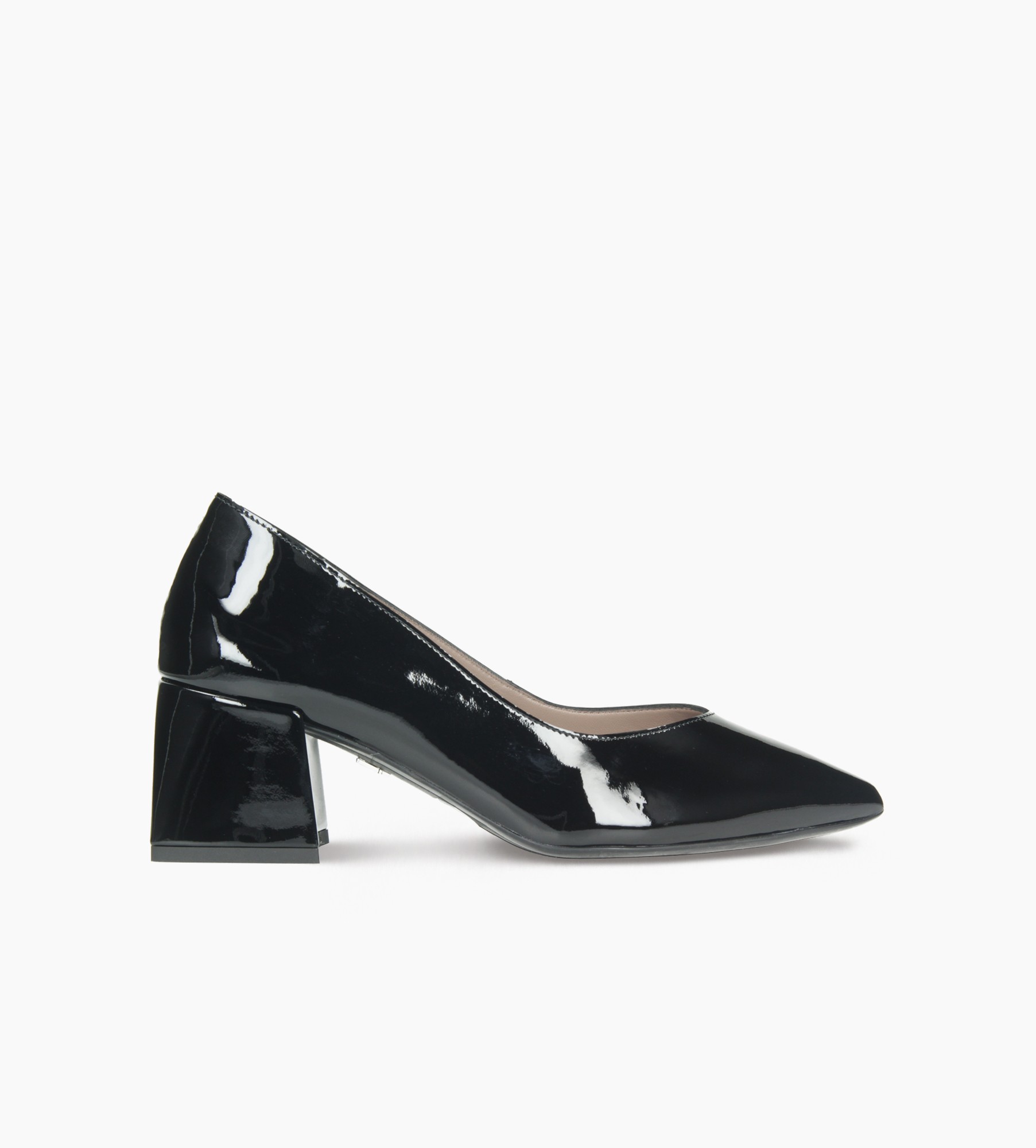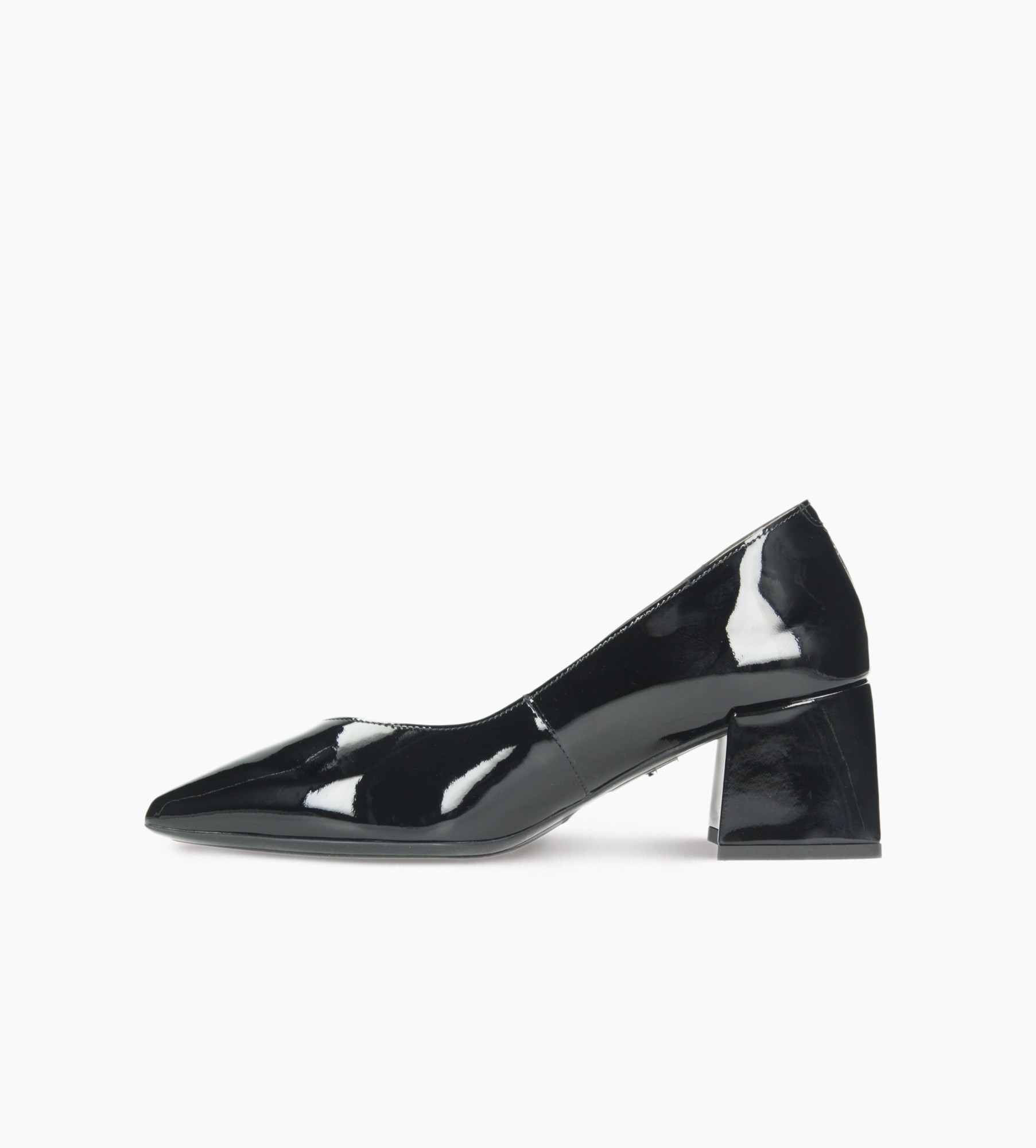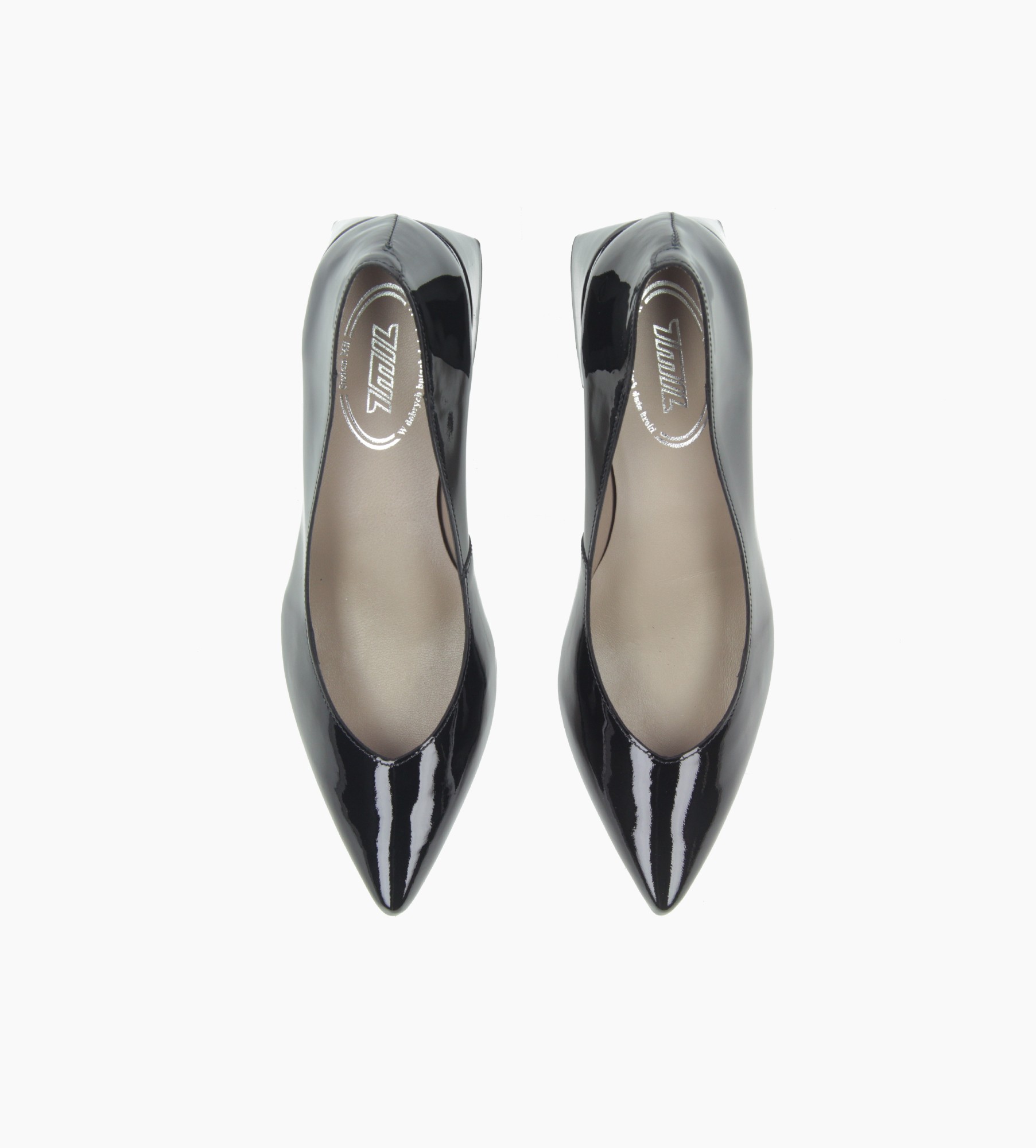 Czarne czółenka to elegancki wybór dla kobiet ceniących klasykę. Wykonane z błyszczącej lakierowanej skóry, te czółenka oferują ponadczasowy styl i klasyczny wygląd. Smukły nosek i stabilny niewysoki obcas zapewniają komfort noszenia oraz dodają sylwetce elegancji. Dzięki uniwersalnemu designowi, te czółenka doskonale sprawdzą się zarówno w formalnych, jak i codziennych stylizacjach, wnosząc odrobinę luksusu do każdej garderoby.