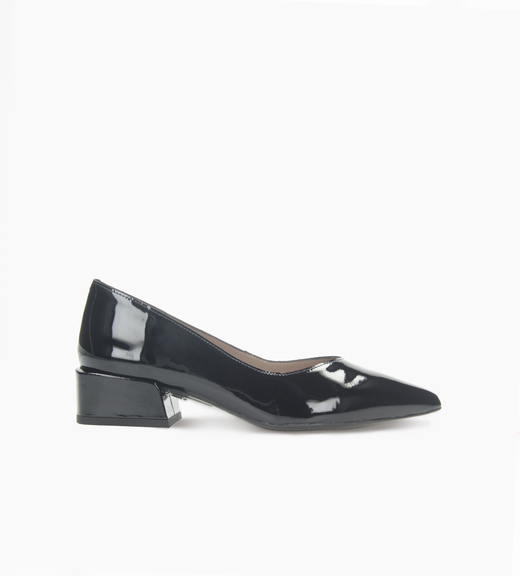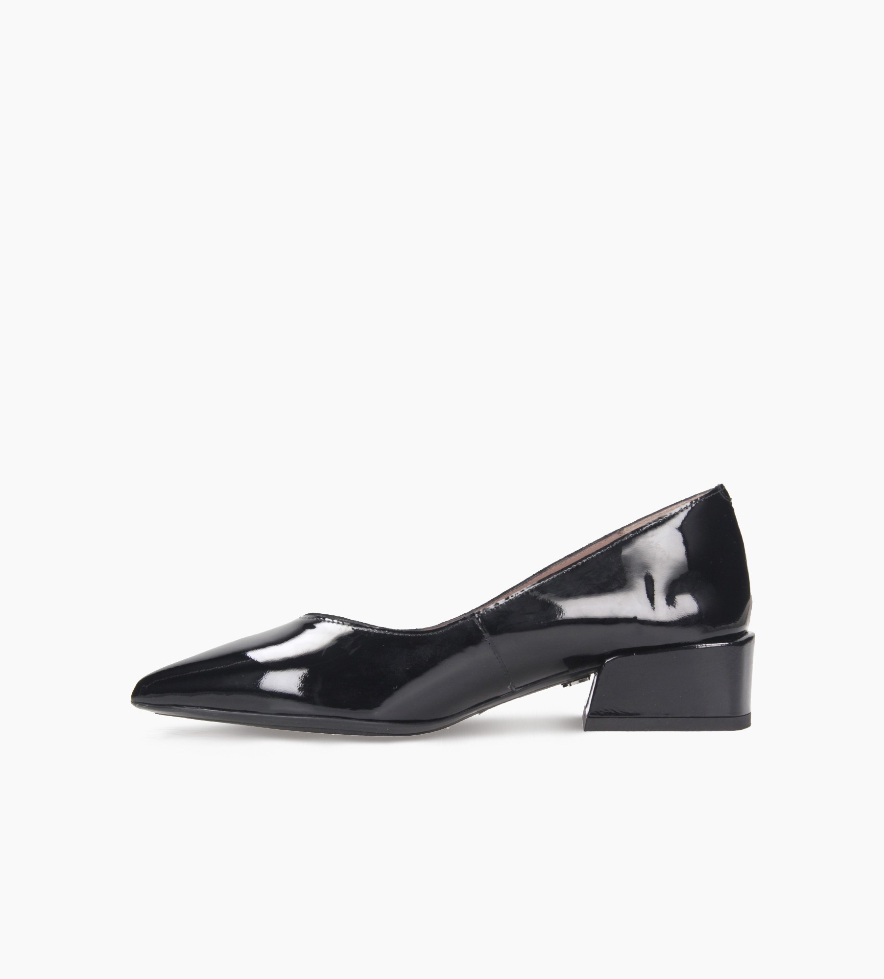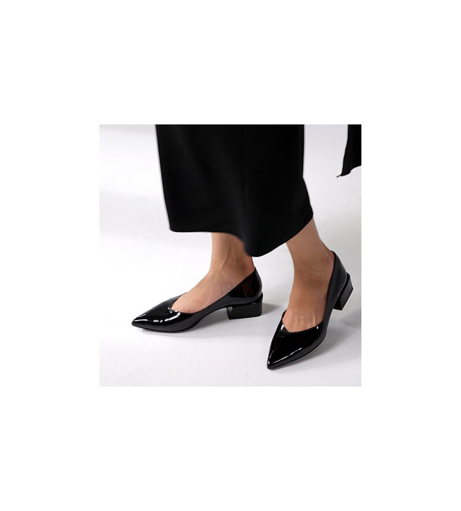 Czarne lakierowane czółenka to wyjątkowe obuwie, które łączy klasyczną elegancję z nowoczesnym blaskiem. Wykonane z wysokiej jakości lakierowanej skóry, te czółenka wyróżniają się głębokim, czarnym połyskiem, który dodaje im charakteru. Czółenka te charakteryzują się noskiem w lekki szpic, który optycznie wysmukla stopę i dodaje sylwetce elegancji. Ich smukła linia i delikatnie wyprofilowany nosek podkreślają kobiecy charakter obuwia, a jednocześnie zapewniają komfort noszenia. Stabilny obcas o średniej wysokości gwarantuje wygodę przez cały dzień, dodając jednocześnie kilku centymetrów wzrostu.