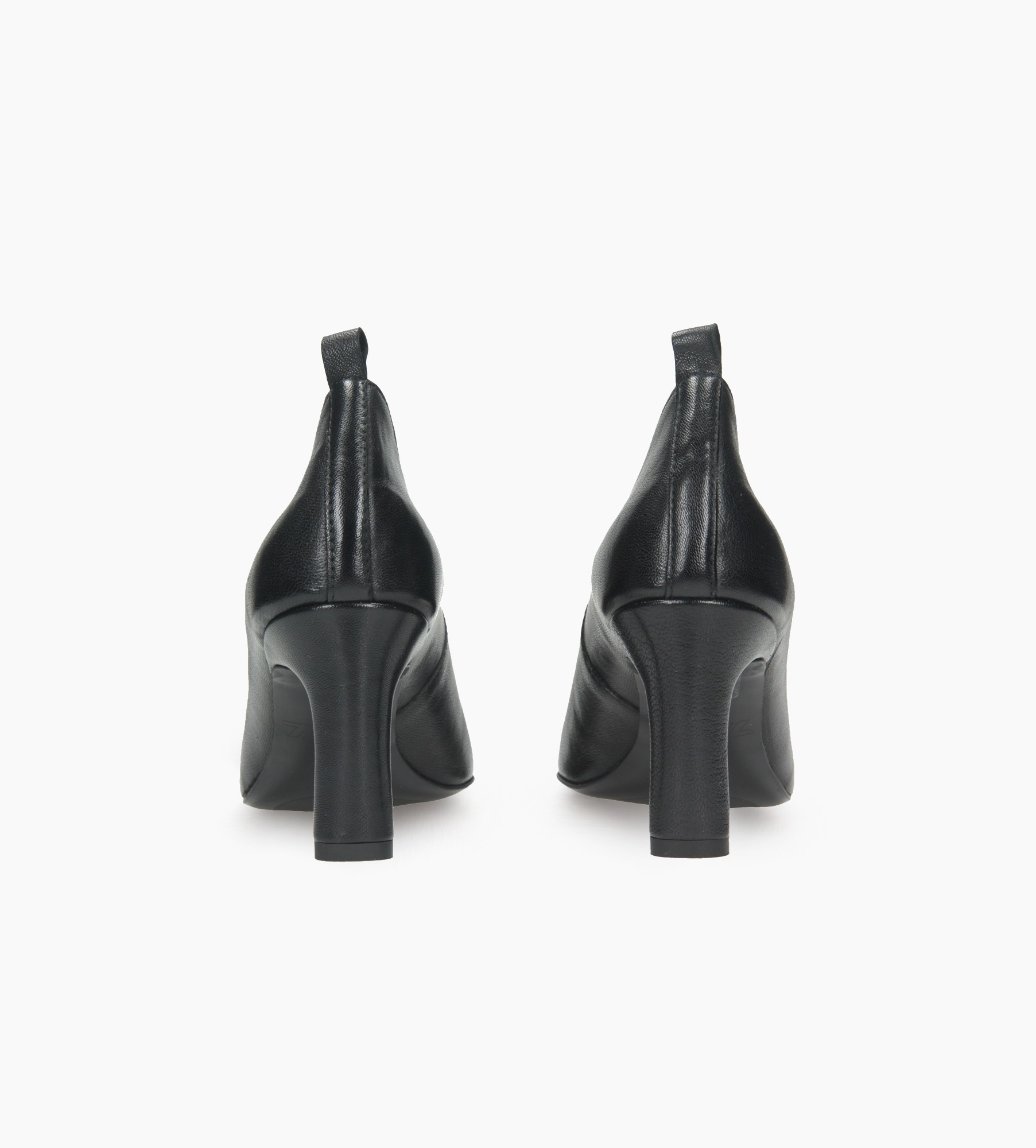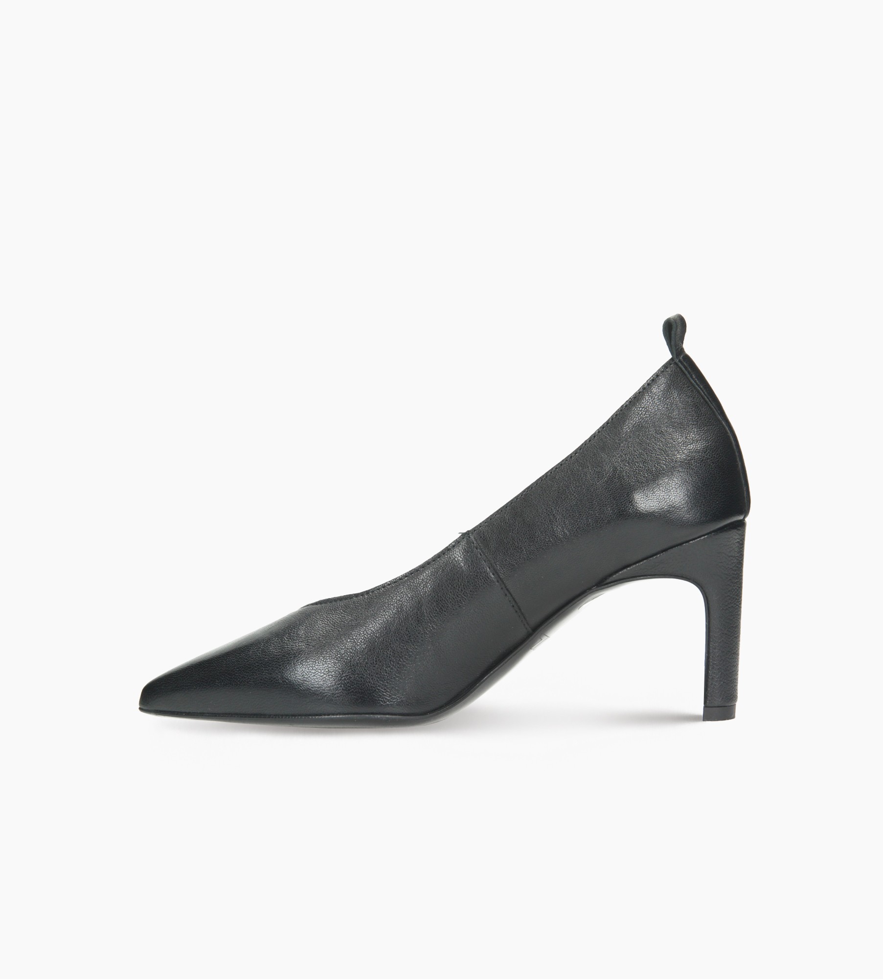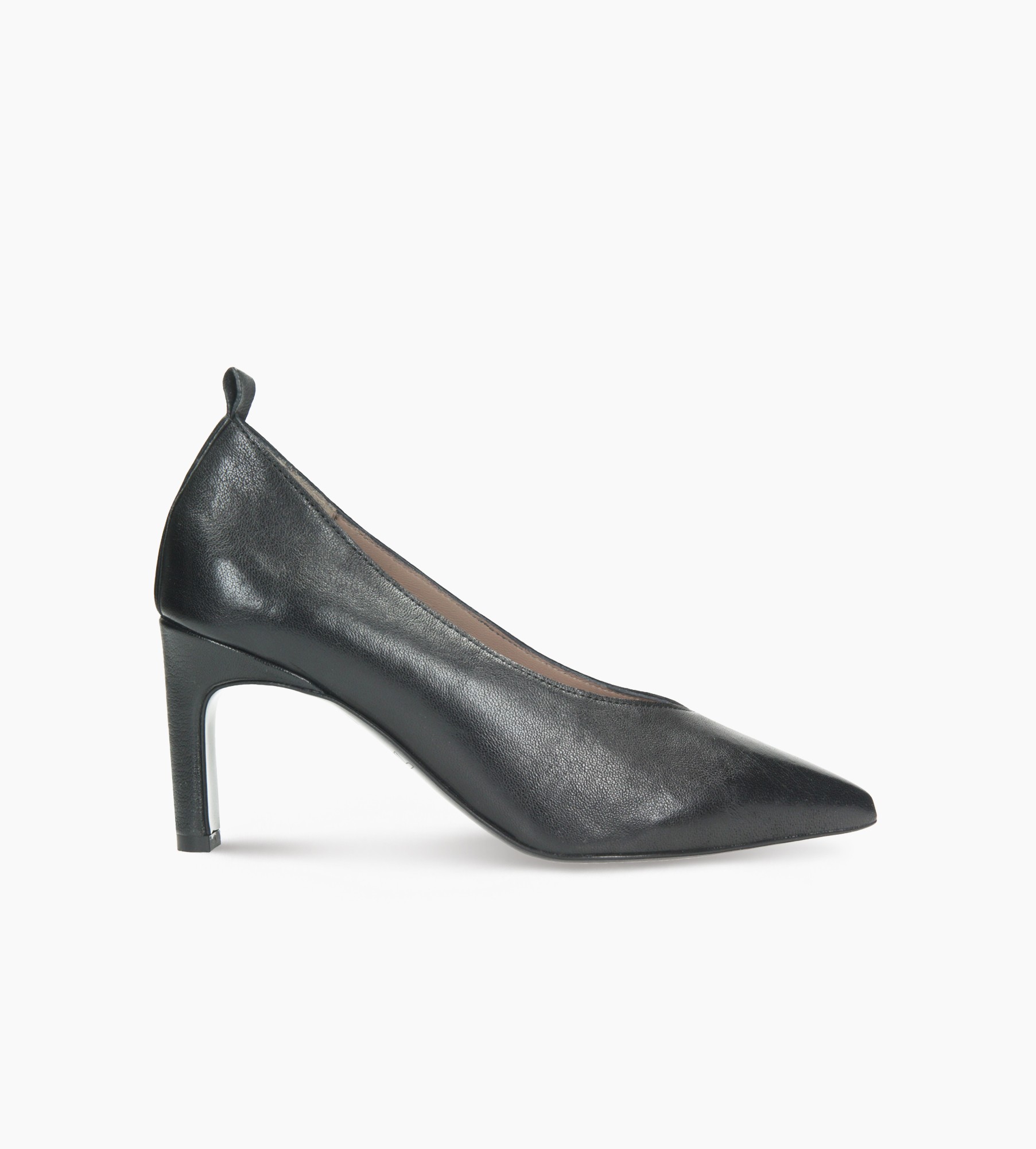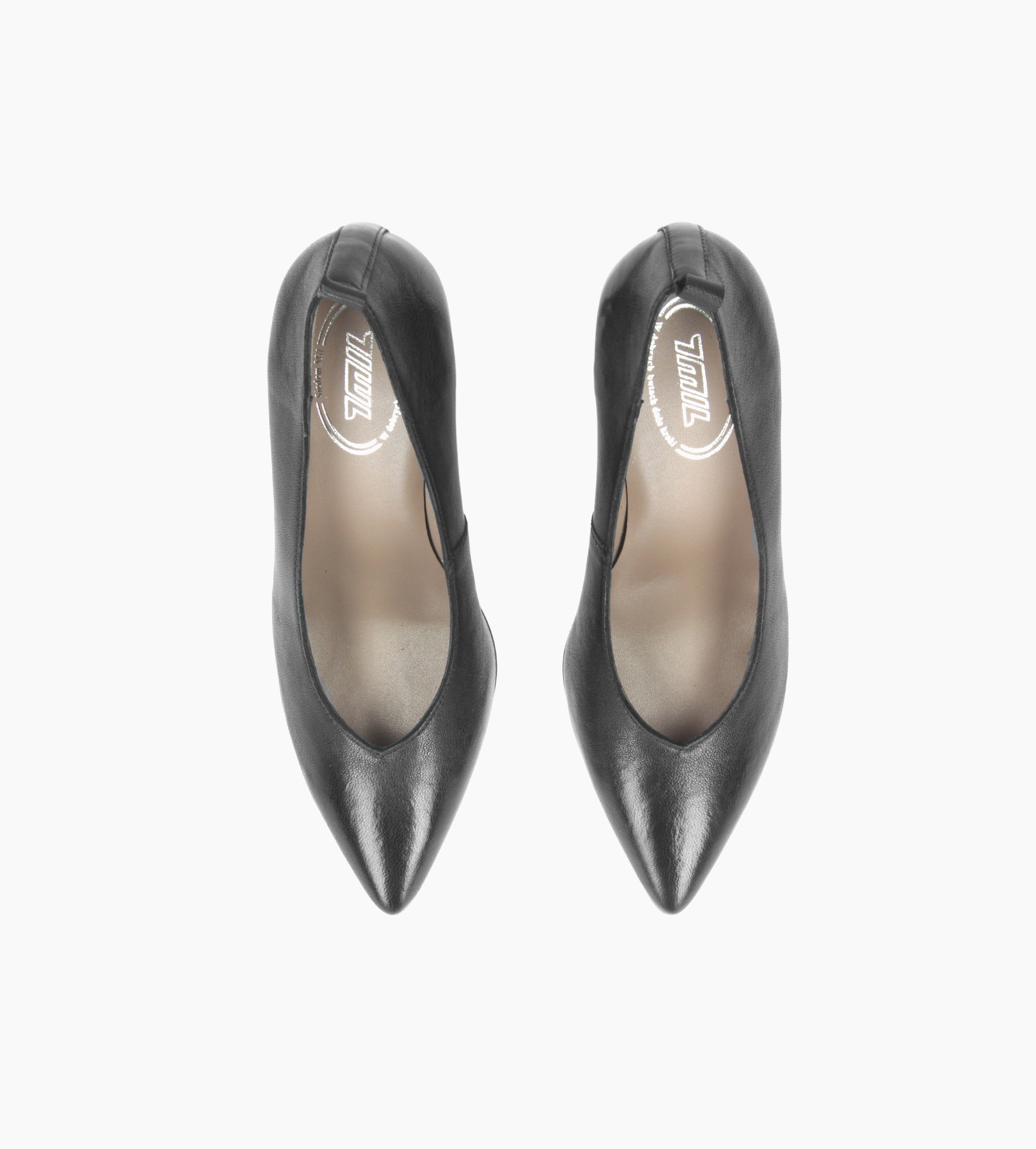 Czarne czółenka to połączenie klasycznego stylu z niezrównaną wygodą. Wykonane z najwyższej jakości naturalnej skóry cielęcej, wyróżniają się wyjątkową miękkością. Wnętrze buta zostało wyściełane delikatną skórą jagnięcą, co zapewnia stopom doskonałą oddychalność oraz maksymalny komfort nawet podczas wielogodzinnego noszenia. Precyzyjnie wyprofilowane wycięcie w delikatny szpic subtelnie wydłuża stopę, dodając sylwetce lekkości i elegancji. Model osadzony jest na stabilnym, komfortowym obcasie o nowoczesnym fasonie, który zapewnia idealne podparcie oraz swobodę ruchu, sprawiając, że każdy krok staje się pewny i stylowy.