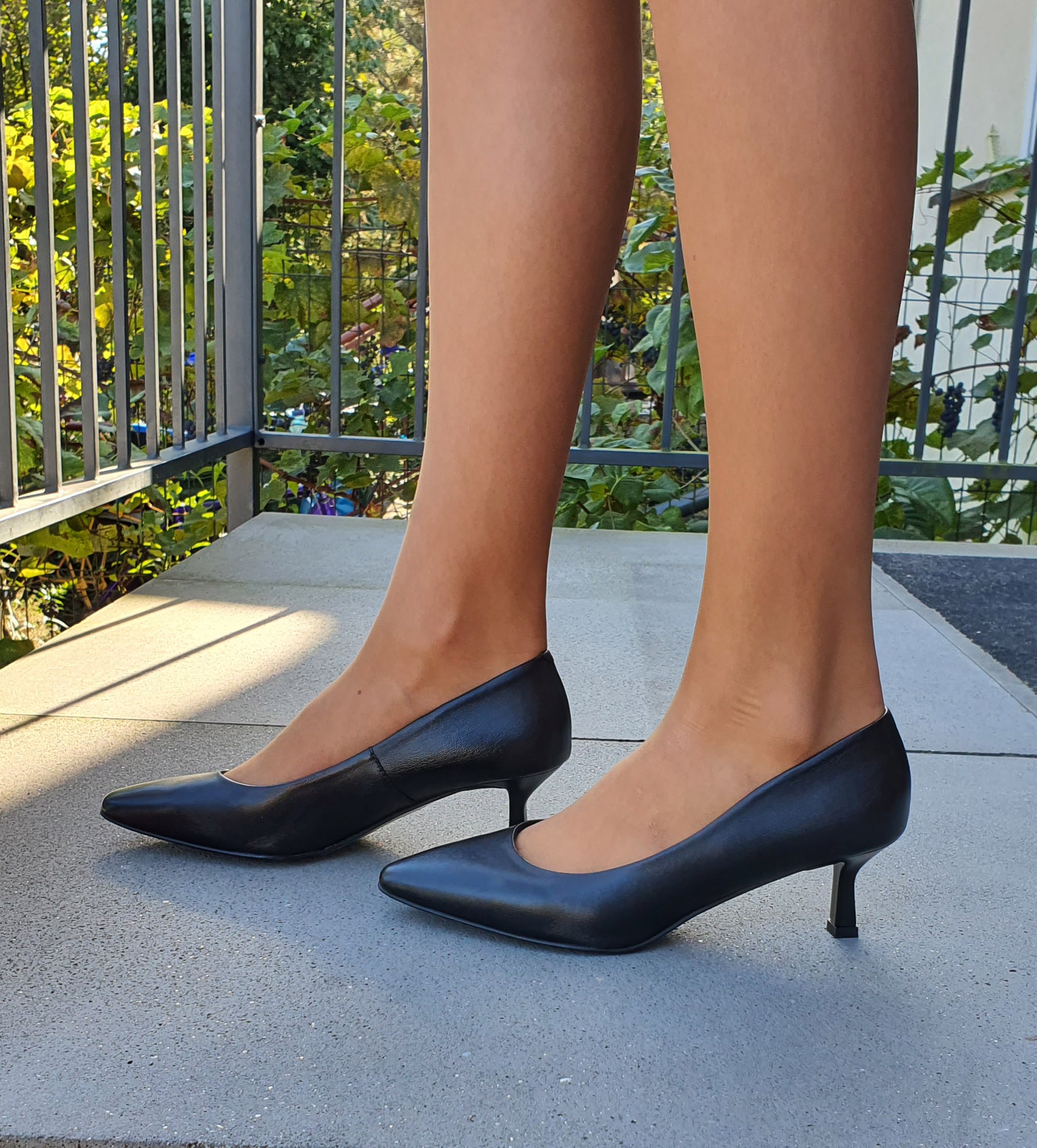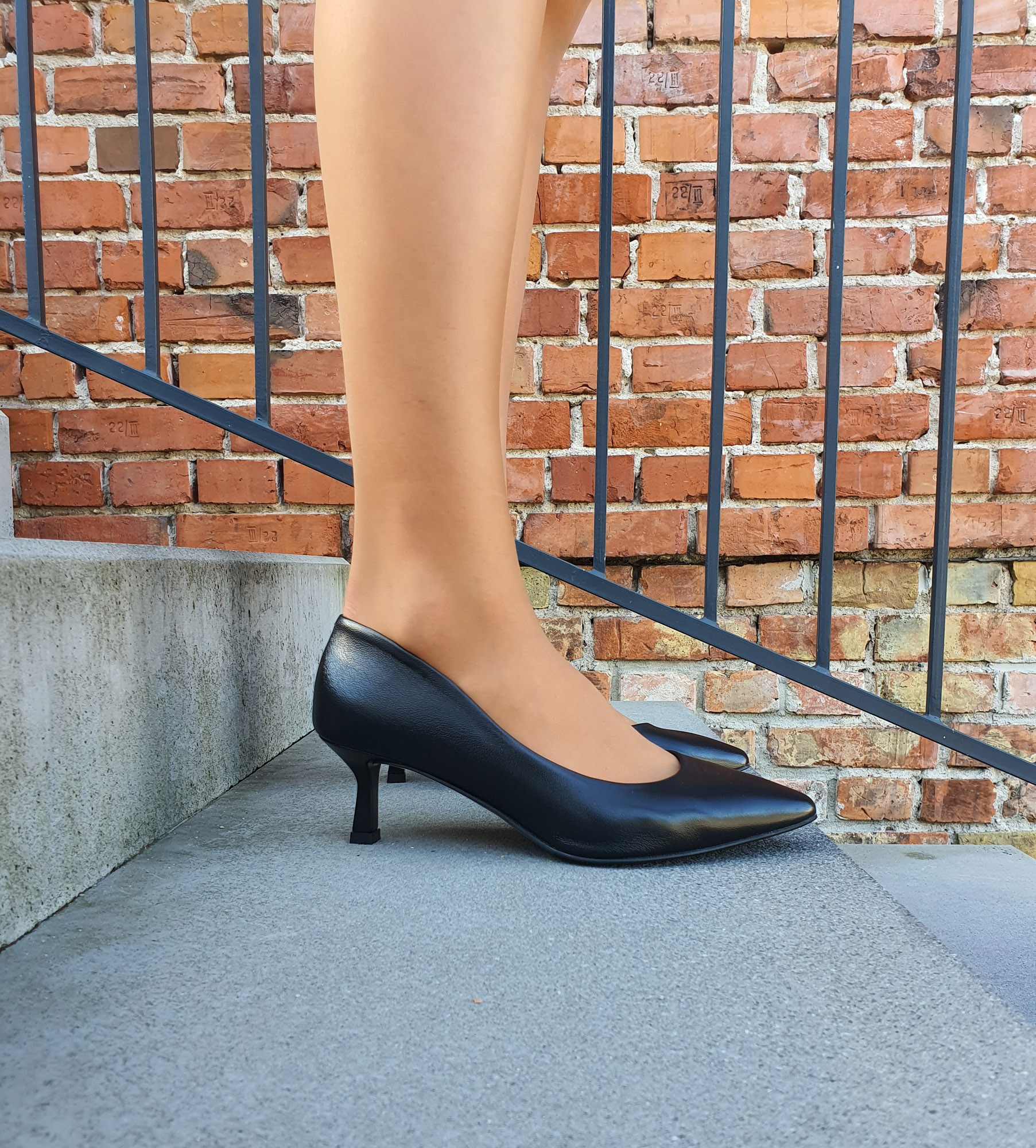 Czarne czółenka damskie wykonane z wysokogatunkowej naturalnej skóry to ponadczasowa propozycja dla kobiet ceniących elegancję, wygodę i subtelną klasykę. Ich smukła sylwetka z noskiem w szpic oraz niewysoki, delikaty obcas wpisuje się w najnowsze trendy, zapewniając jednocześnie komfort noszenia przez cały dzień. Miękka, jagnięca skóra wewnętrzna otula stopę, nadając wyjątkowe uczucie lekkości i luksusu przy każdym kroku. Dzięki uniwersalnemu charakterowi, te czółenka doskonale komponują się zarówno z garderobą formalną, jak i nowoczesnymi miejskimi stylizacjami.